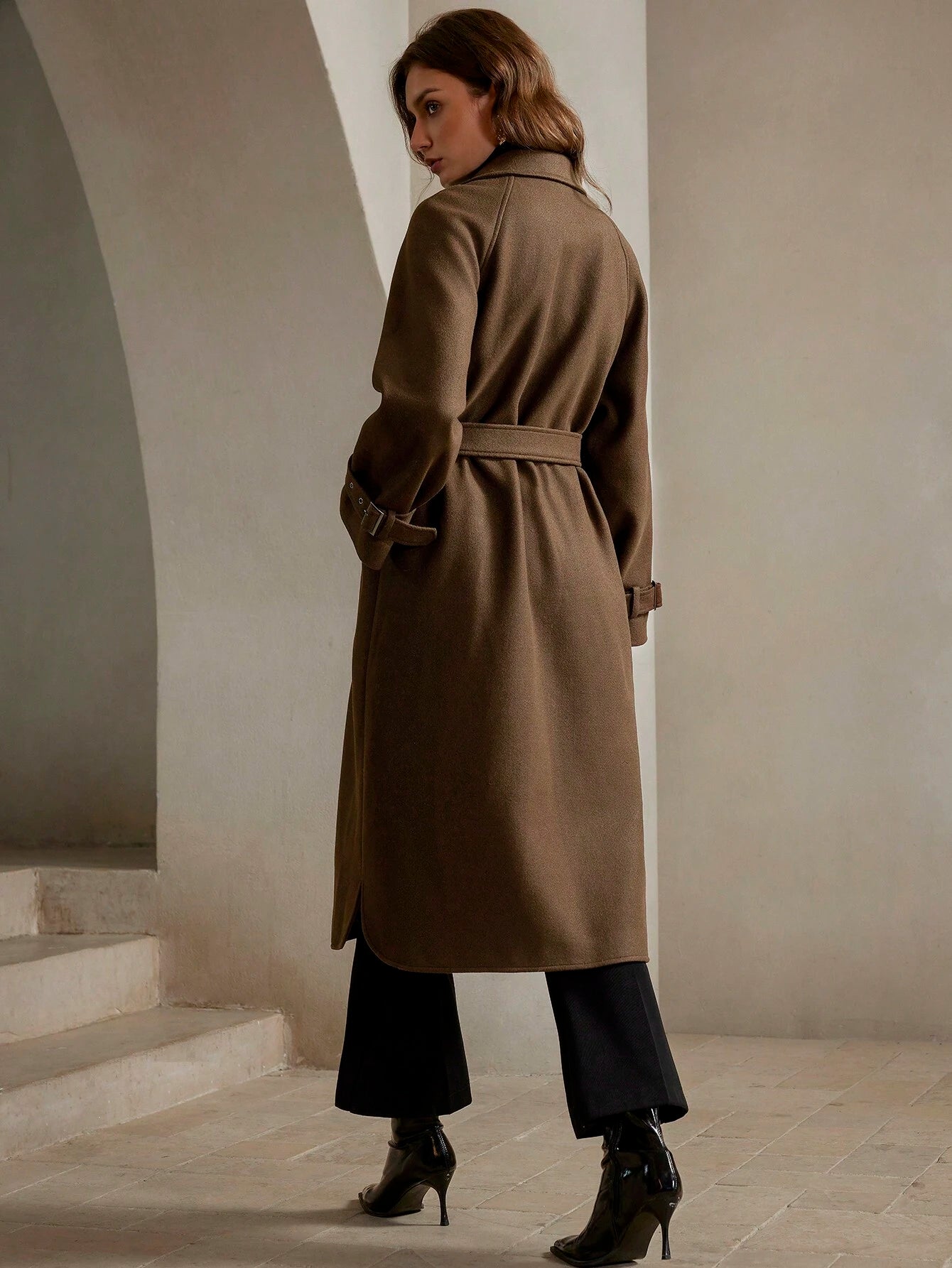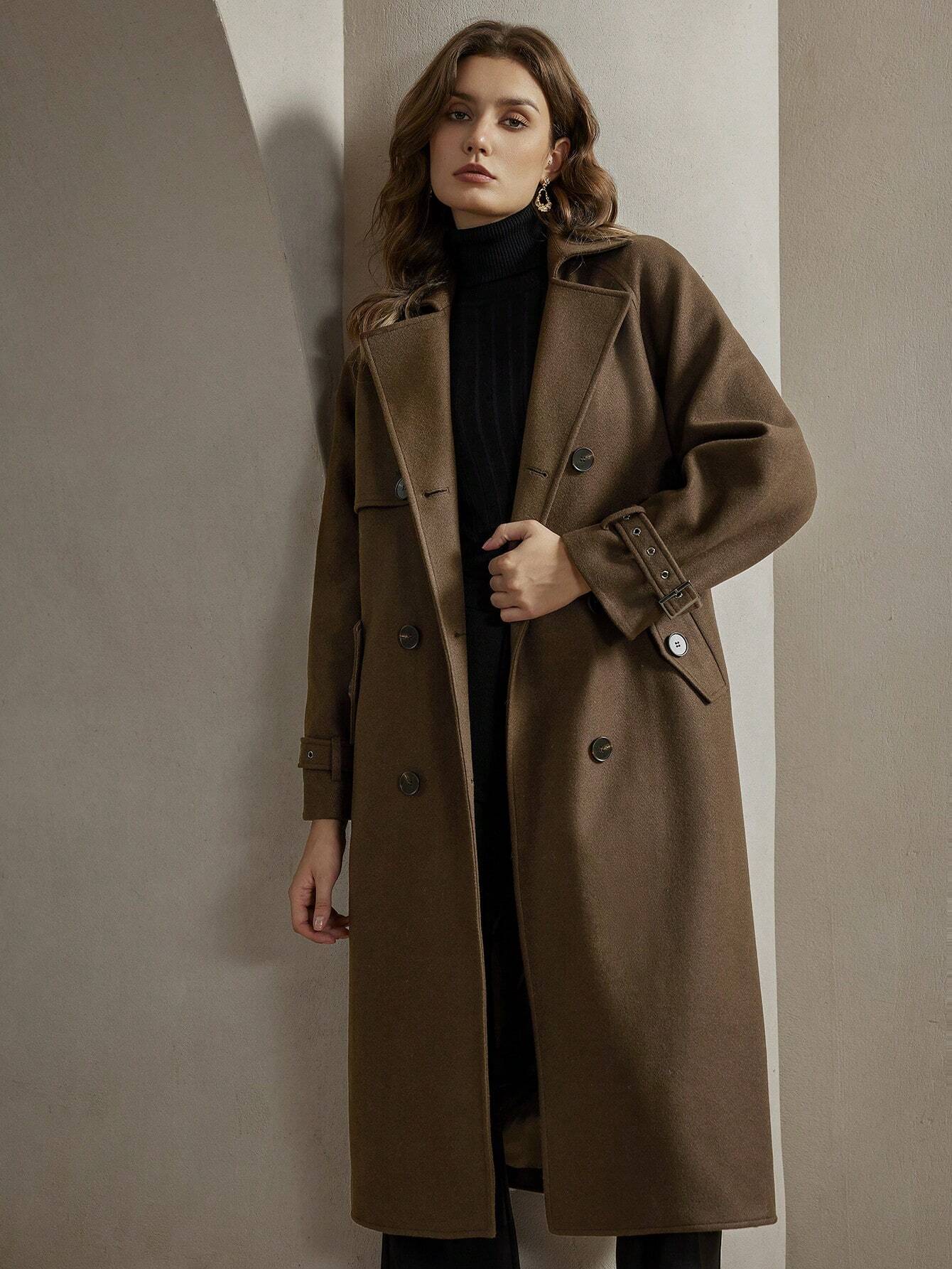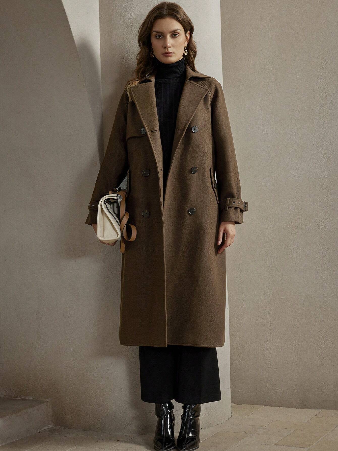 Anewsta Women's Notched Collar Double Breasted Overcoat