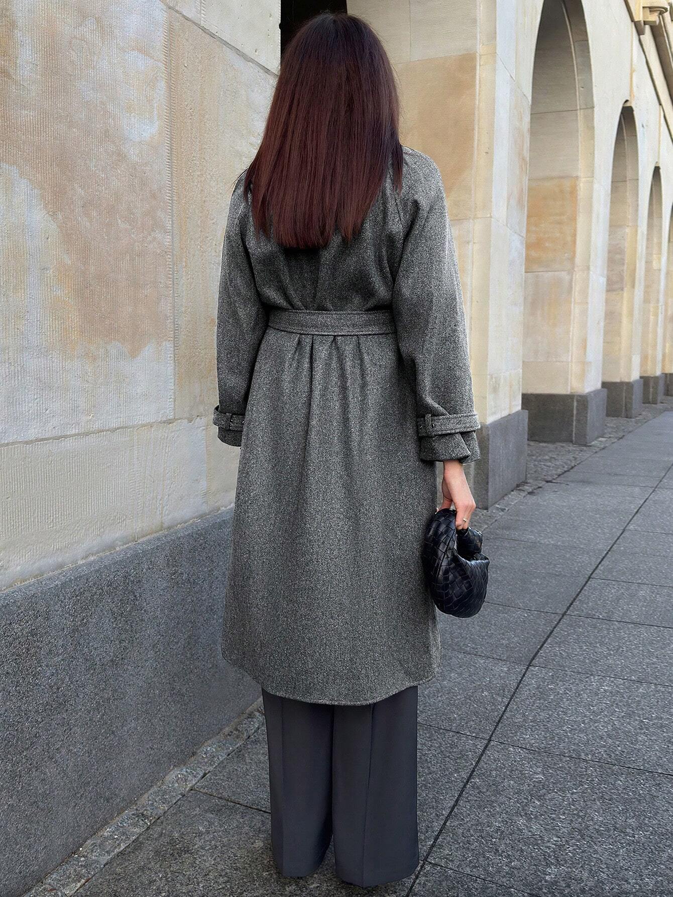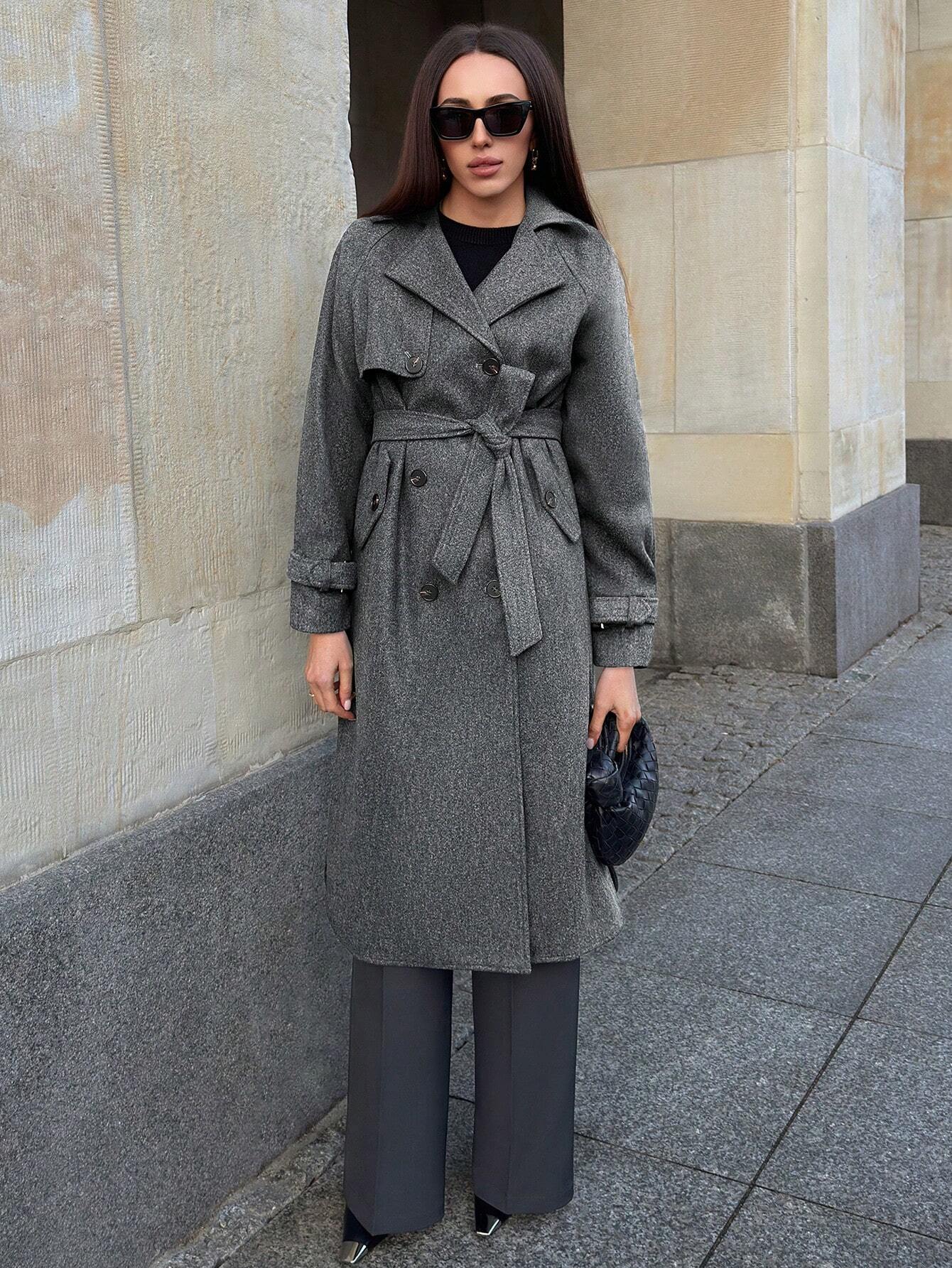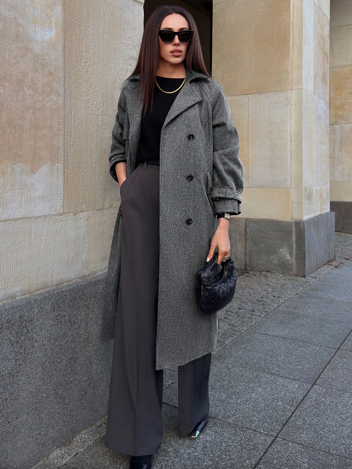 Anewsta Women's Notched Collar Double Breasted Overcoat