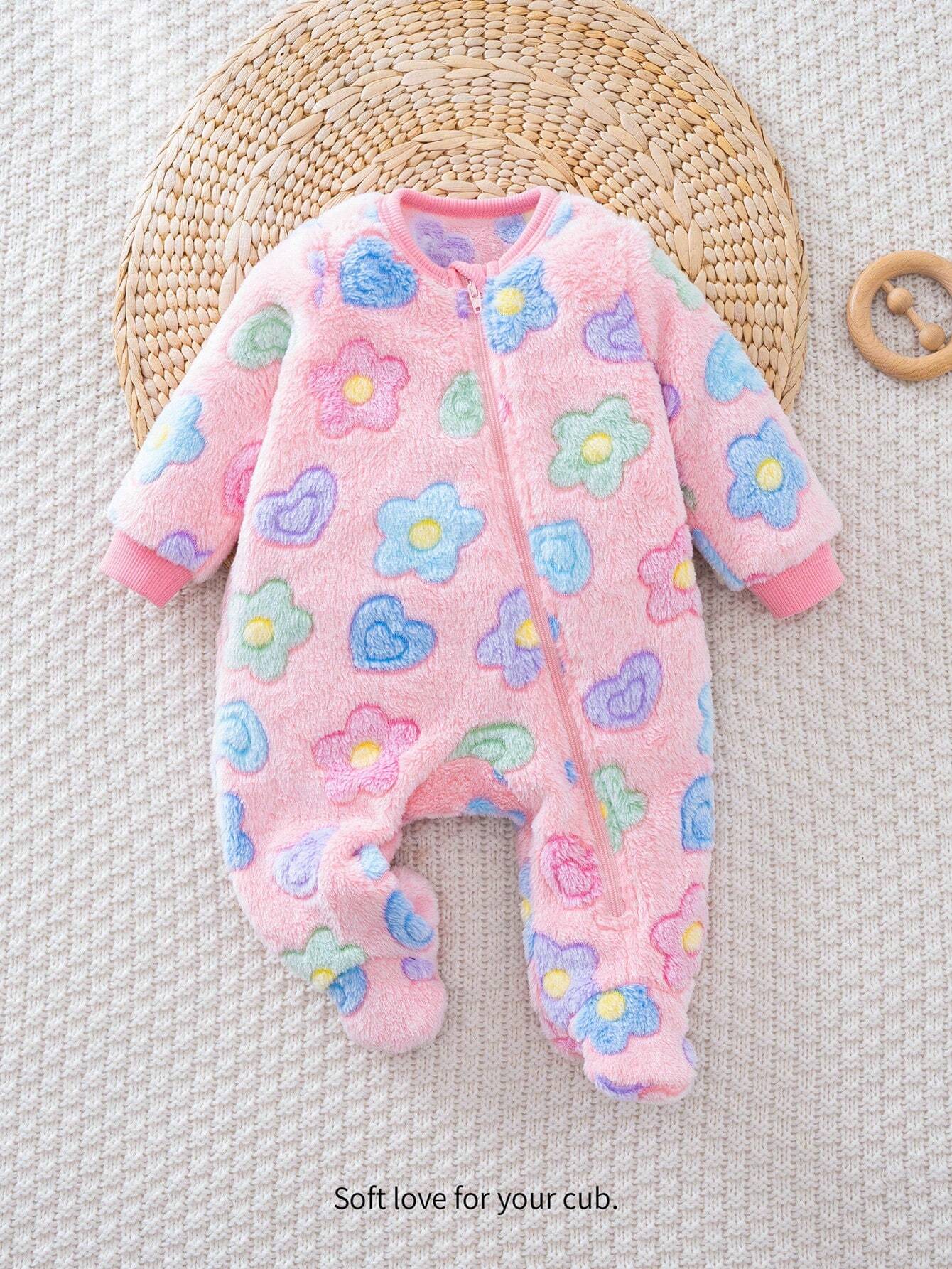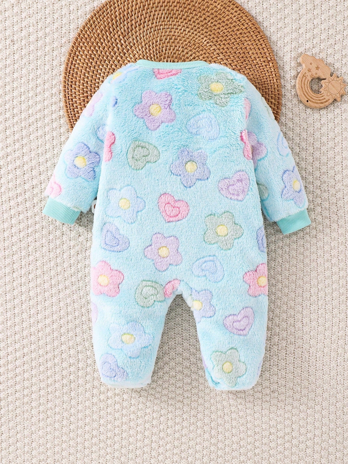 Baby Girl Colorful Floral Pattern Crew Neck Long Sleeve Romper With Thick Pants
