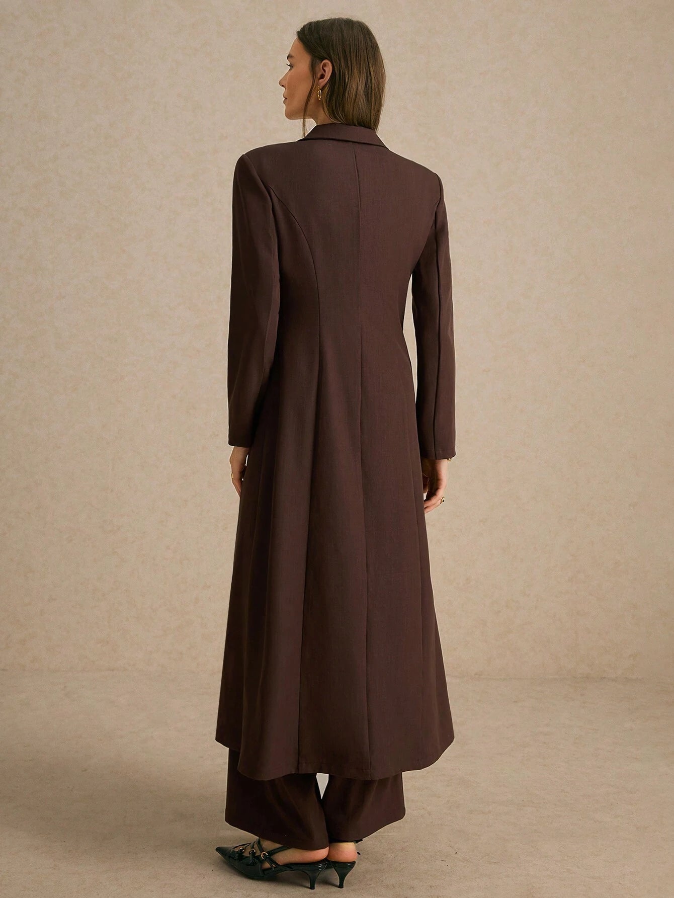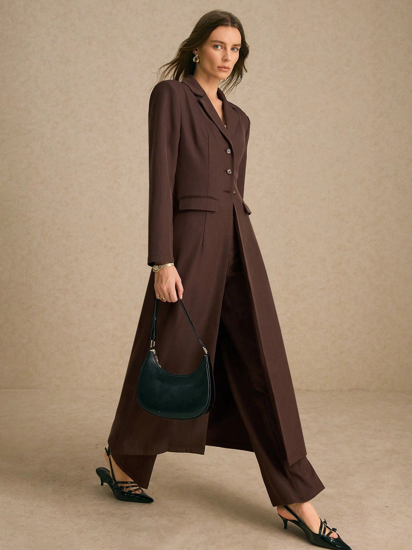 Breasted Wide Strap Slimming Both Sides Real Pockets Long Sleeve Long Blazer