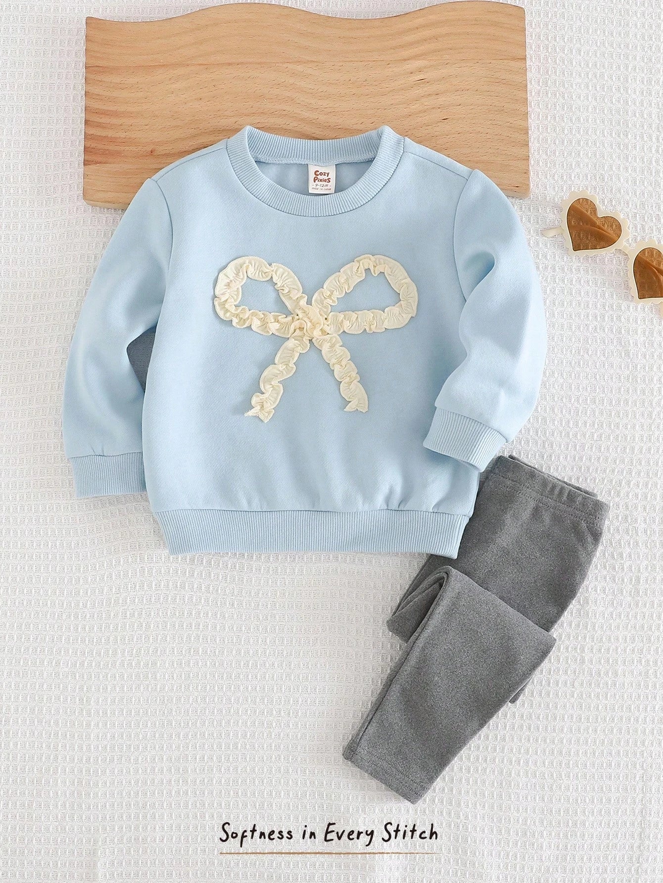 Butterfly Decor Round Neck Dolman Sleeve Pullover Sweatshirt & Elastic Waist Pant