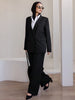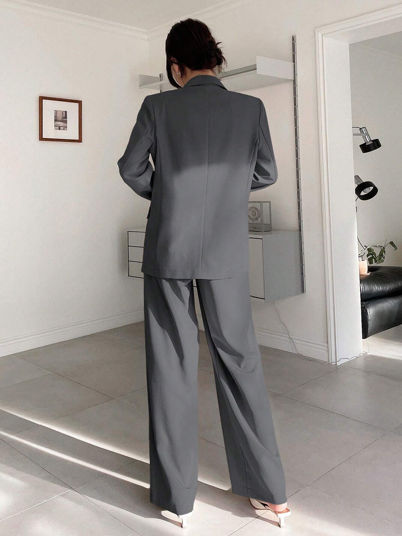 Casual Notched Collar Double-Breasted Straight Long Sleeve Jacket And Straight Long Pants