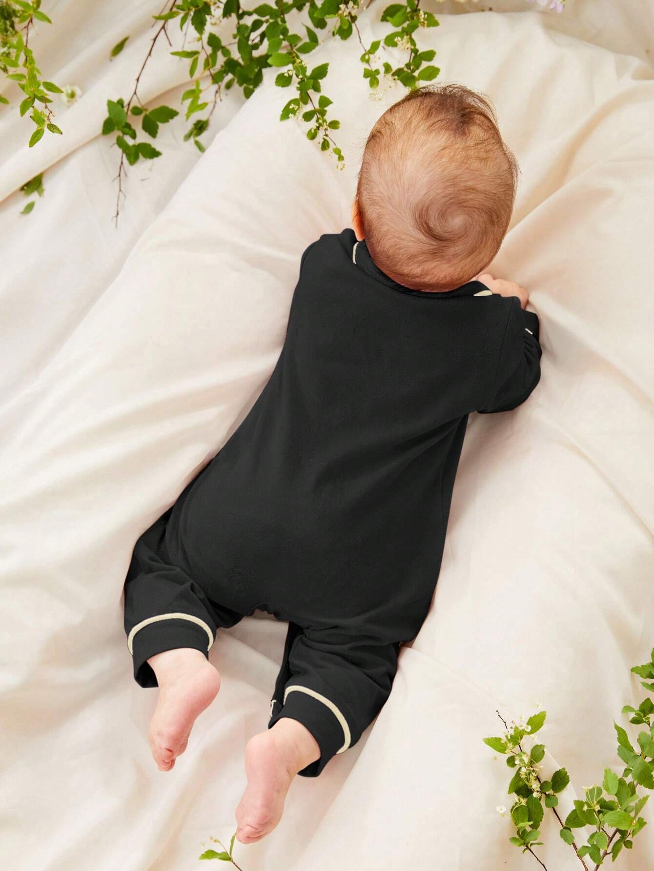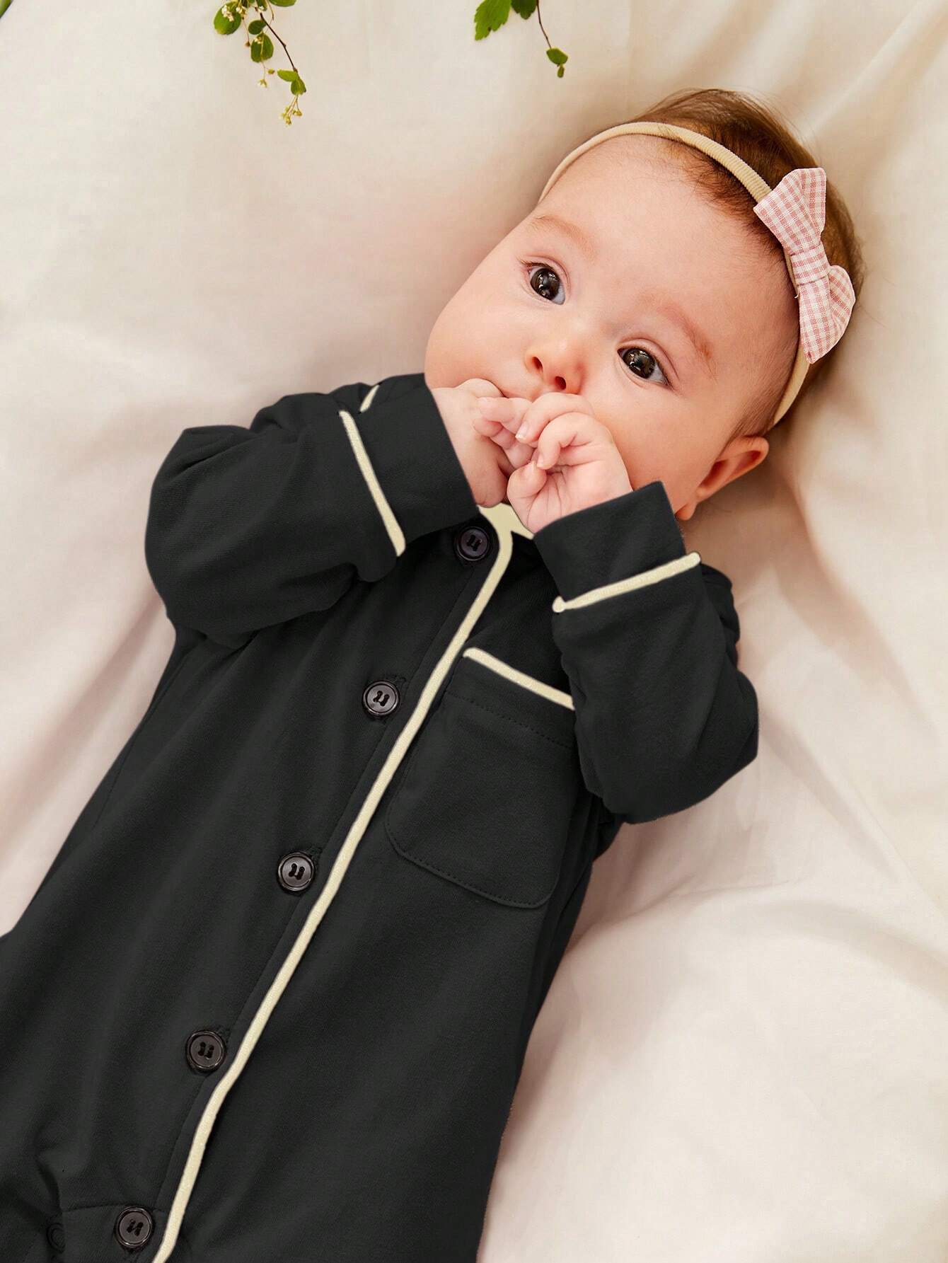 Cozy Pixies Newborn Baby Girl Contrast Binding Button Front Pajama Jumpsuit
