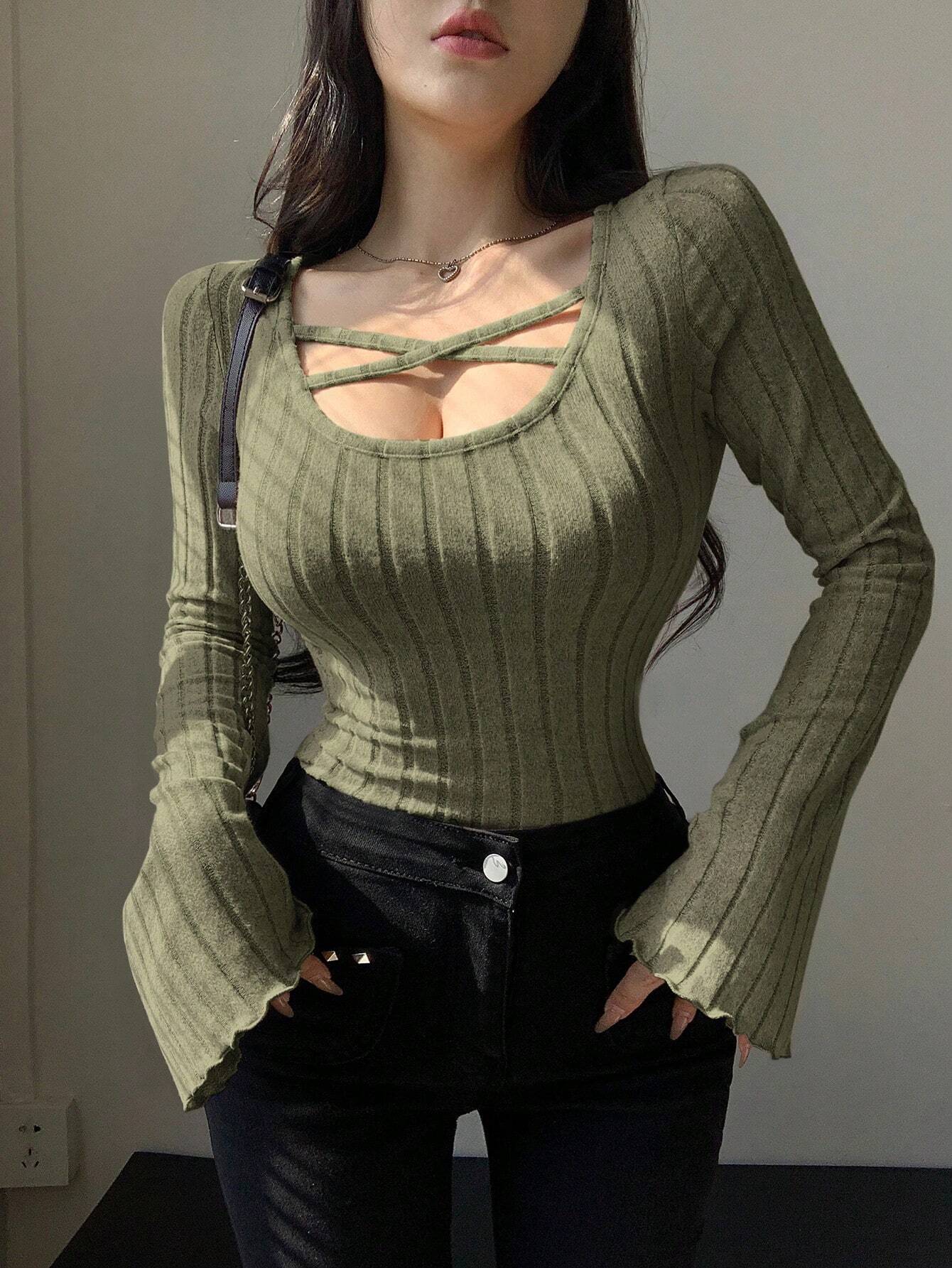 Details: Criss Cross, Lettuce Trim, Rib-Knit