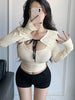 DAZY Front Tie Two-In-One Long Sleeve T-Shirt