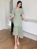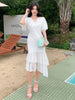 Details: � �Ruched, Ruffle Hem, Tiered Layer
