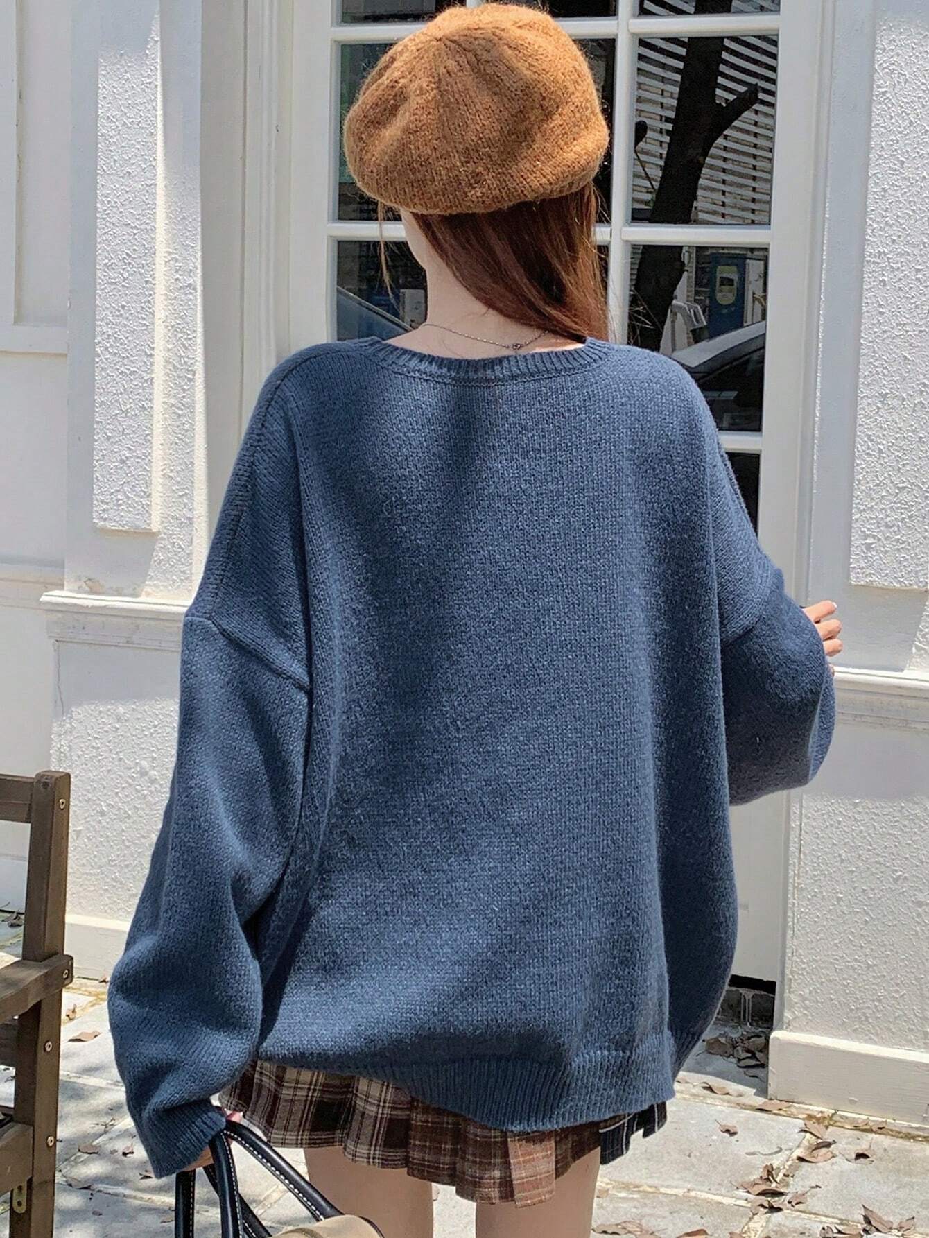 DAZY Women's Casual Crew Neck Cartoon Bear Pattern Sweater