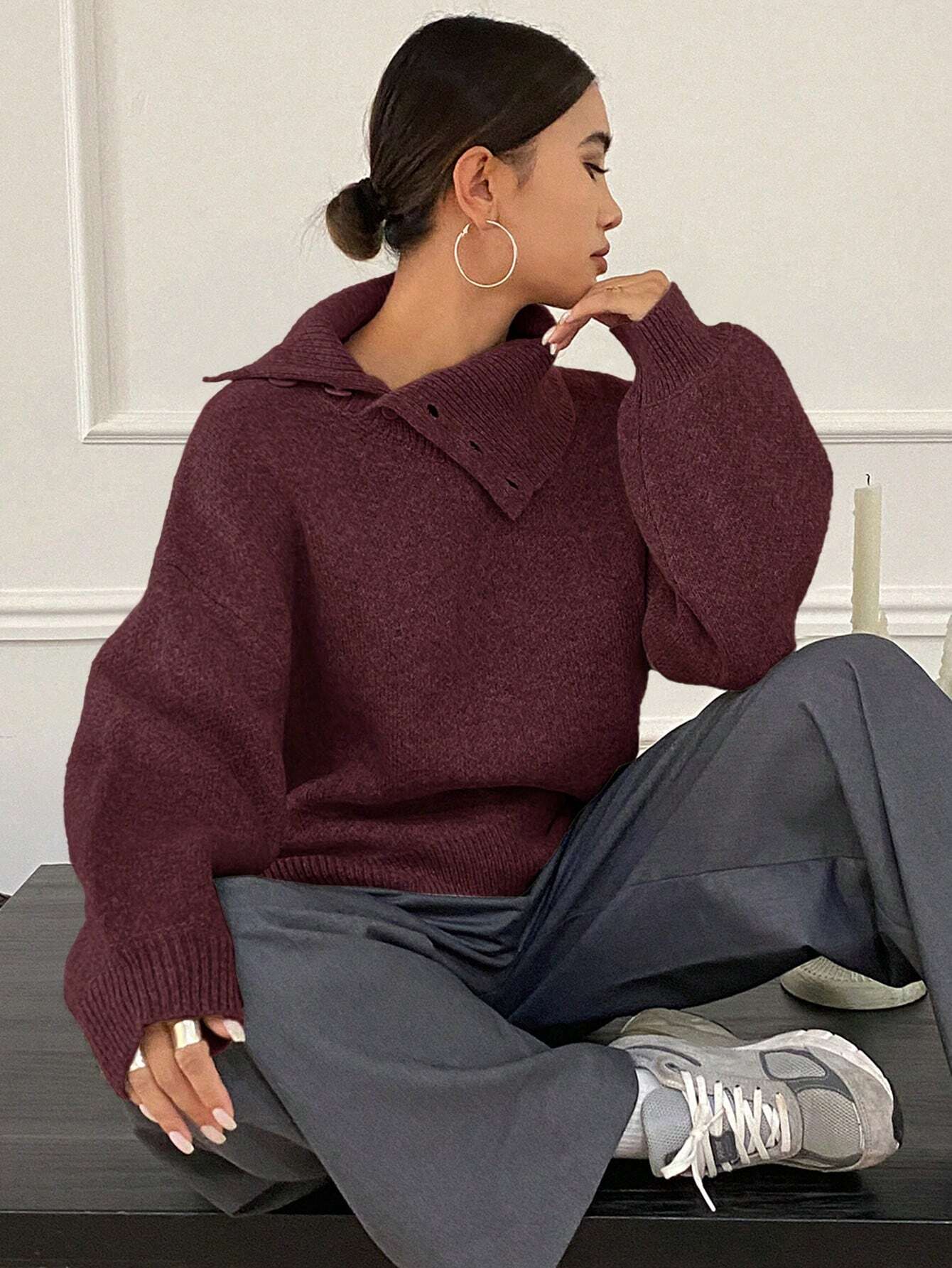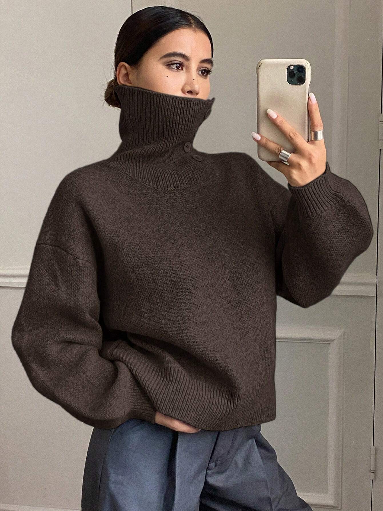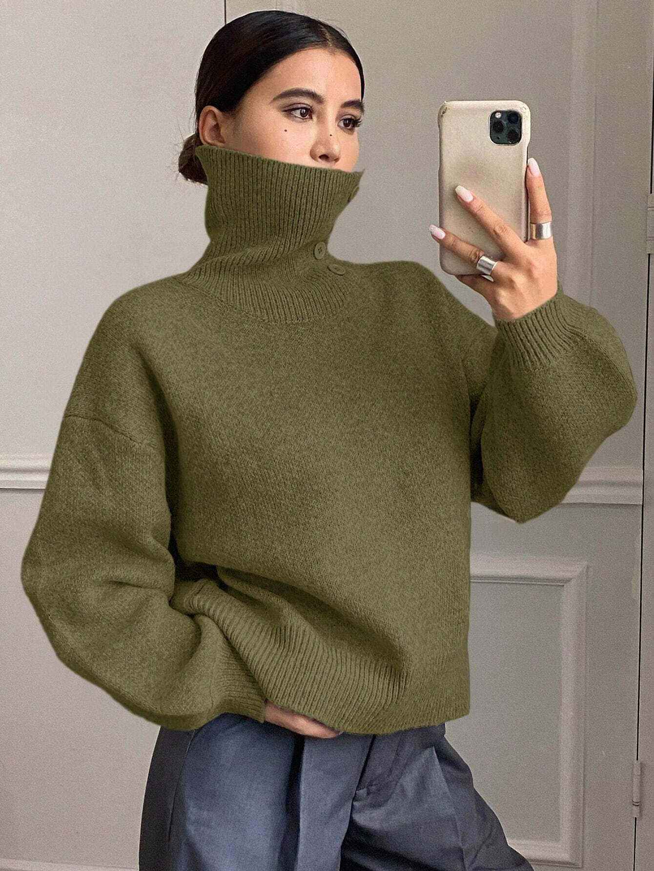 DAZY Women's Loose Casual Solid Color Sweater