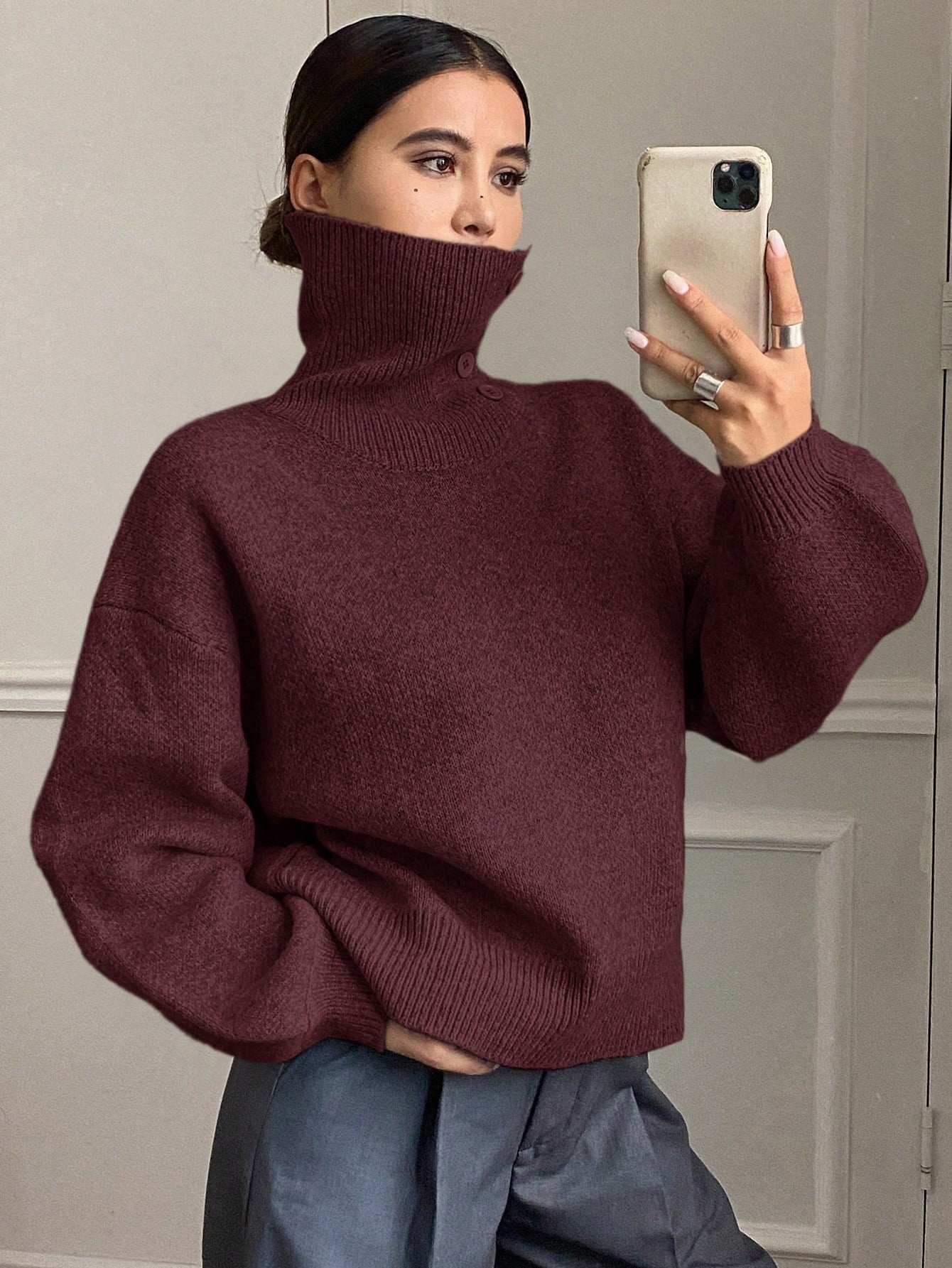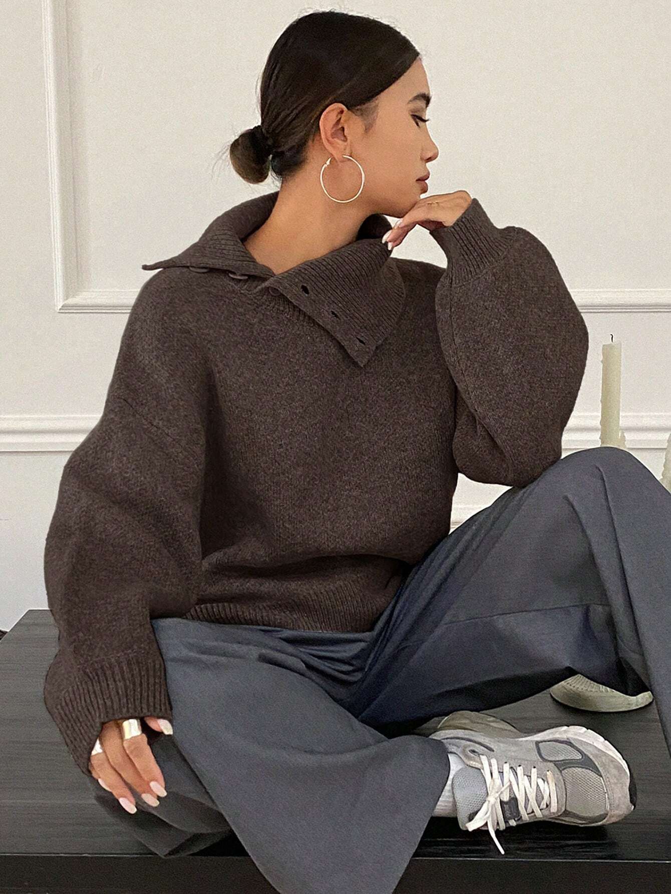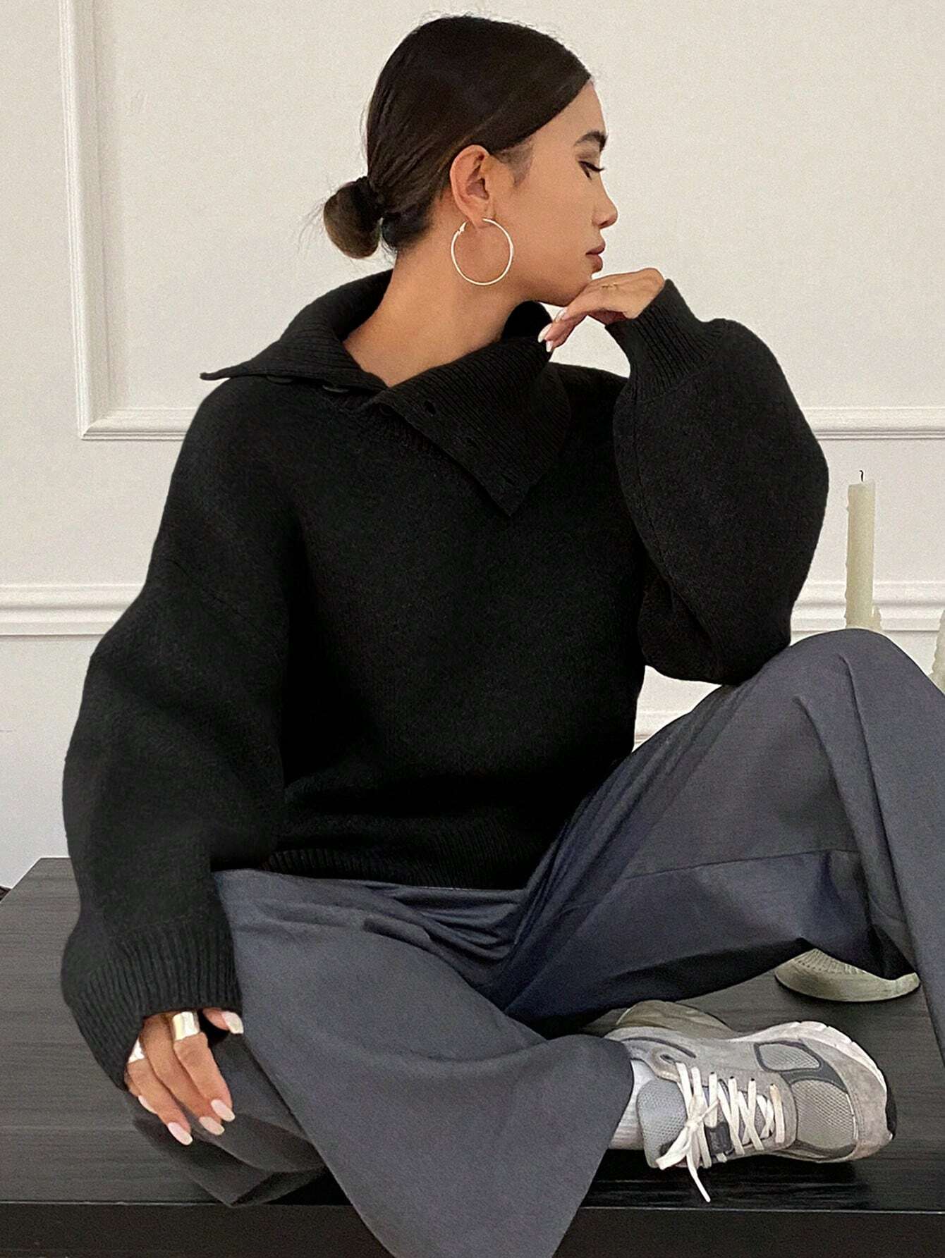 DAZY Women's Loose Casual Solid Color Sweater