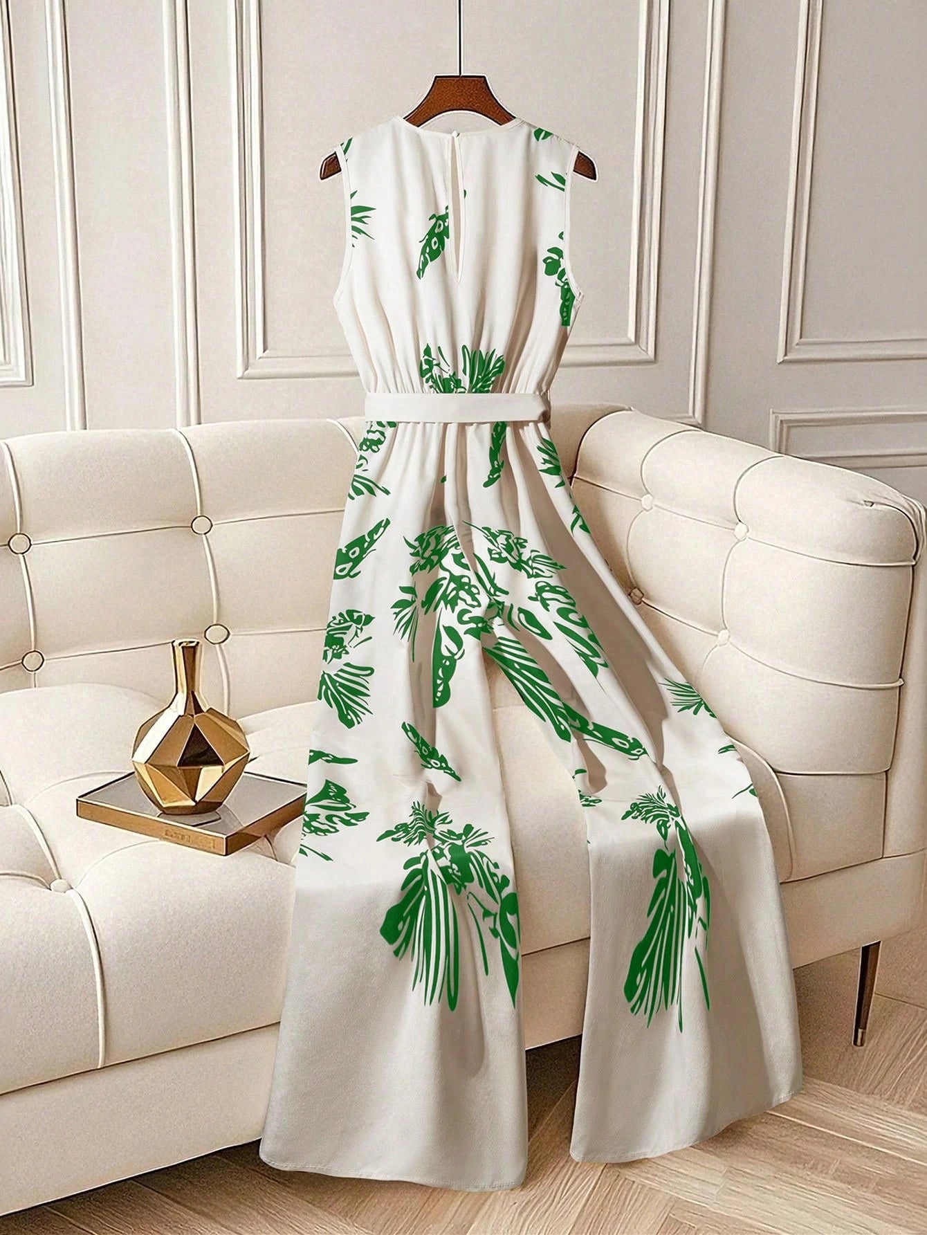 Elegant Fashion Leaf Printed High Waist Sleeveless Flared Pants