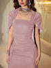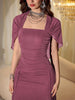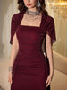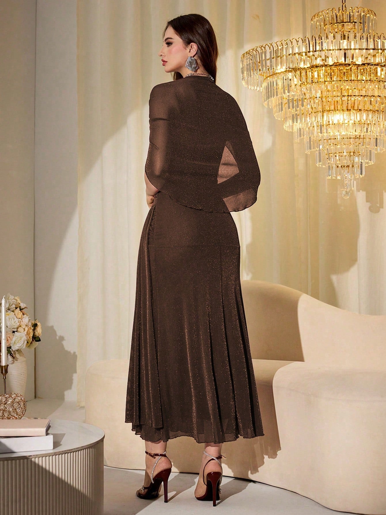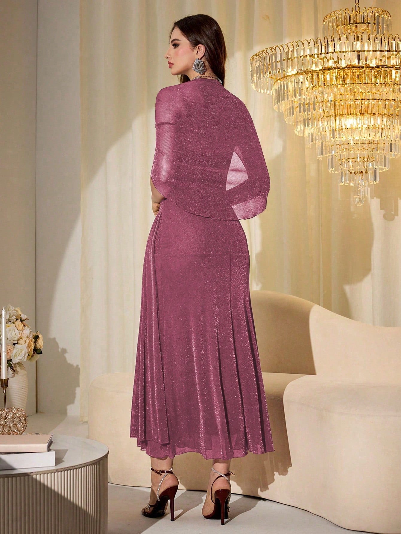 Elegant Mesh & Shiny Yarn Strapless Shawl Sleeve Fitted Long Dress