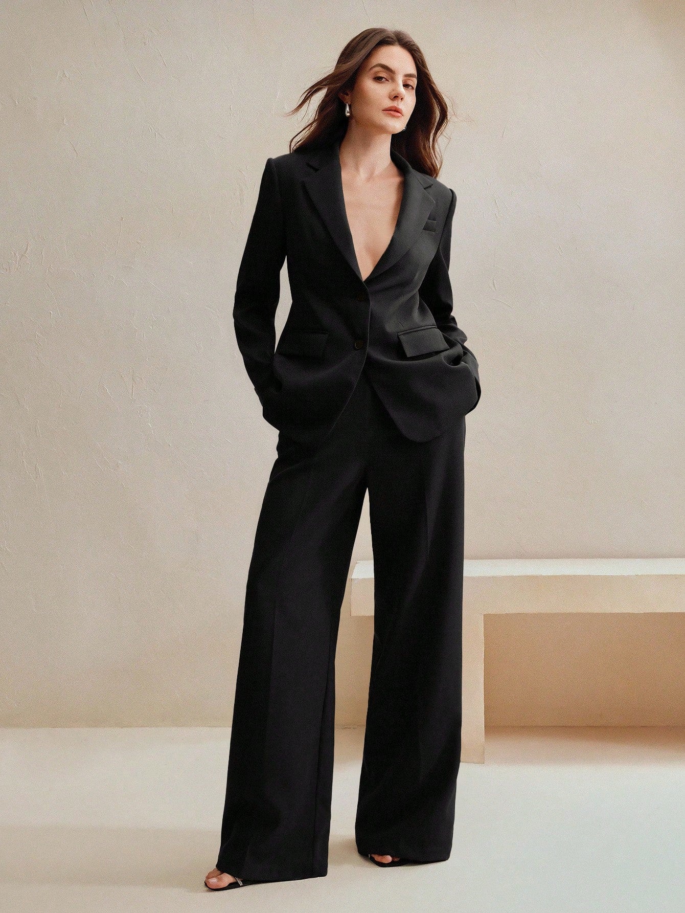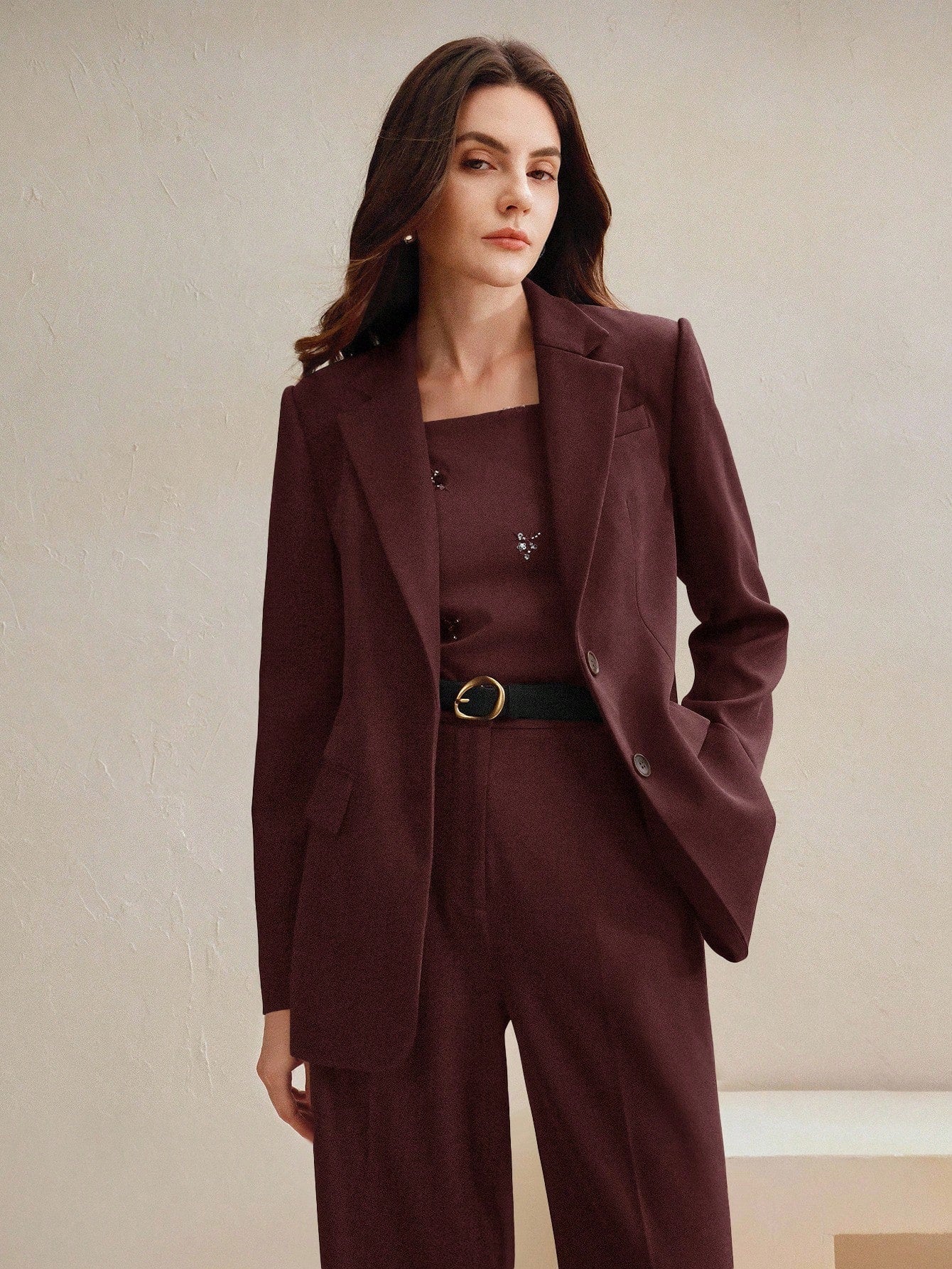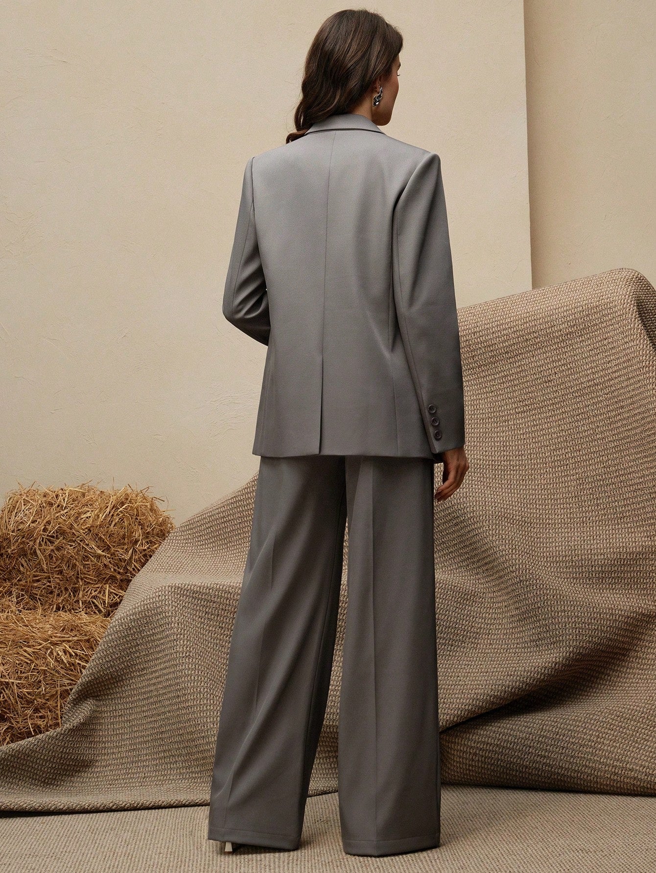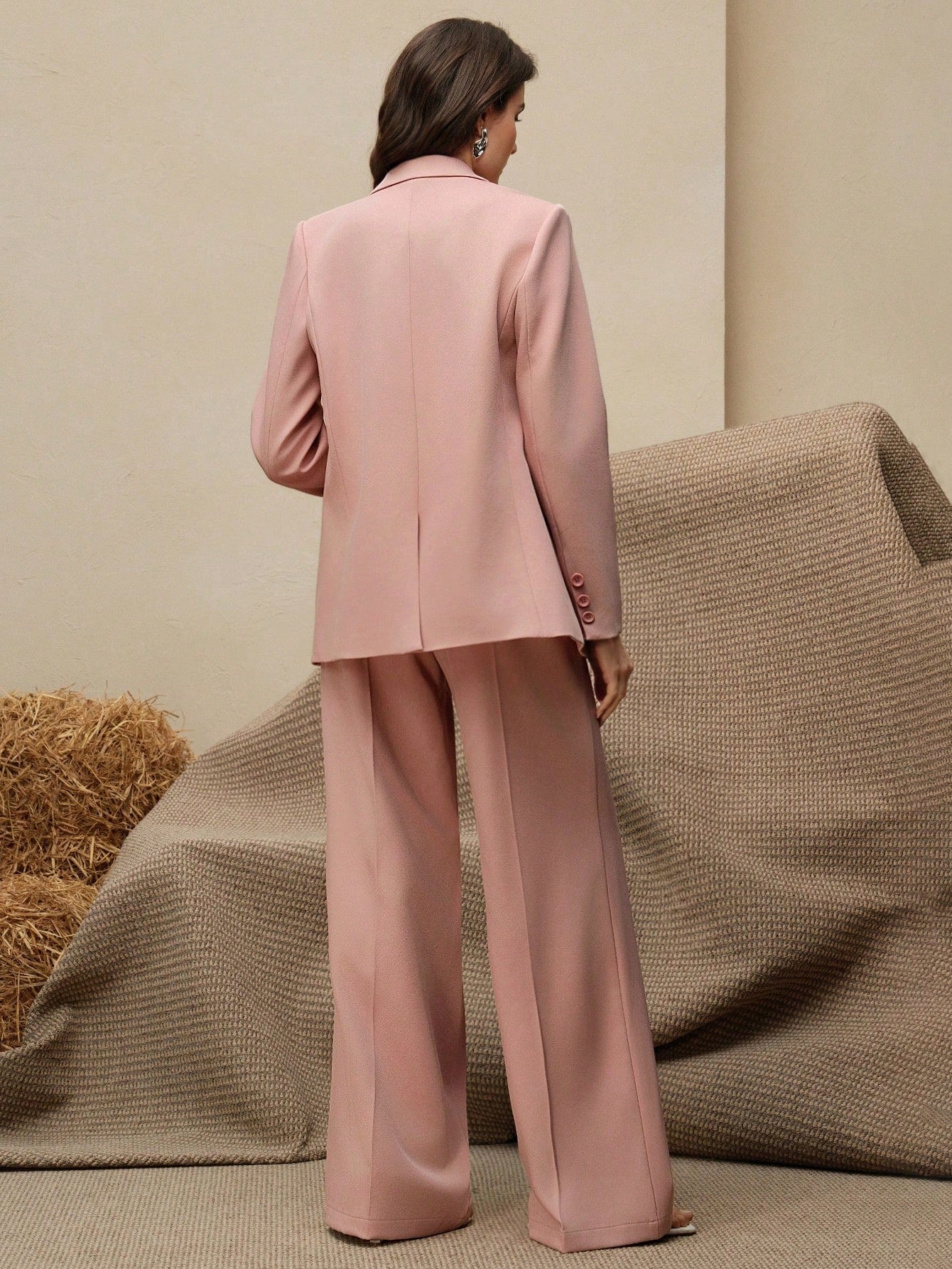 Maillard Color Blazer Jacket + Straight Leg Pants