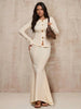 Metal Button Long Sleeve Knit Top & Fitted Bodycon Fishtail Skirt