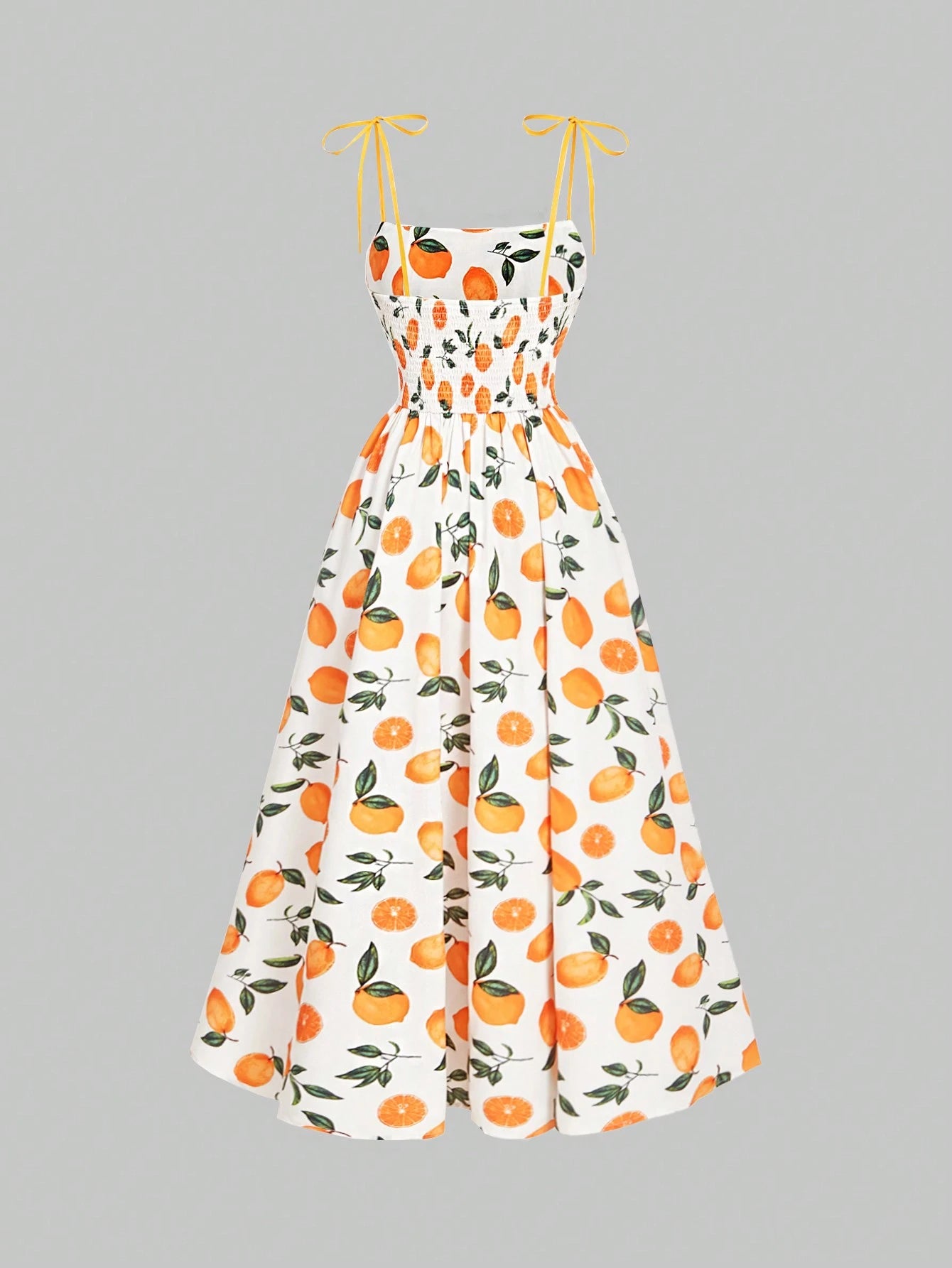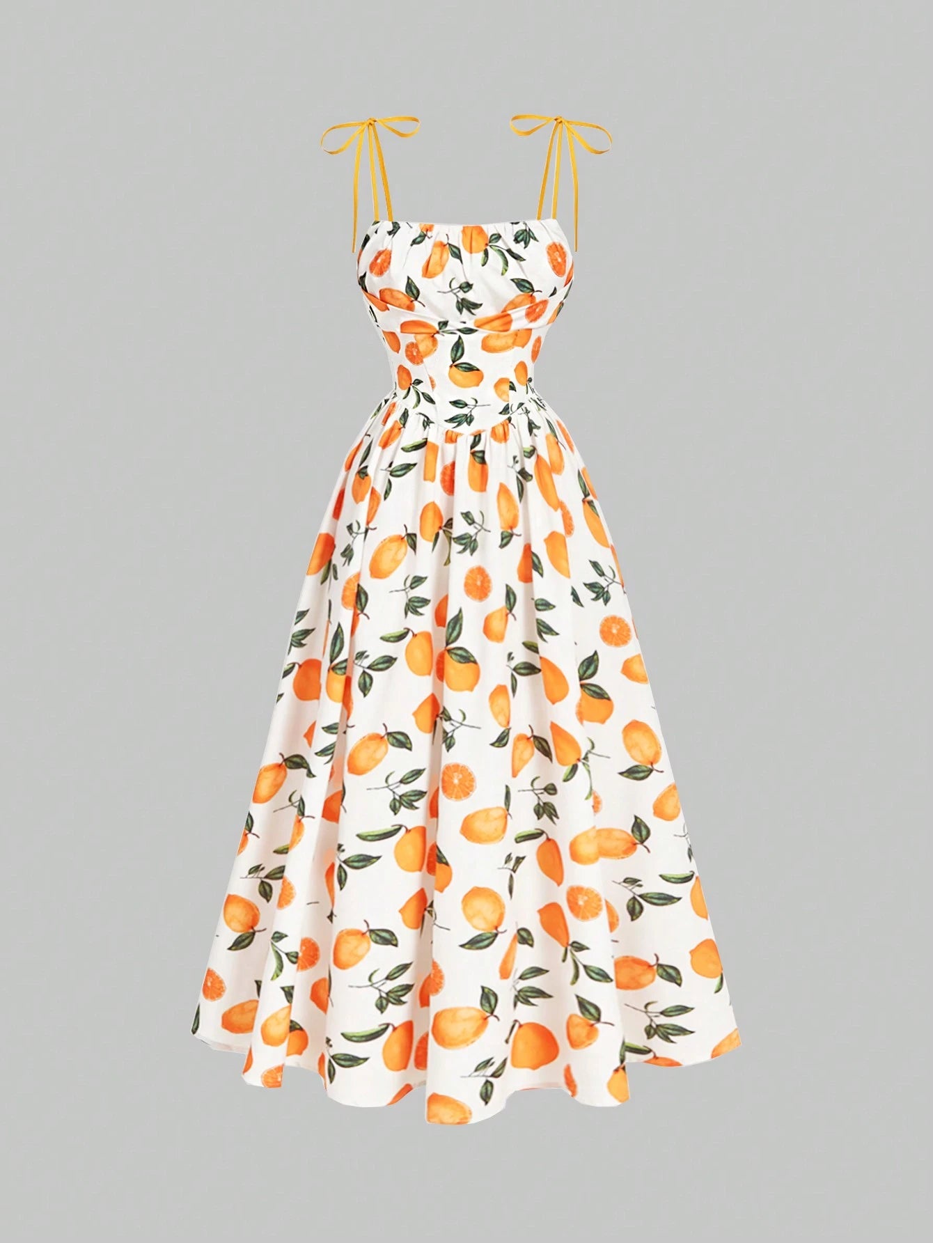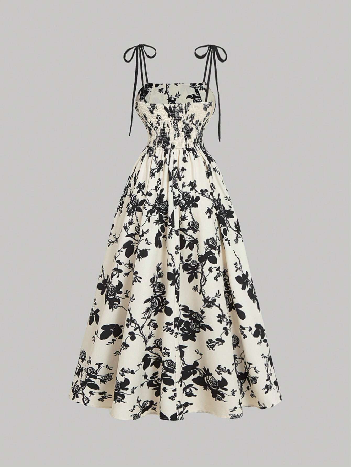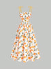 MOD Women Apricot Background Black Silhouette Flower Print Cami Dress