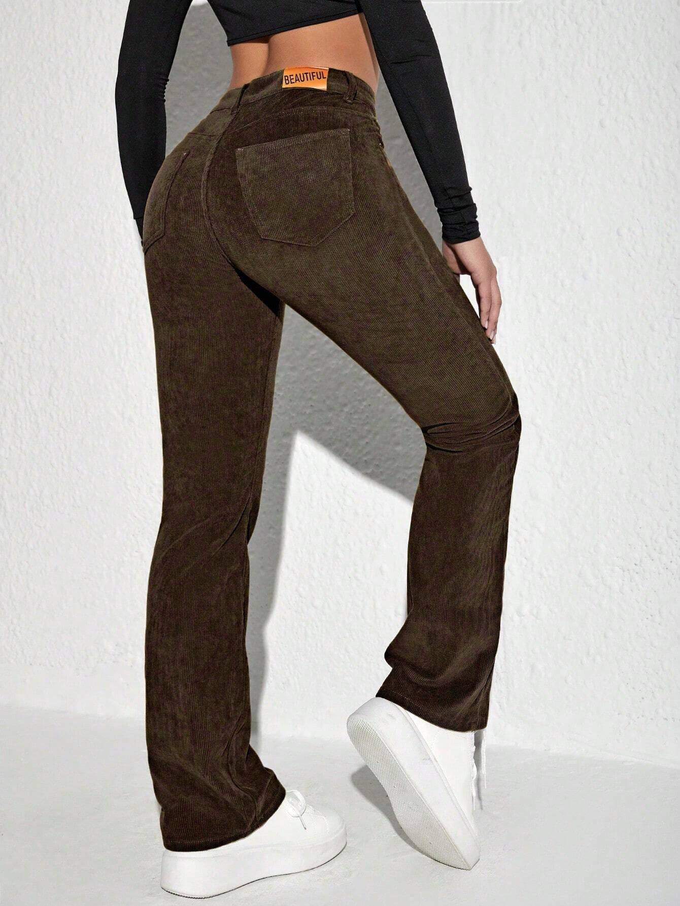 MOOSTA Letter Patched Flare Leg Corduroy Pants