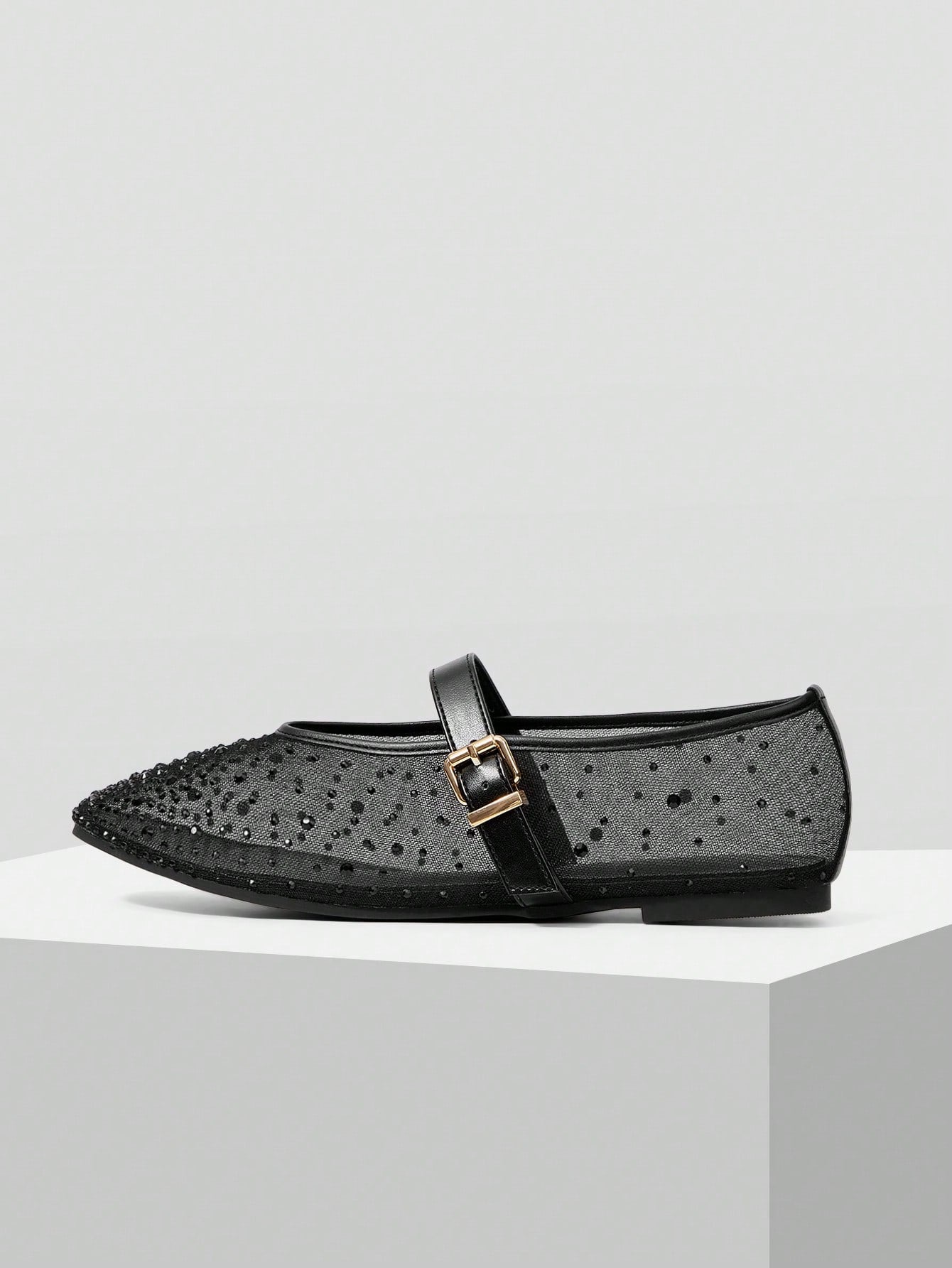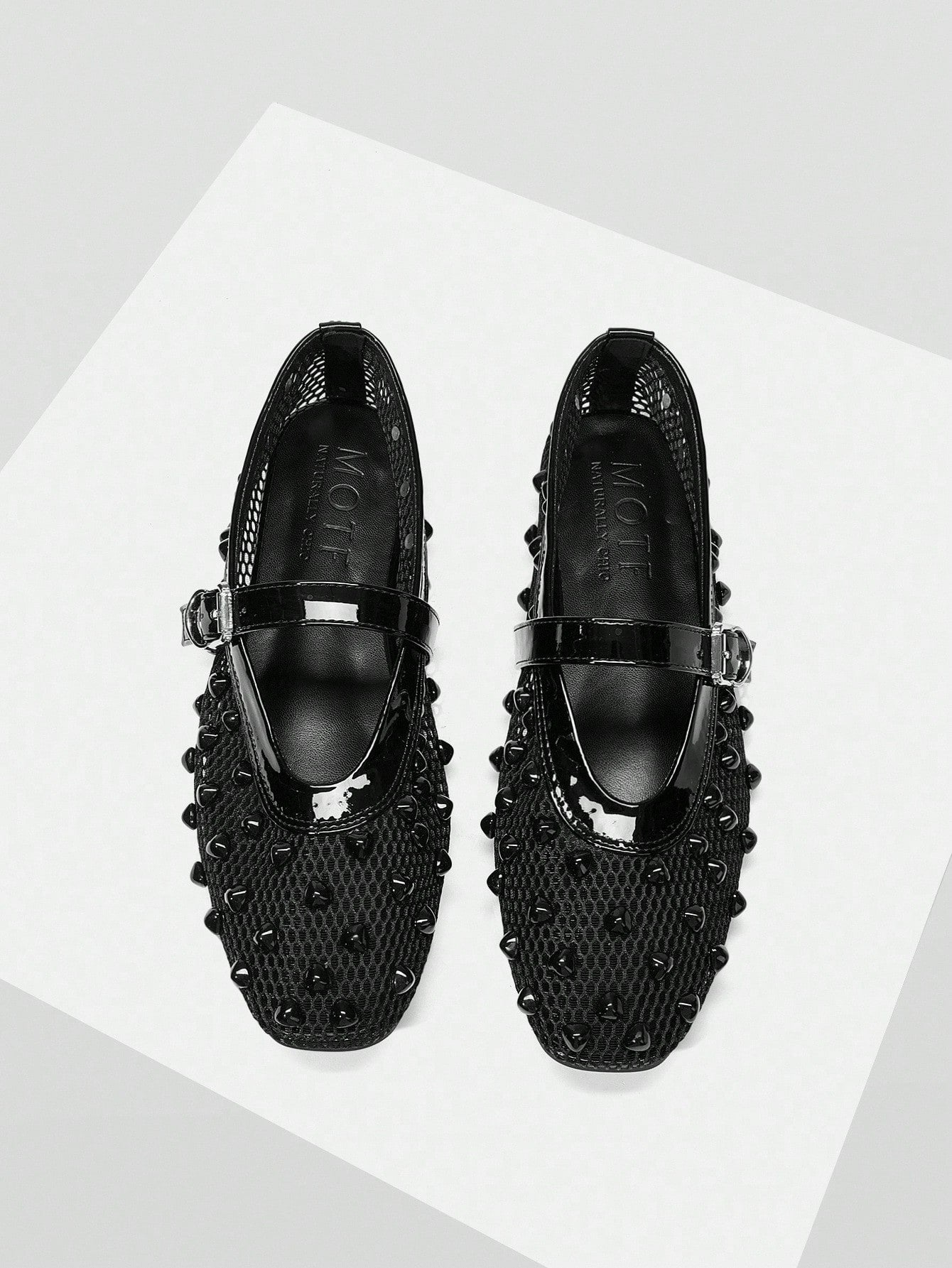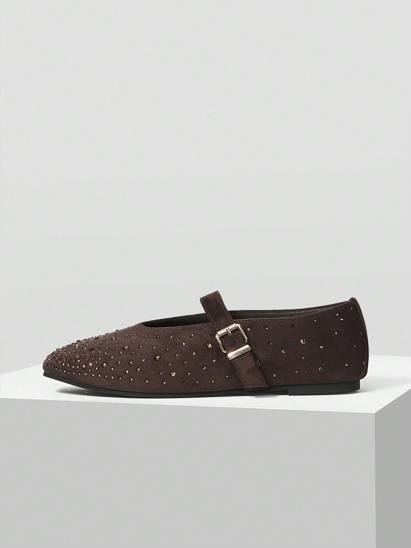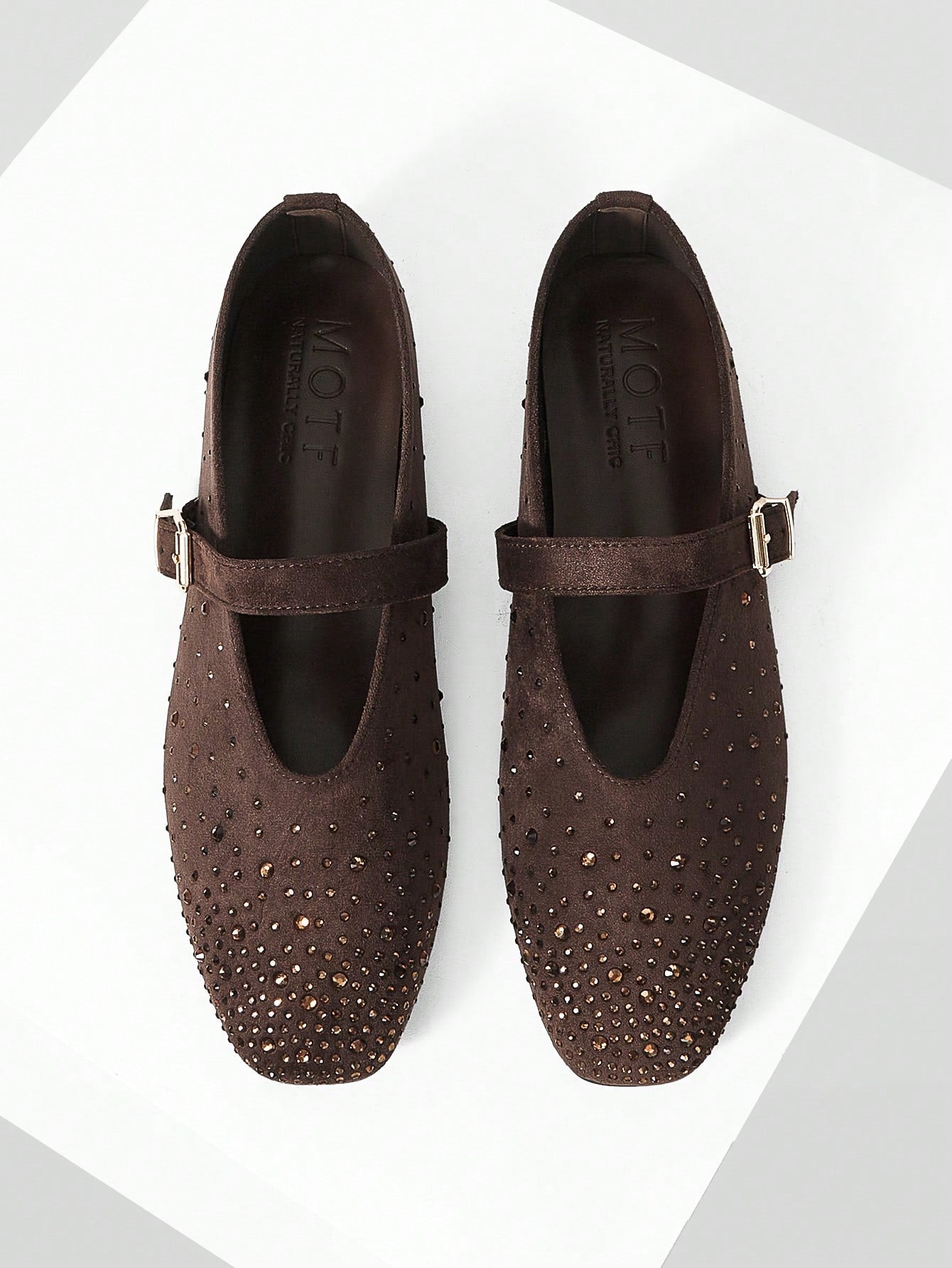 MOTF PREMIUM RHINESTONE DETAIL PU LEATHER FLATS