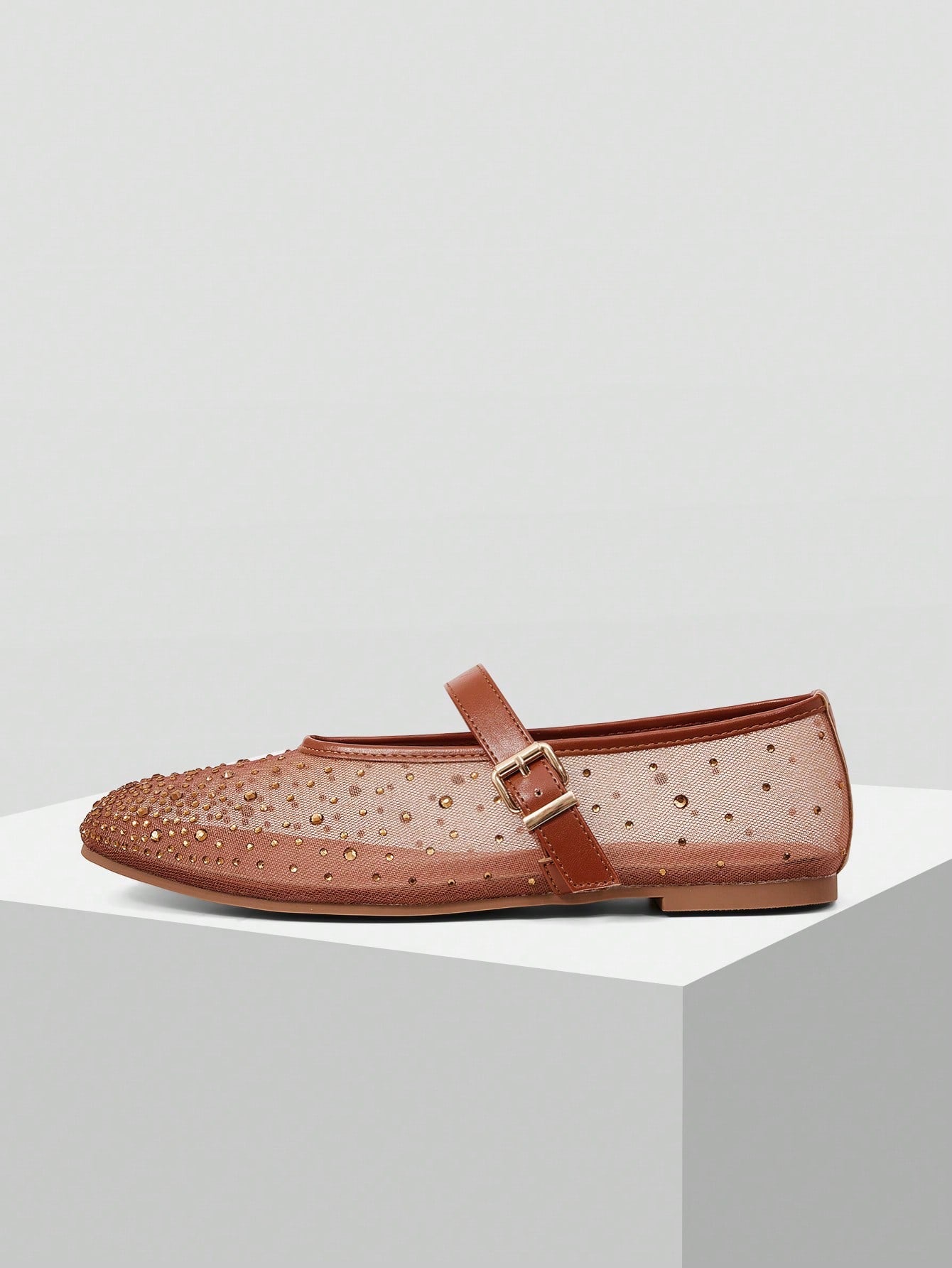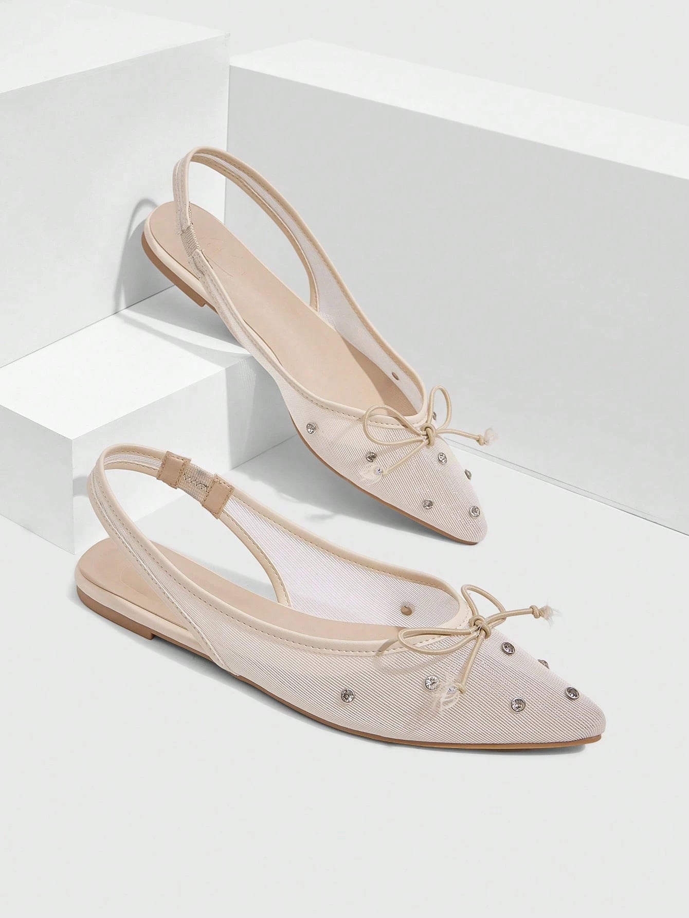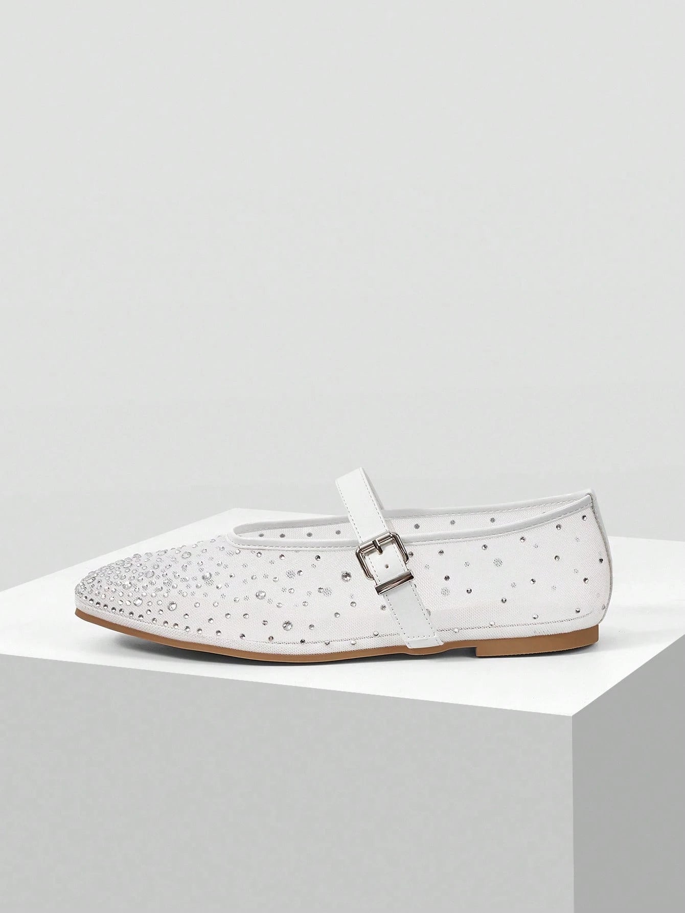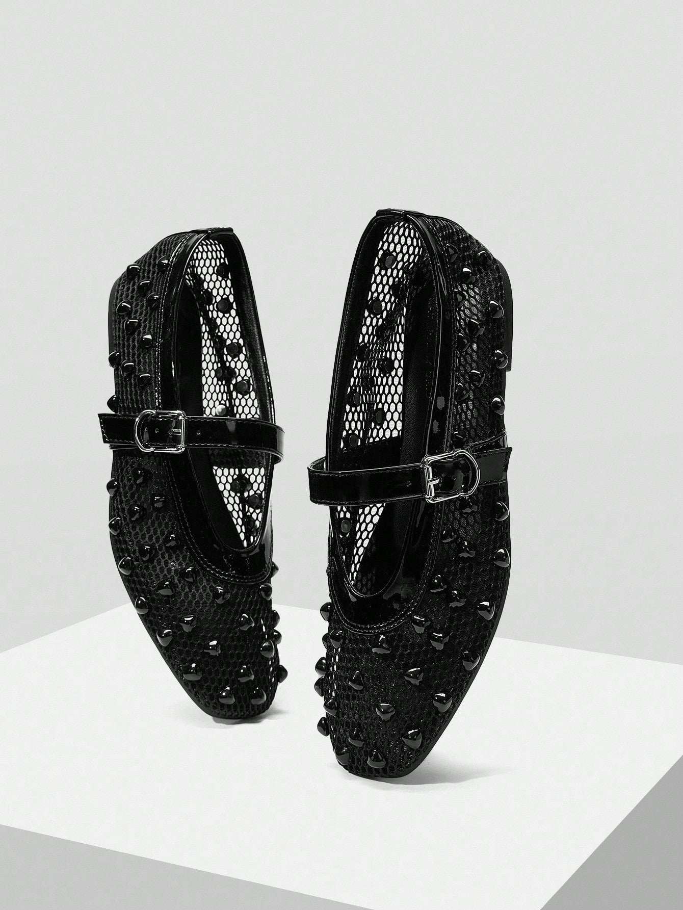 MOTF PREMIUM RHINESTONE DETAIL PU LEATHER FLATS