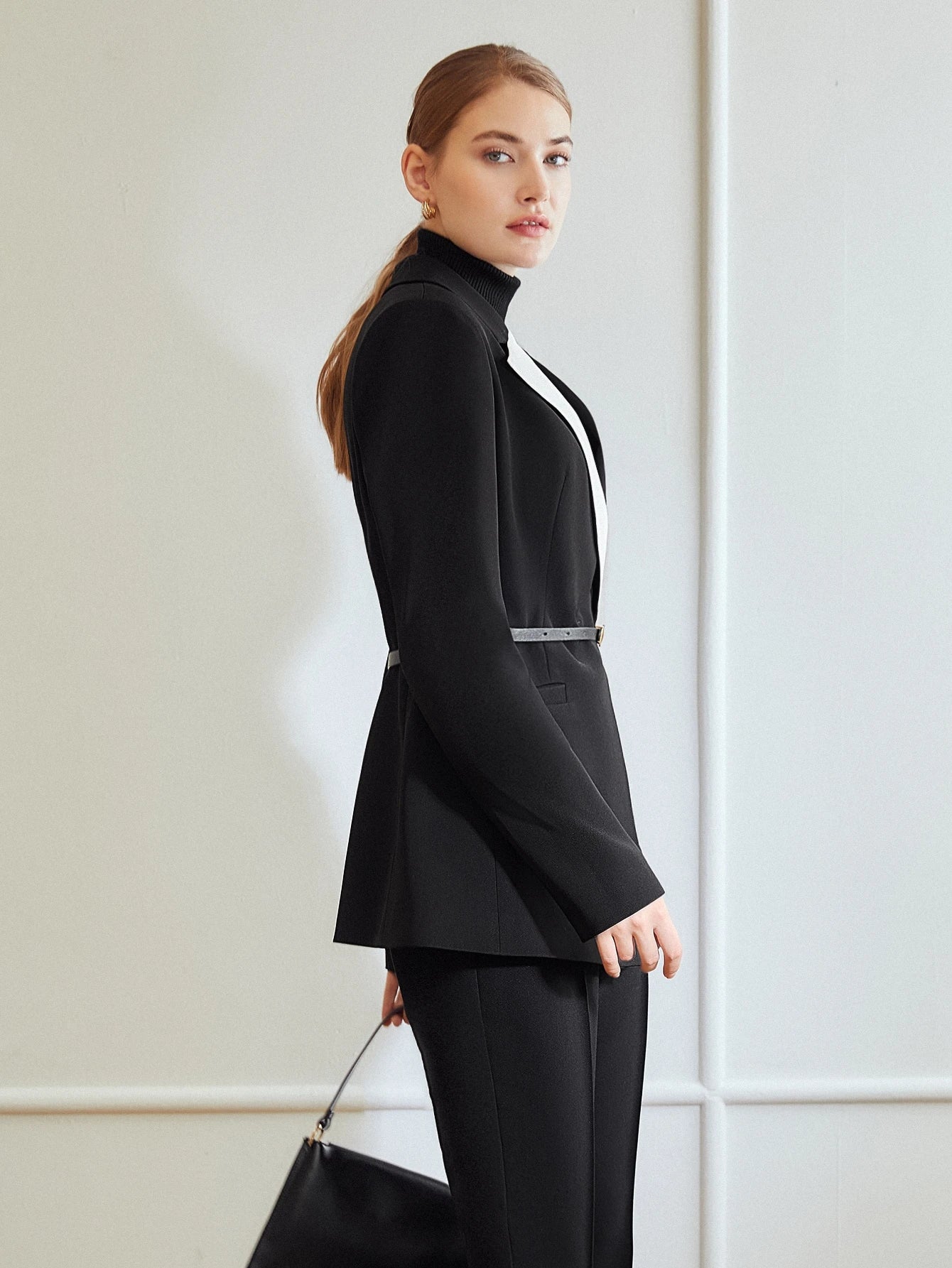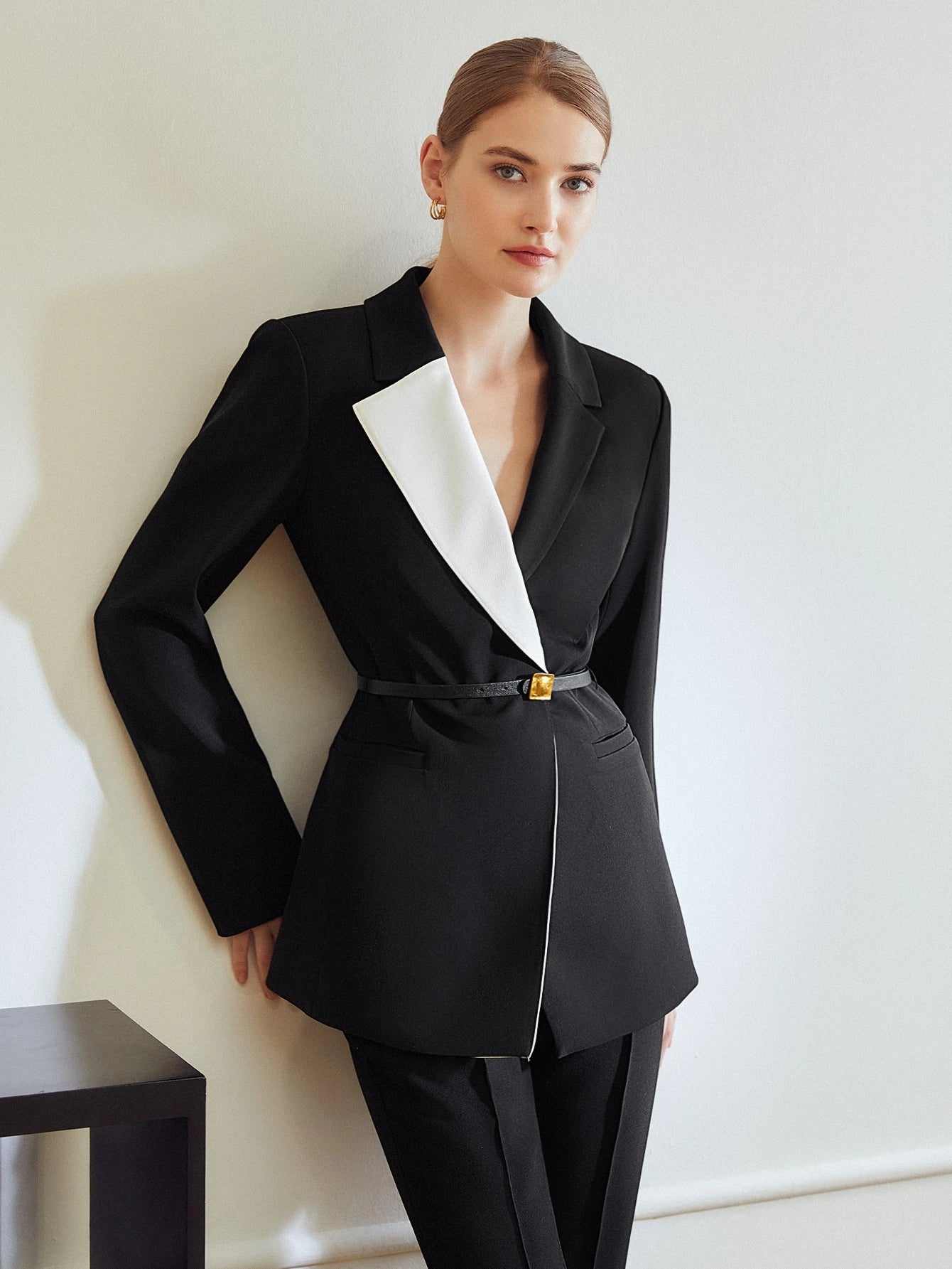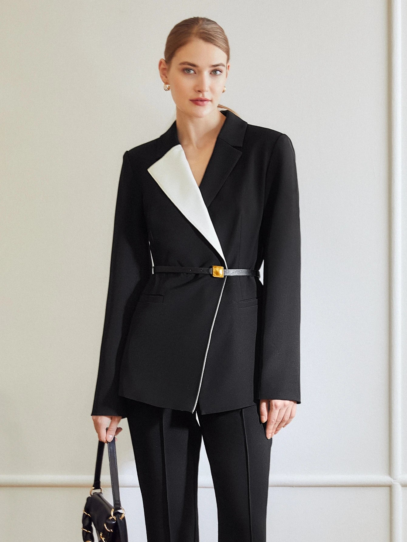 MOTF PREMIUM TWO TONE WRAP BELTED BLAZER