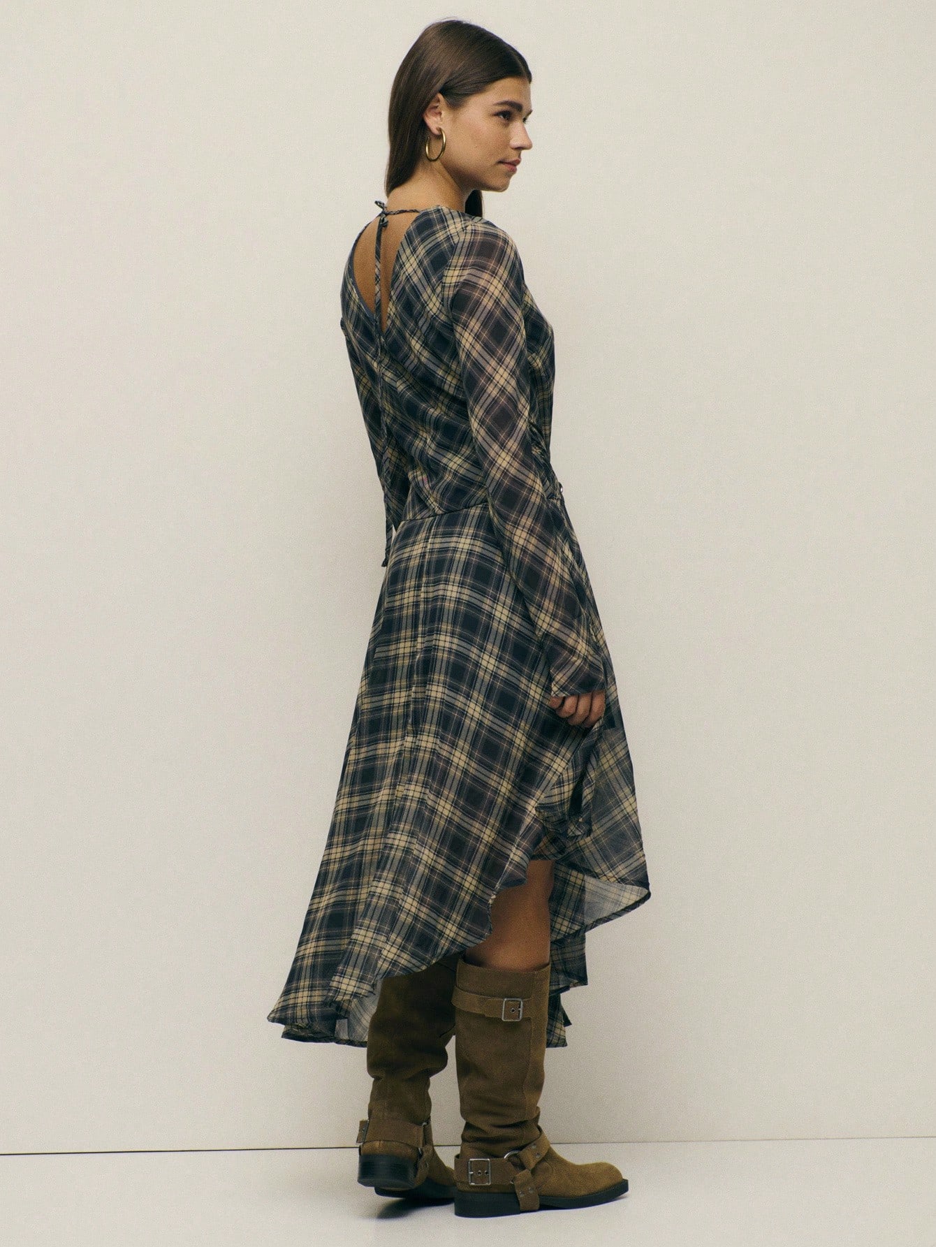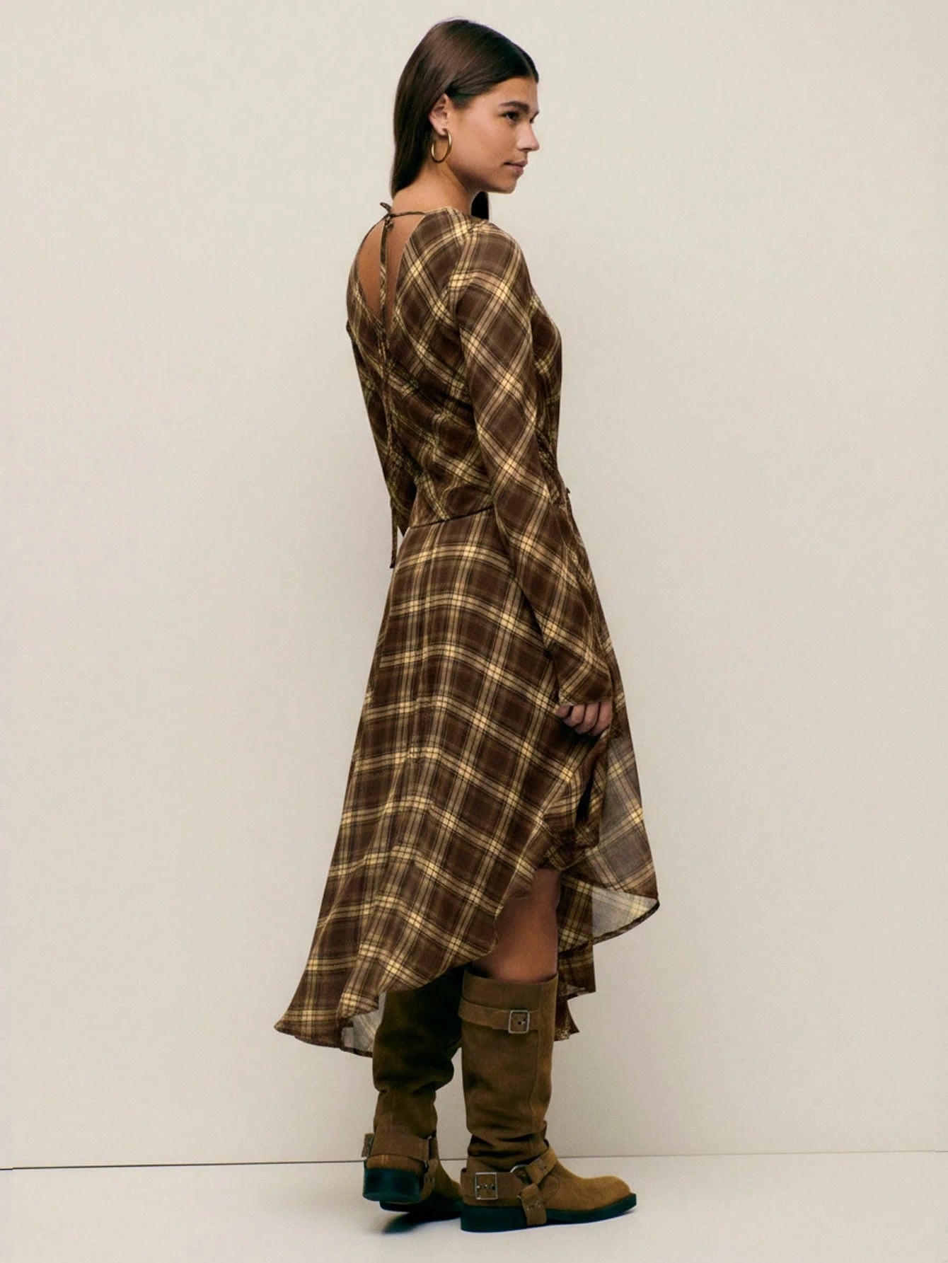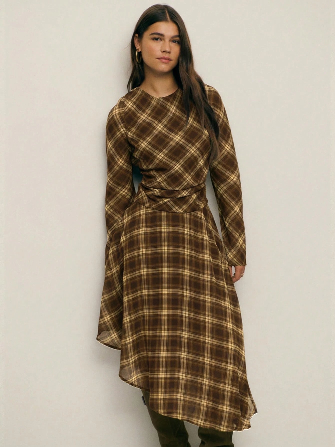 Nöista Long-Sleeve Plaid Dress With A Flattering Ruched Waist