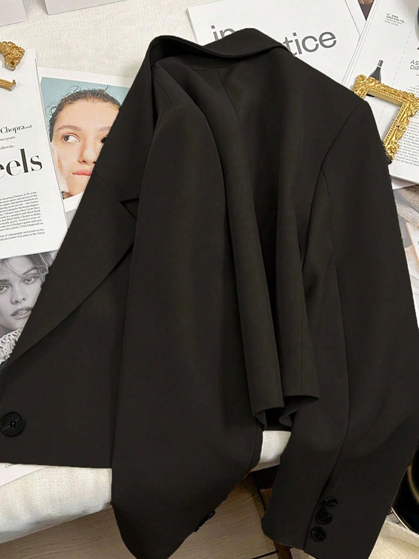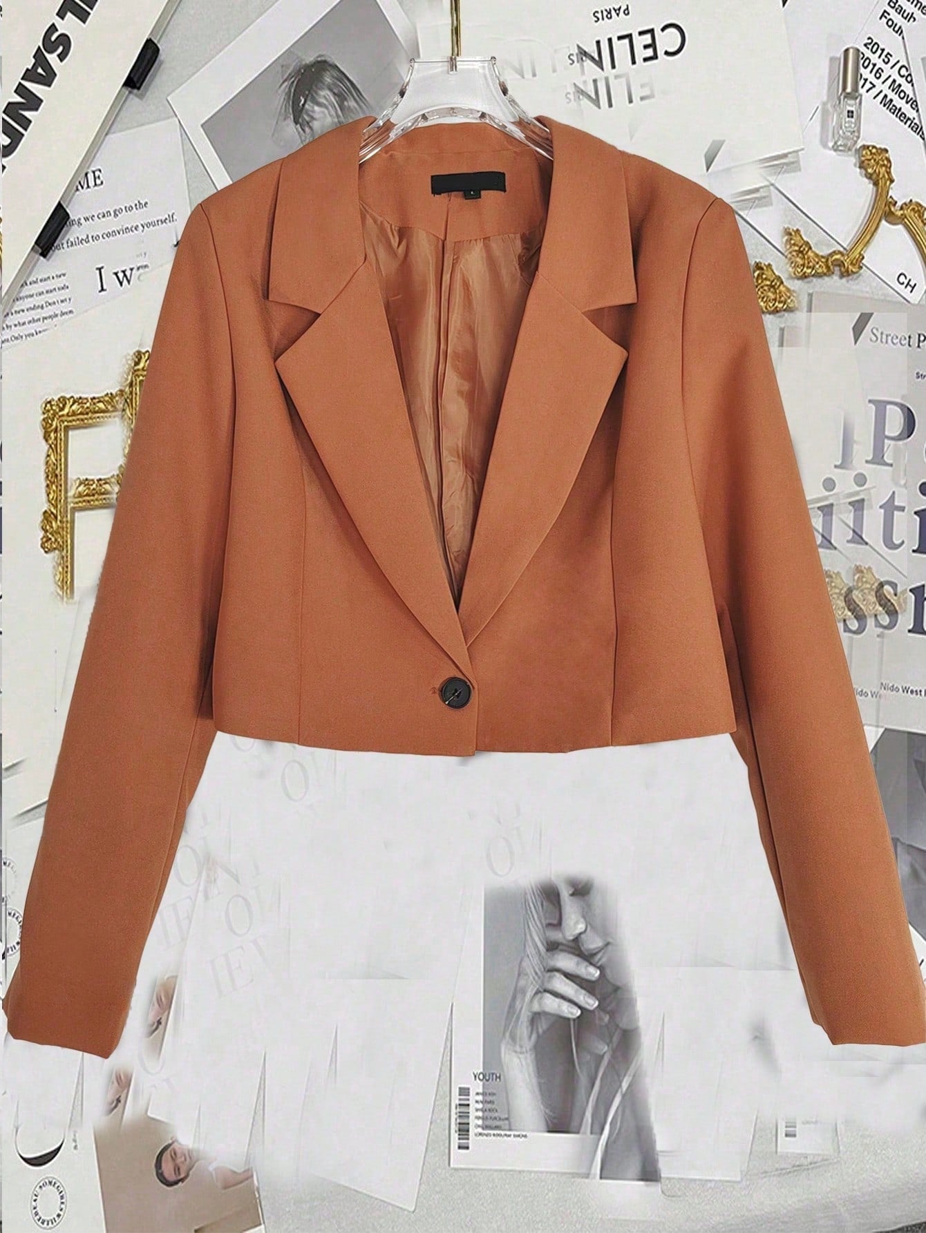 Notched Collar Long Sleeve Single-Button Casual Office Blazer