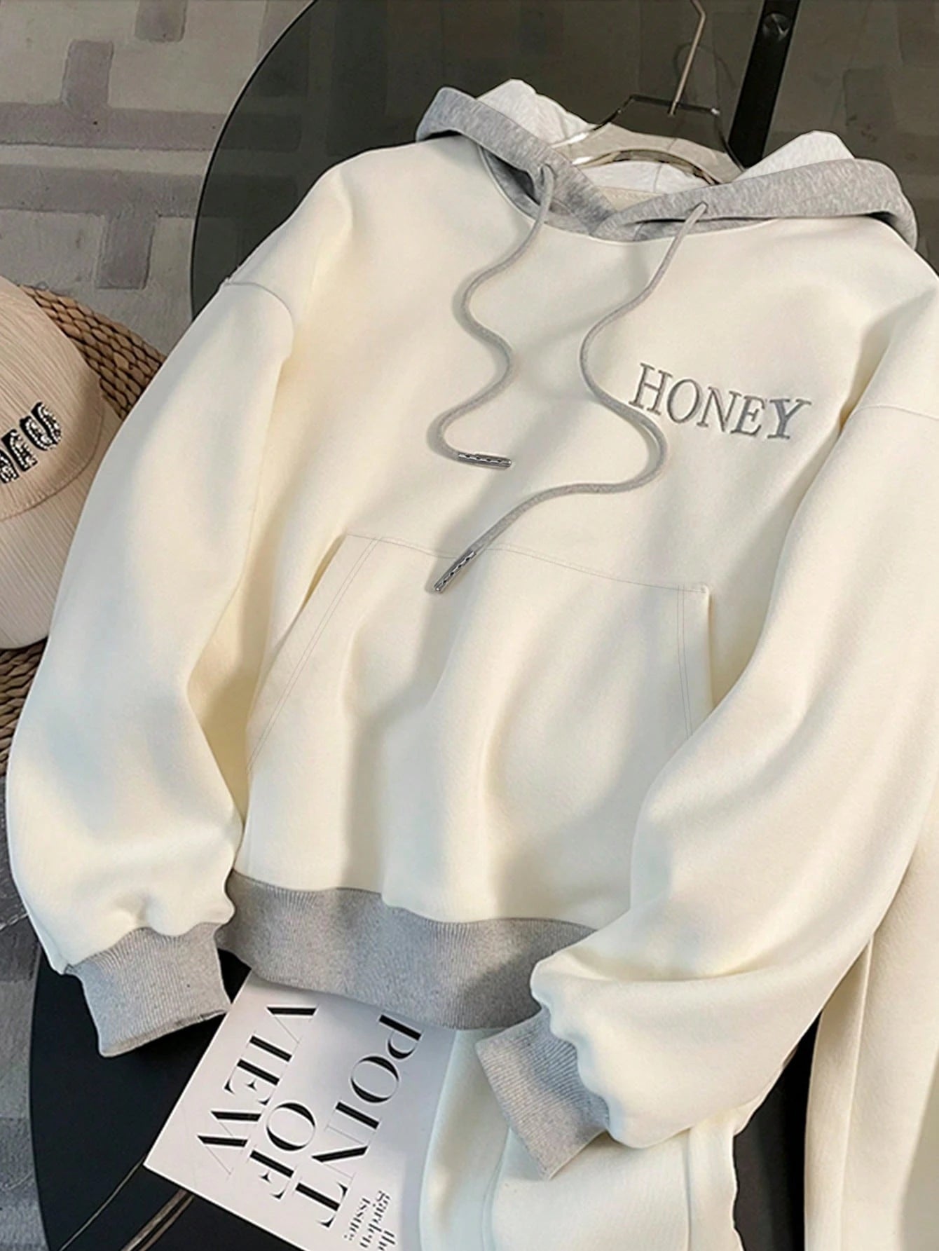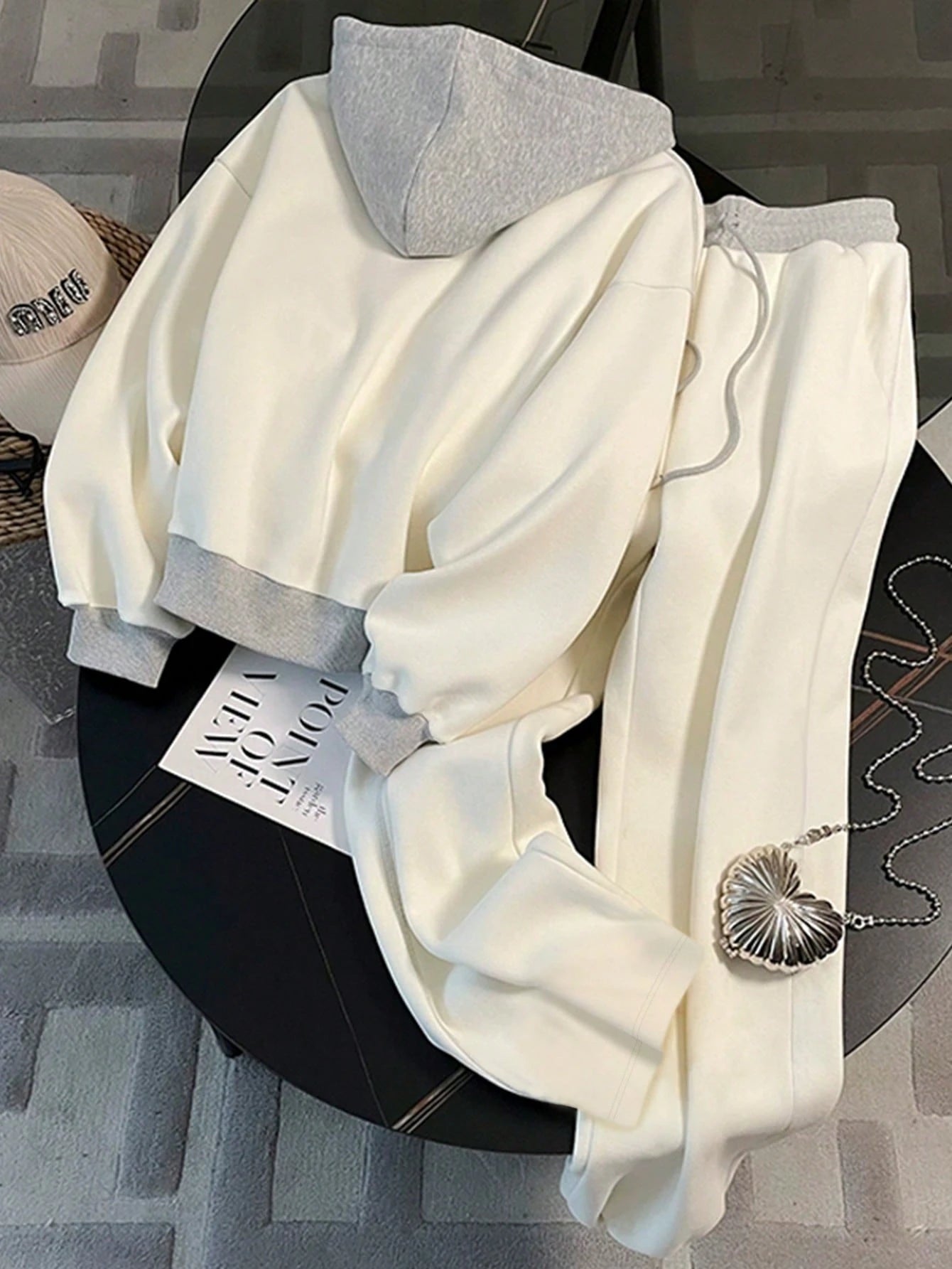 Patchwork Contrast Color Honey Embroidery Elastic Waist 2-Piece Set