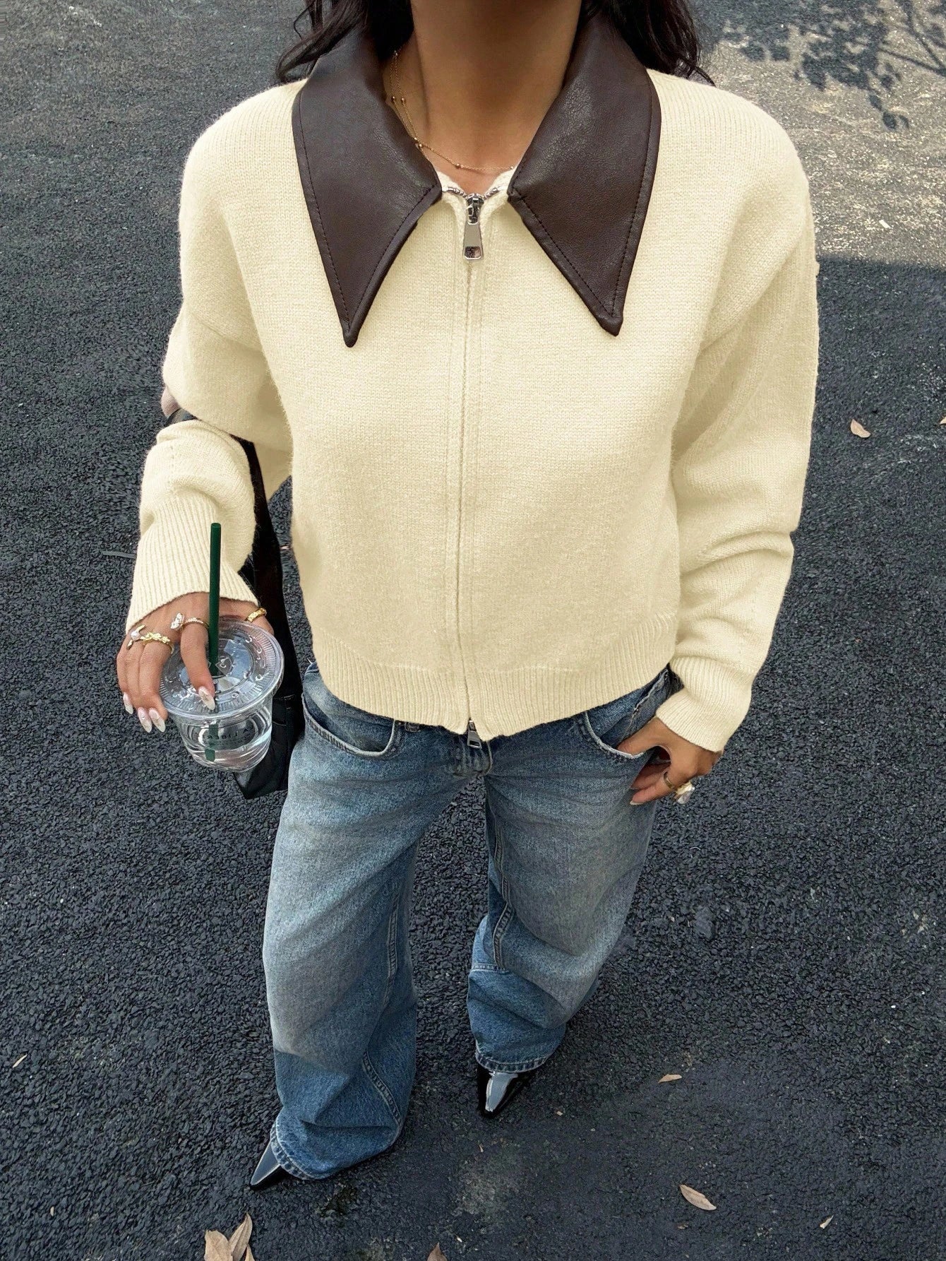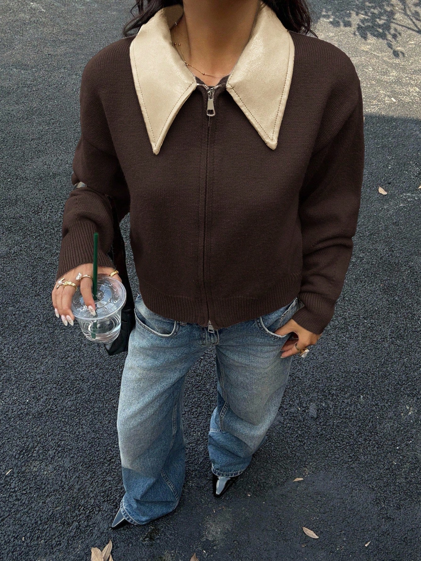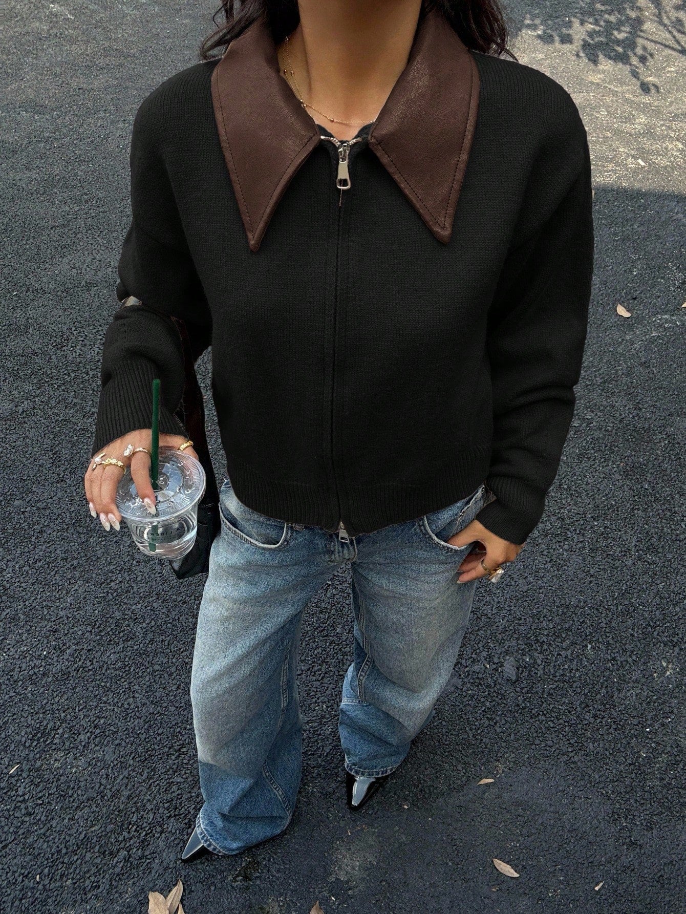 Siren Gaze Vintage Patchwork Collar Short Cardigan Sweater