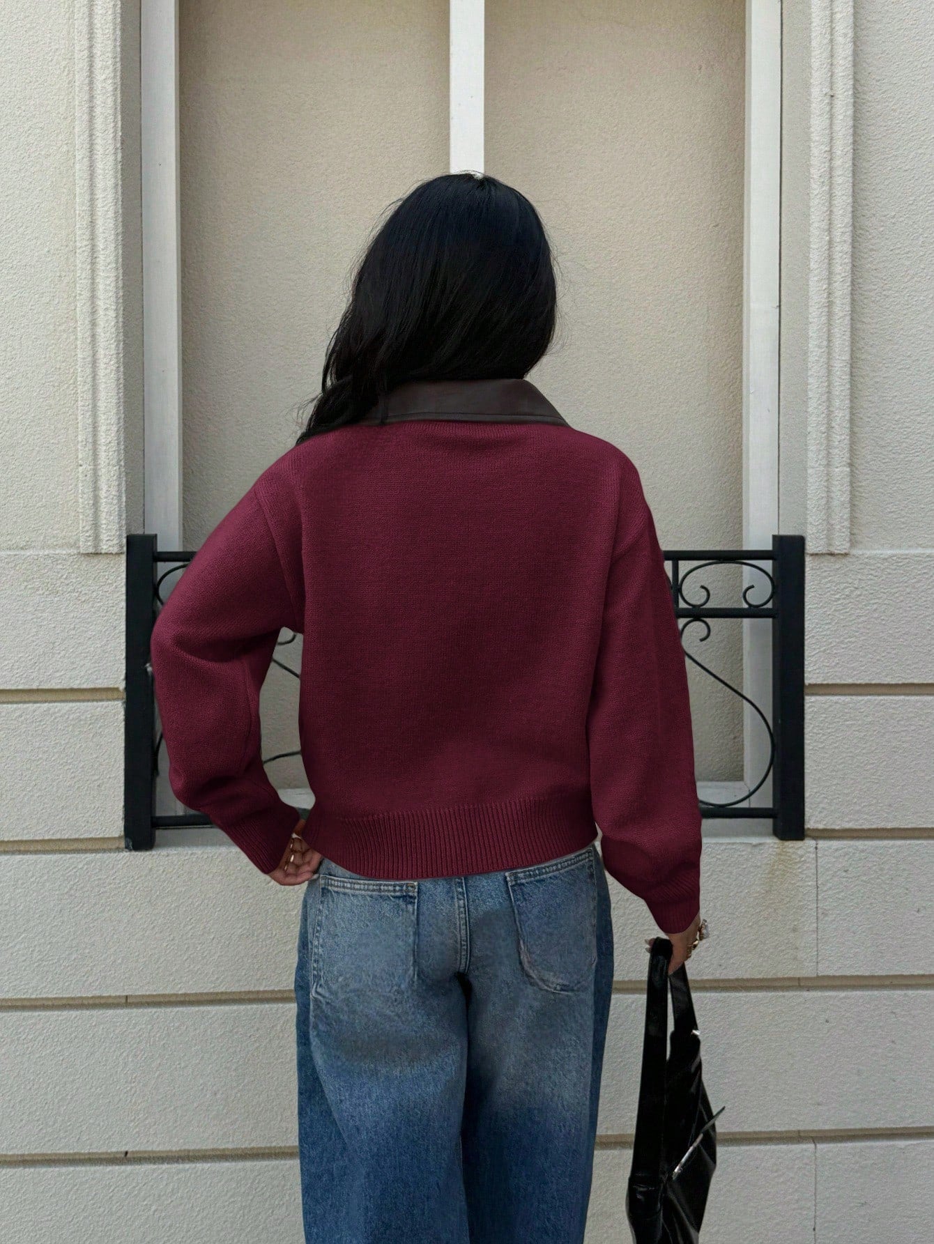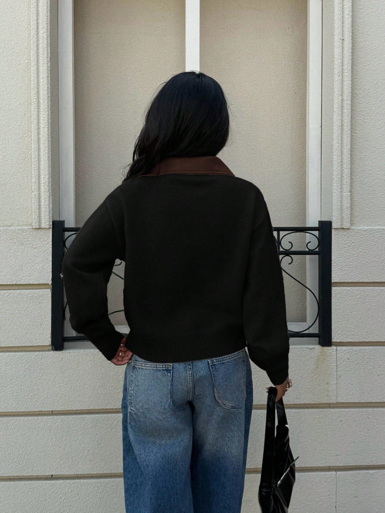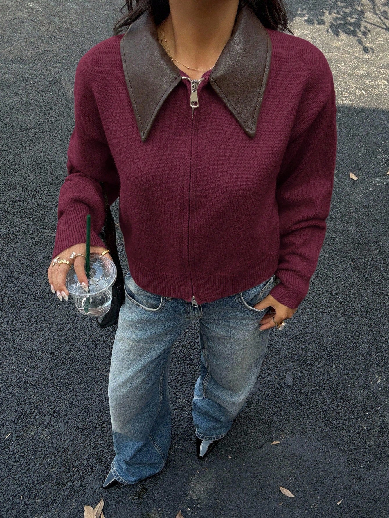 Siren Gaze Vintage Patchwork Collar Short Cardigan Sweater