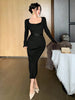 Solid Color Fitted Waist Tie Waist Lace Patchwork Flare Sleeve Women Sweater Dress