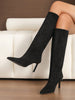 Suede Pointed Toe Stiletto Heel Slip-On Boots