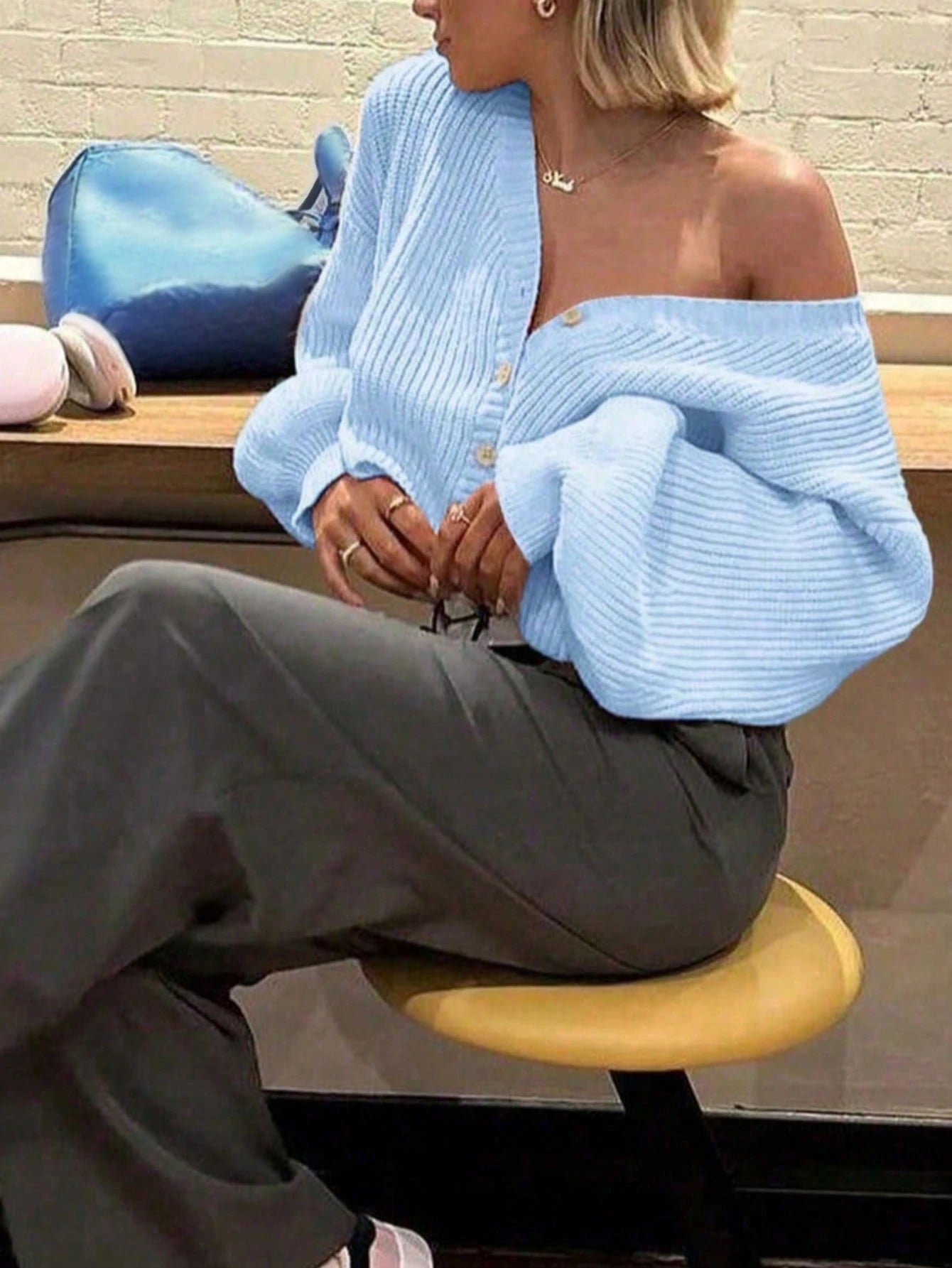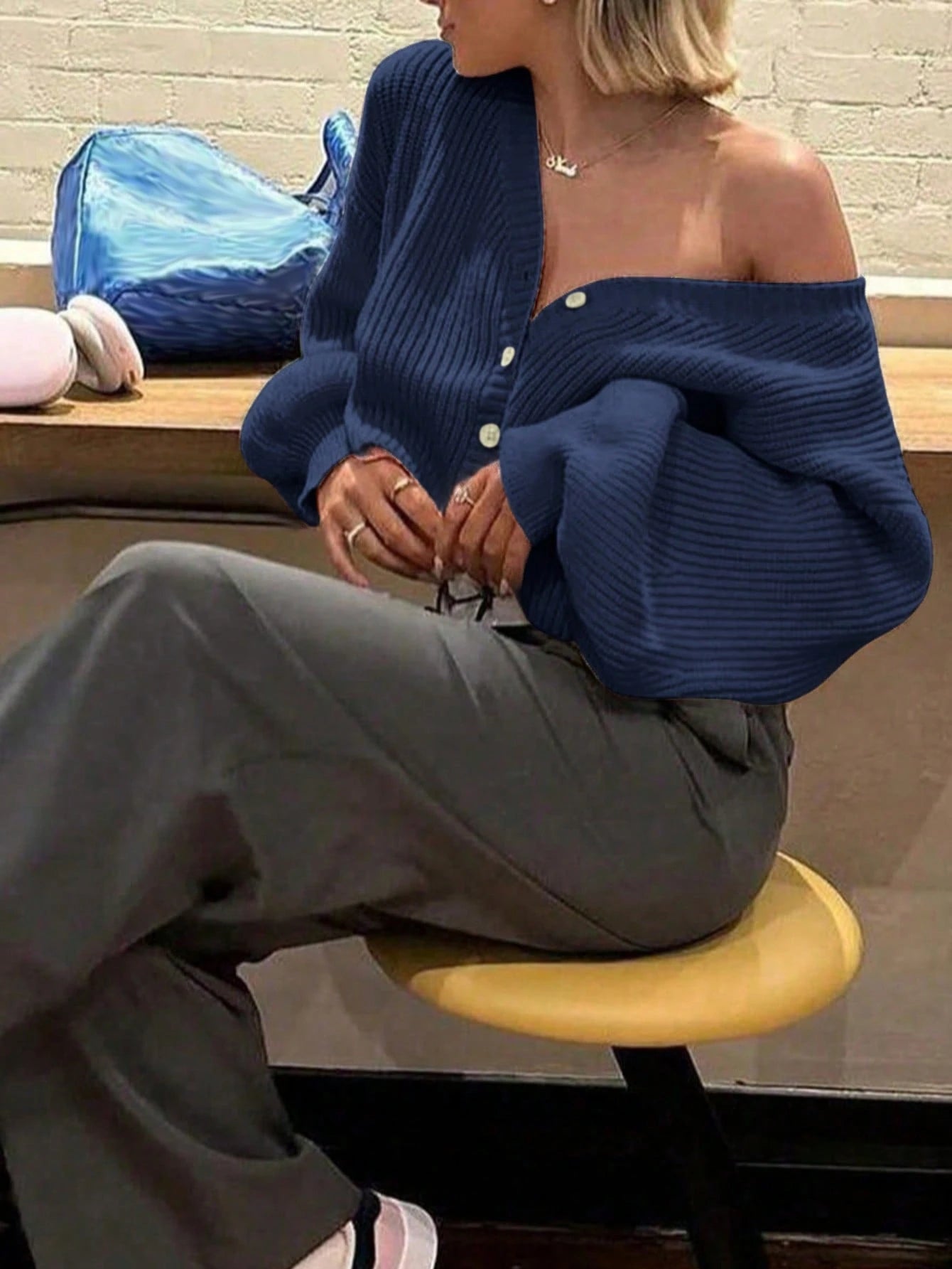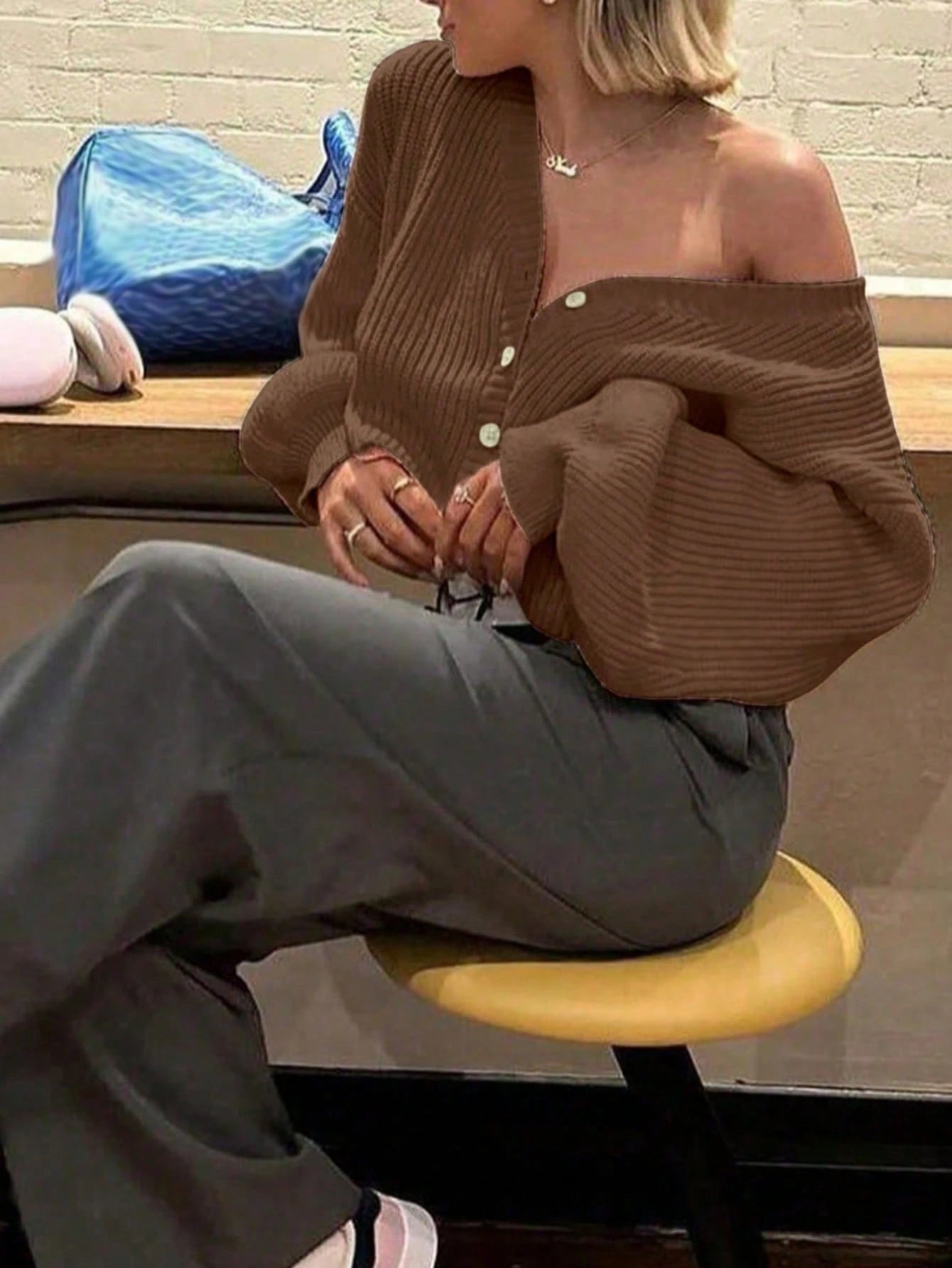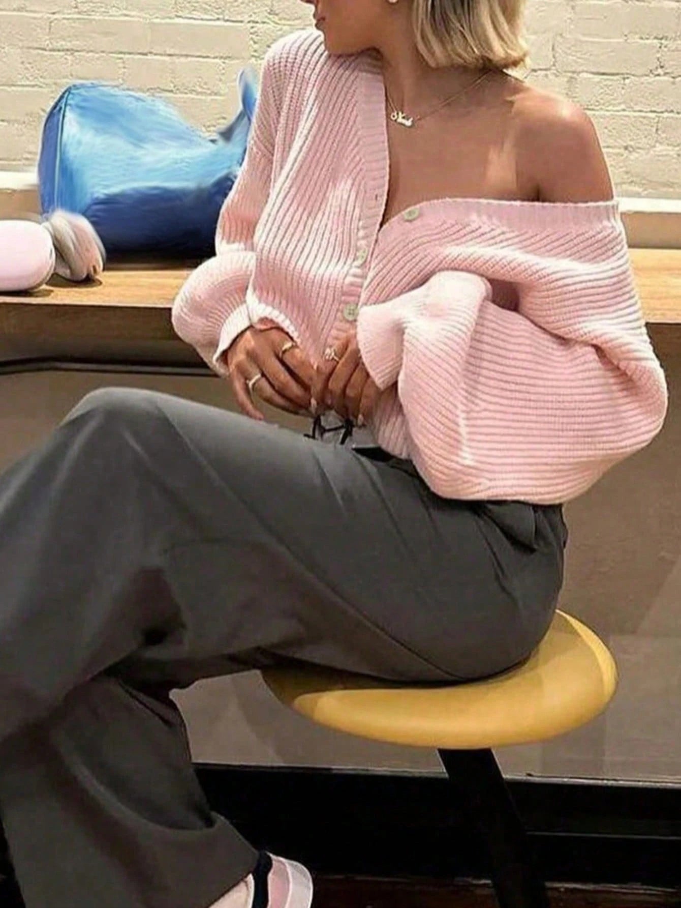 V-Neck Front Twisted Buckle Long-Sleeved Knitted Cardigan