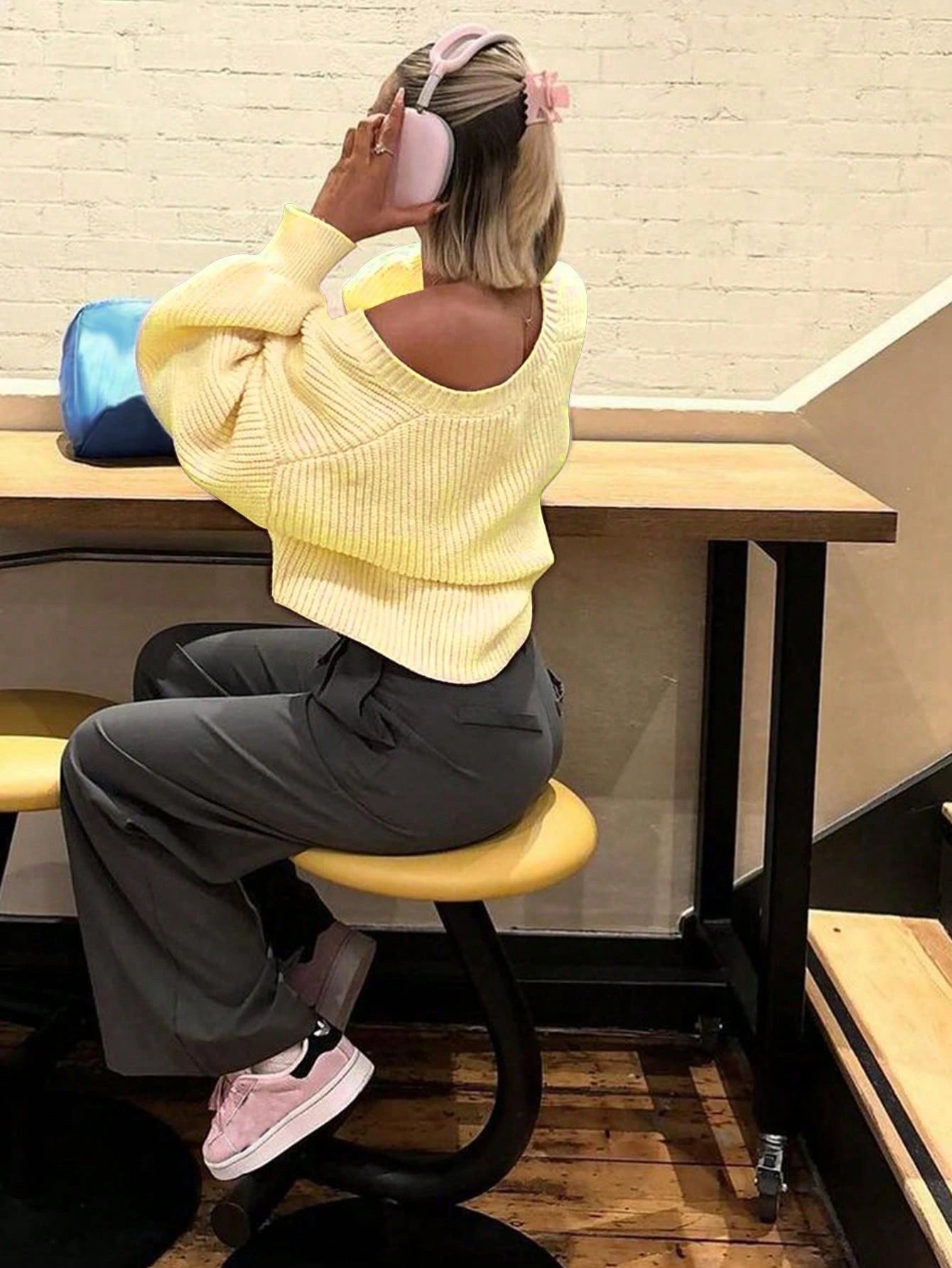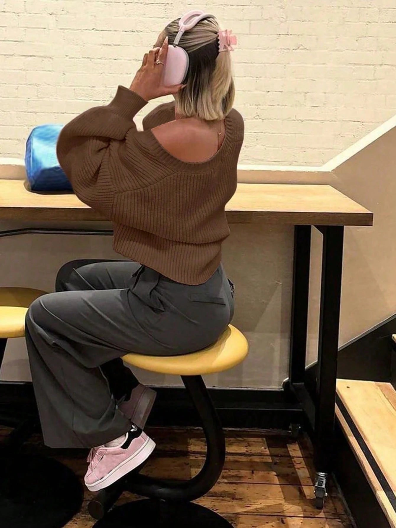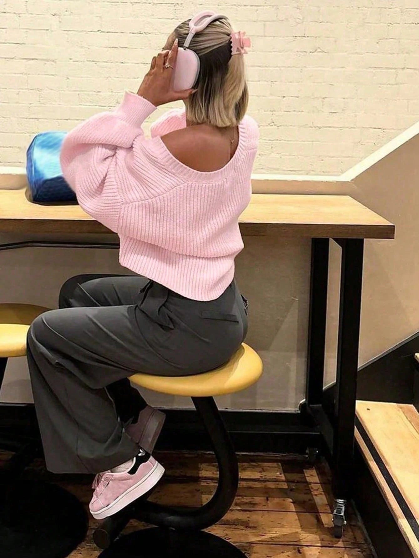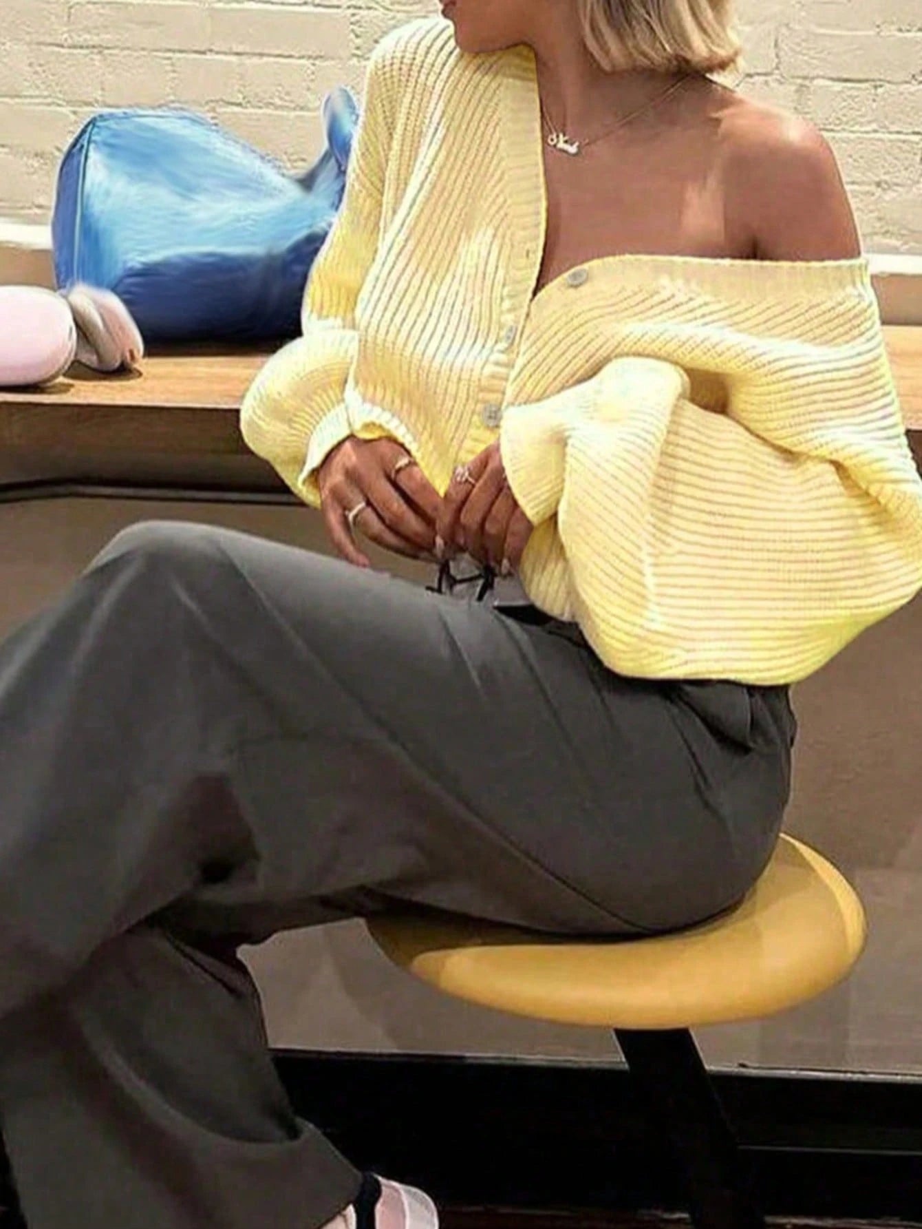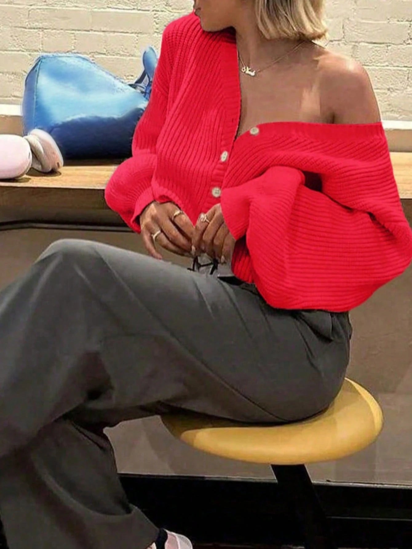 V-Neck Front Twisted Buckle Long-Sleeved Knitted Cardigan