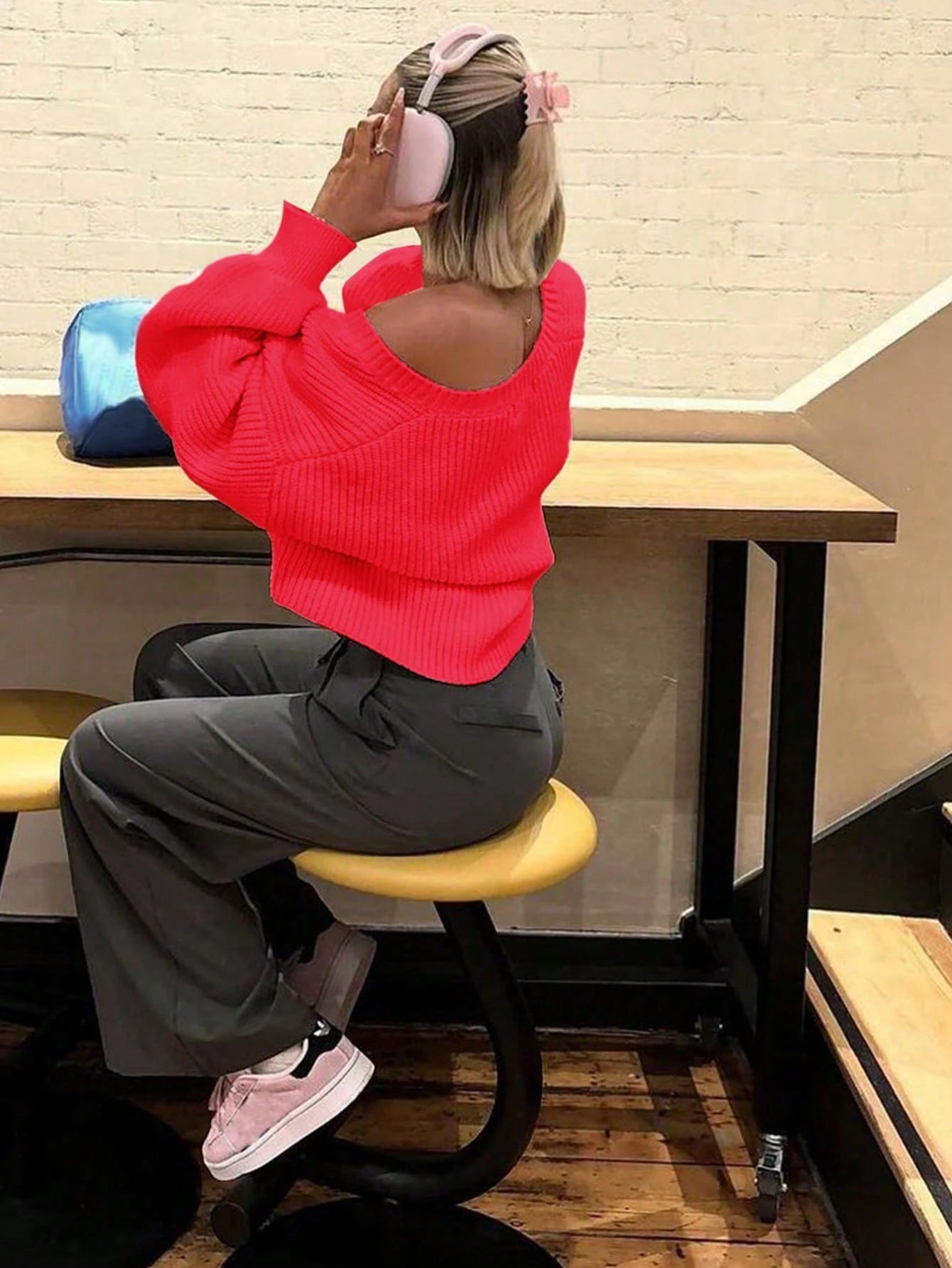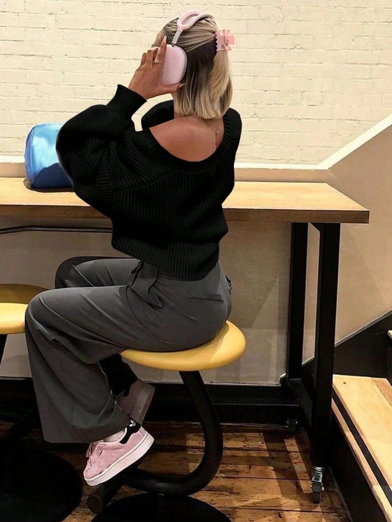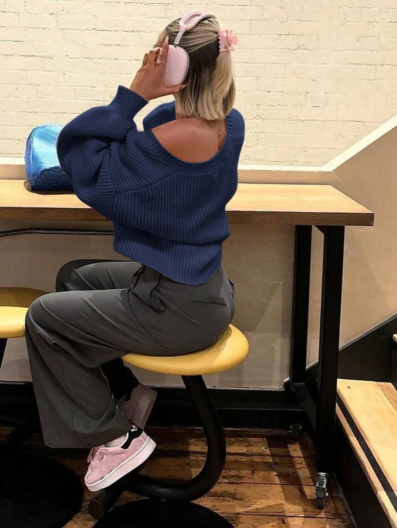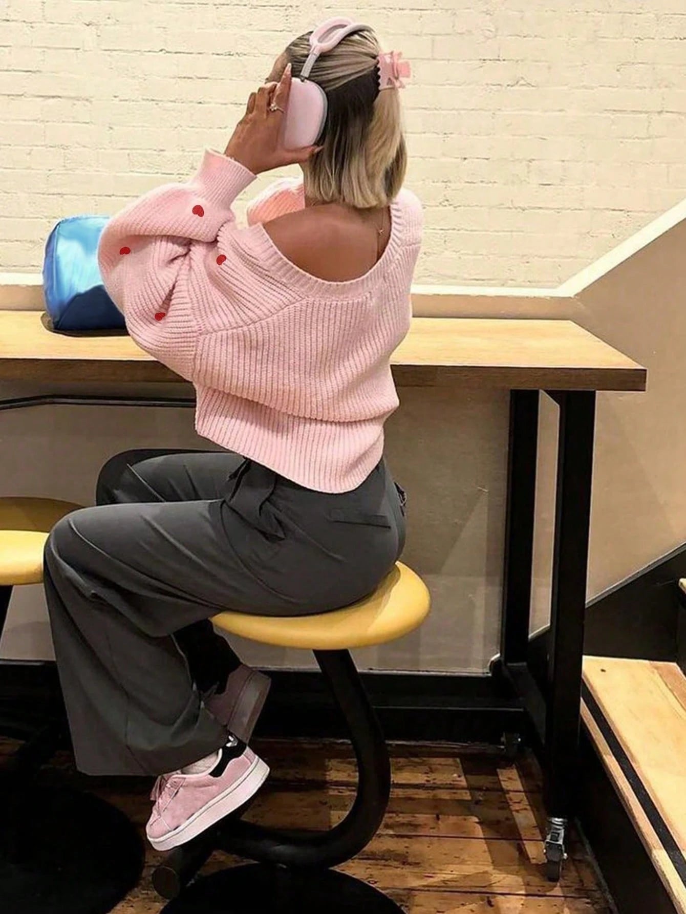 V-Neck Front Twisted Buckle Long-Sleeved Knitted Cardigan