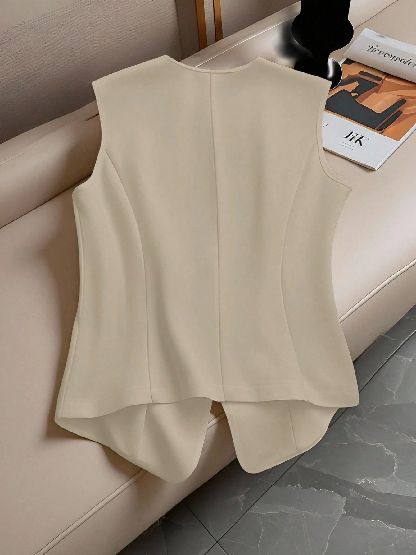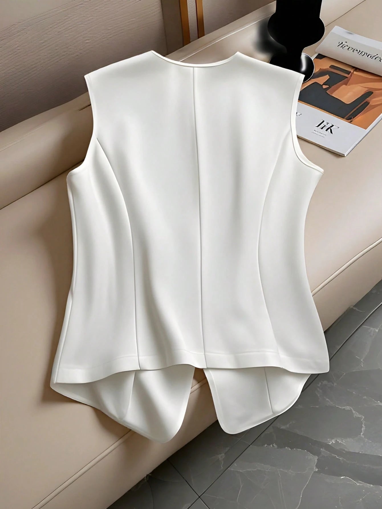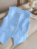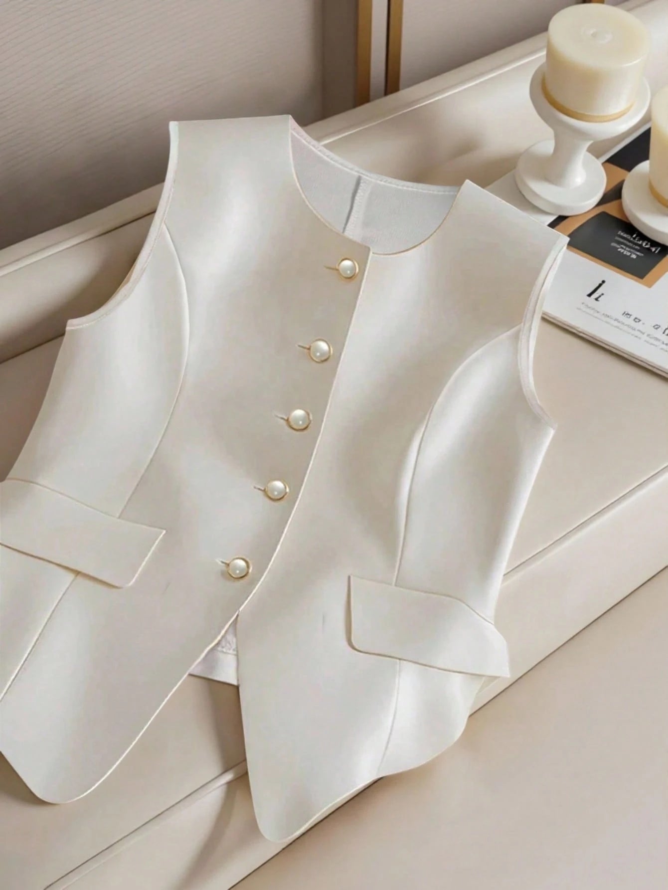 Versatile Sleeveless Single-Breasted Cinched Waist Faux Pocket Women Shirt