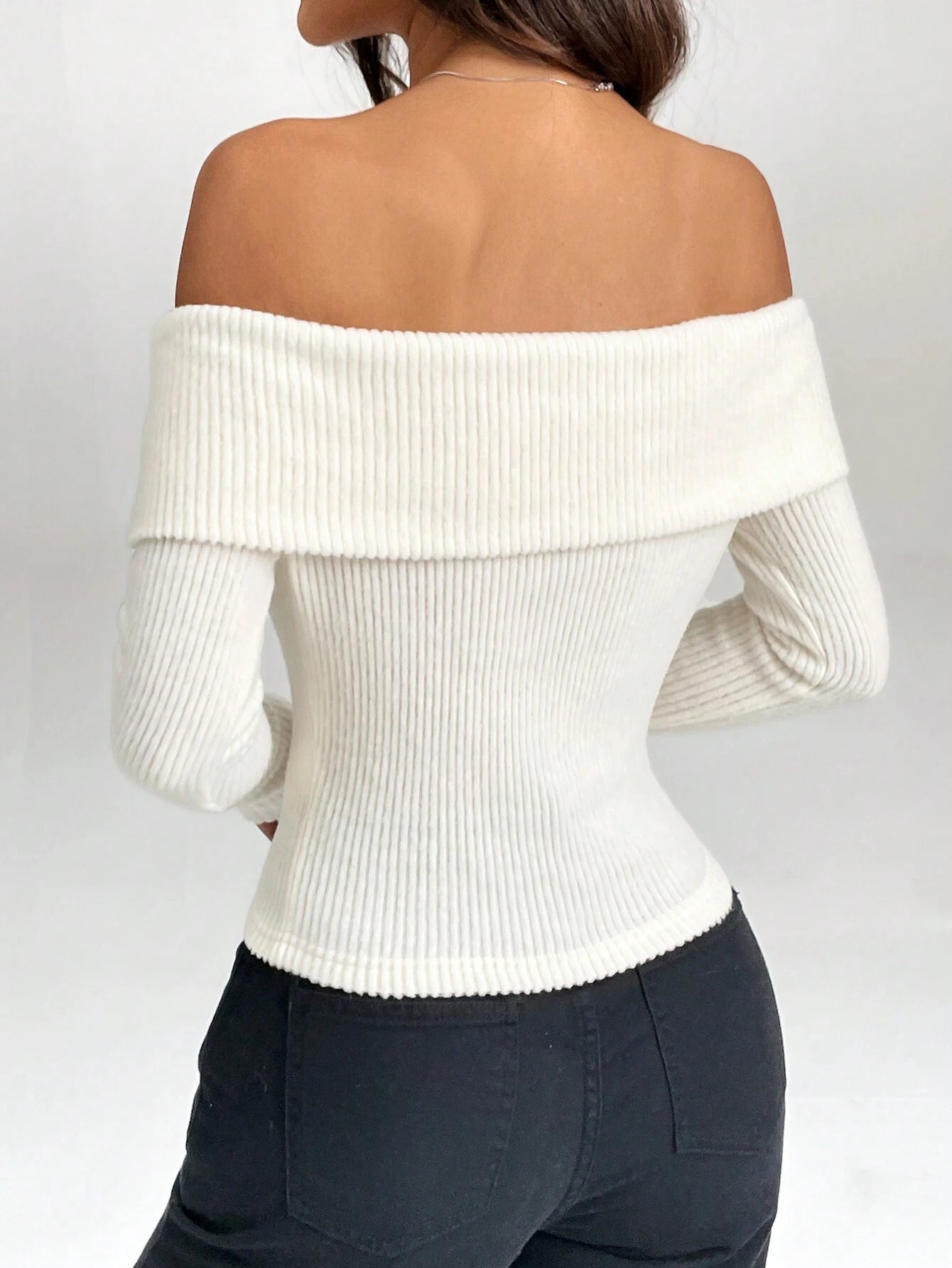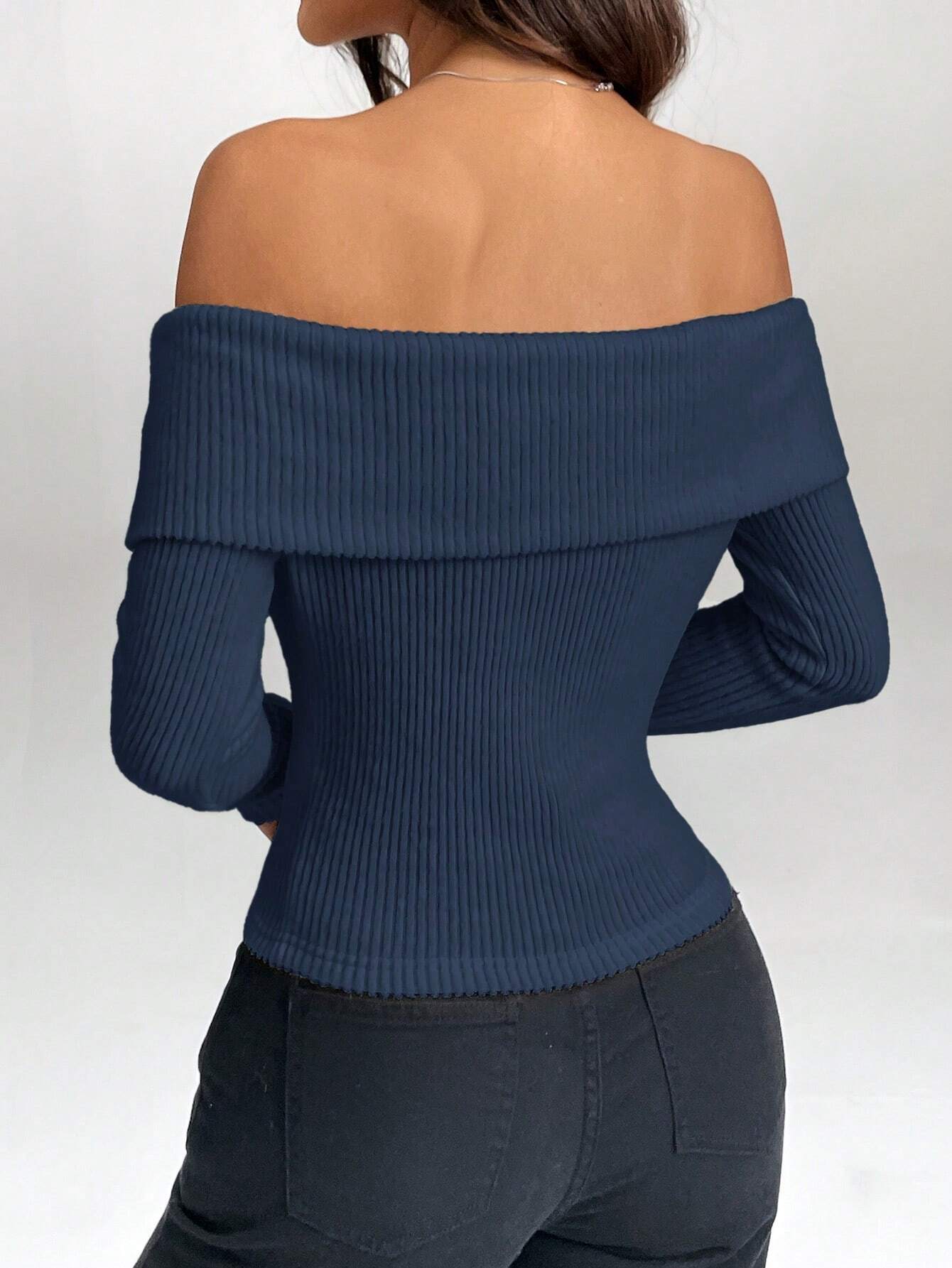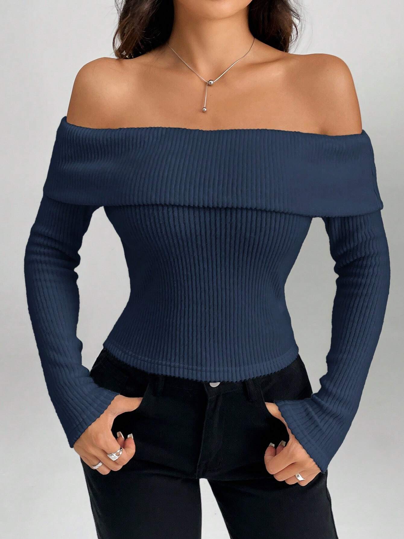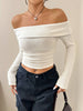Women Open Shoulder Long Sleeve Crop Top T-Shirt