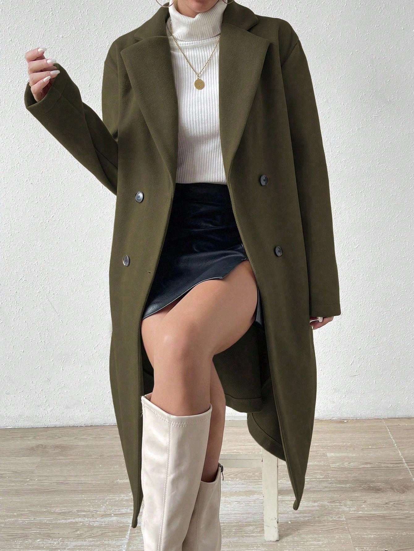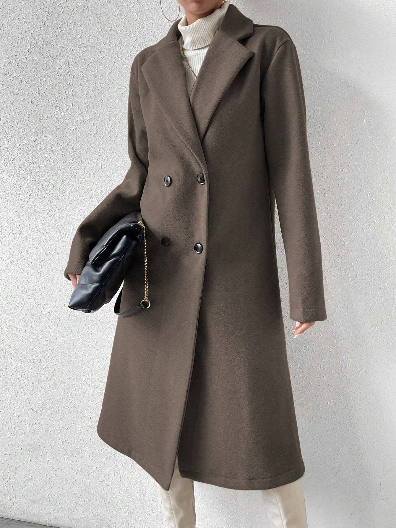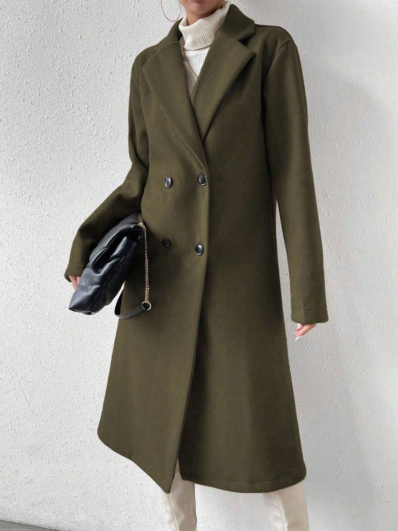 Women Plain Front Button Concealed Placket Long Sleeve Simple Jacket