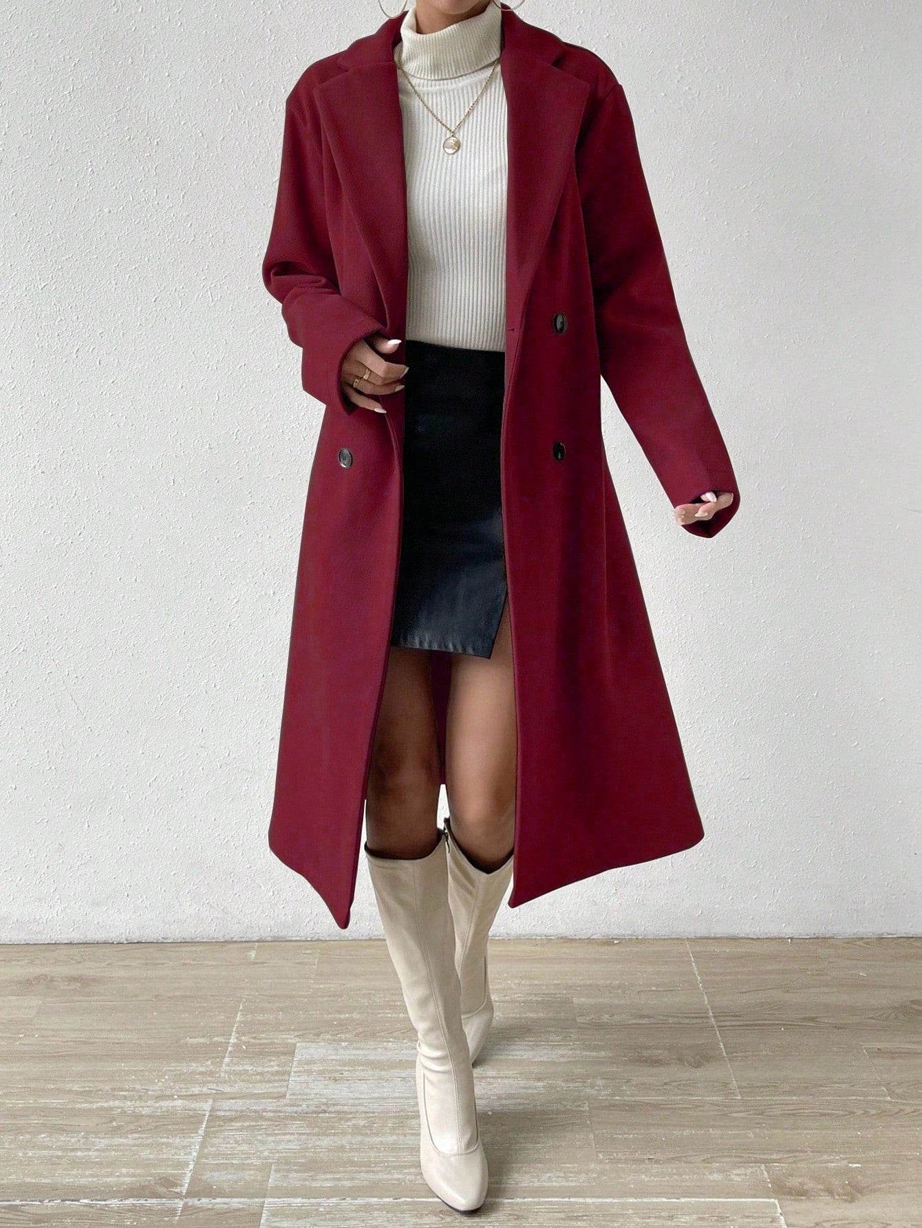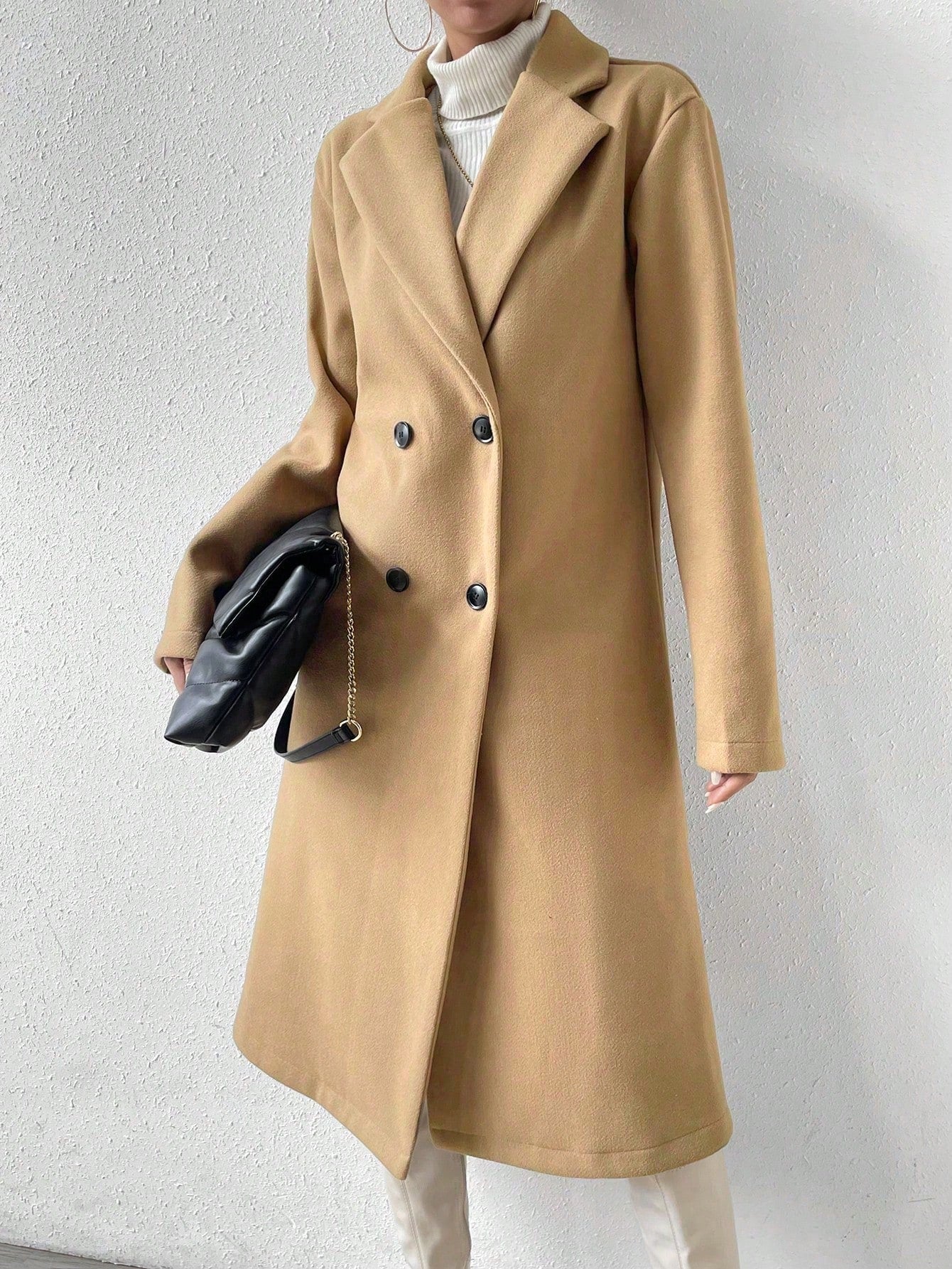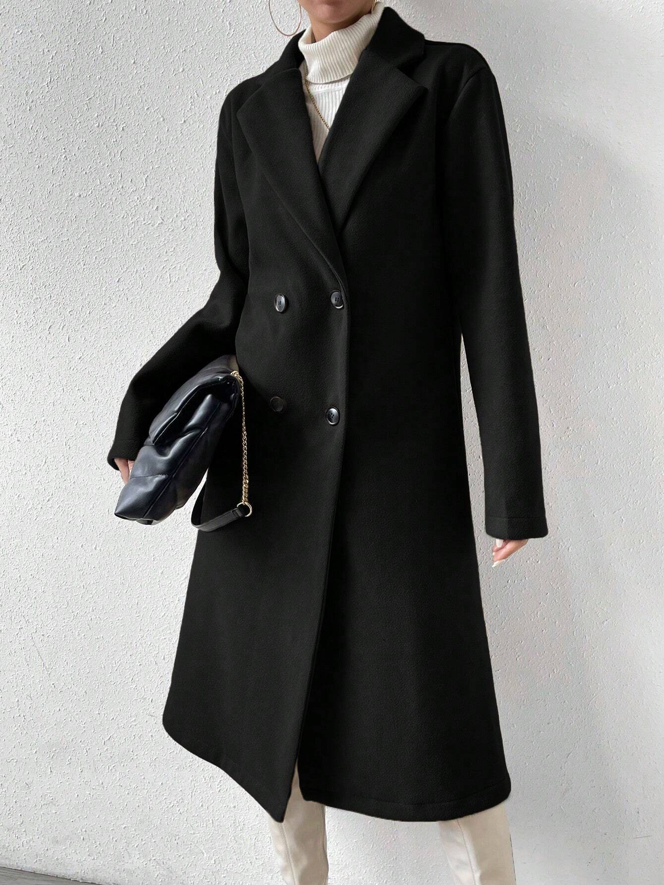 Women Plain Front Button Concealed Placket Long Sleeve Simple Jacket