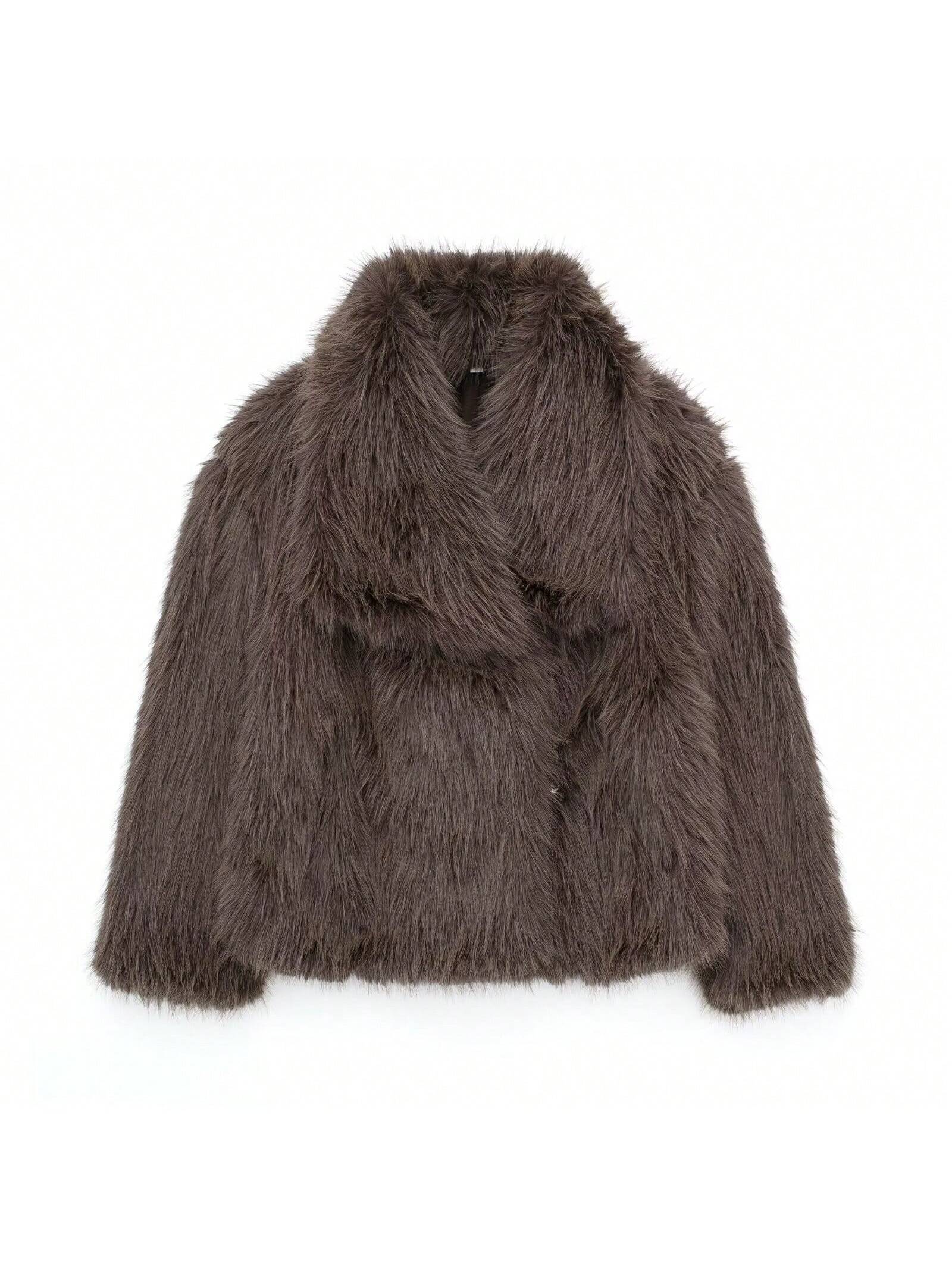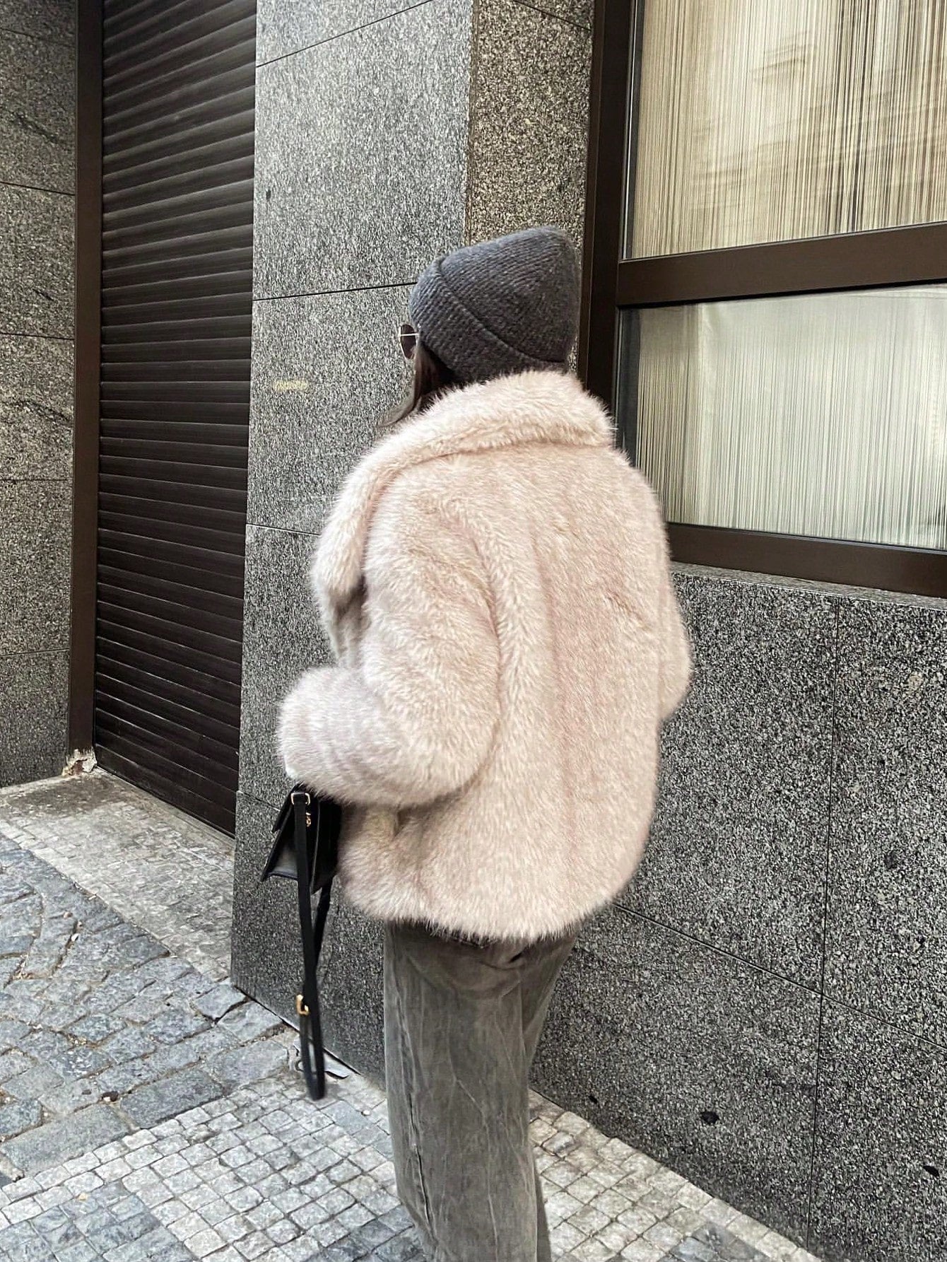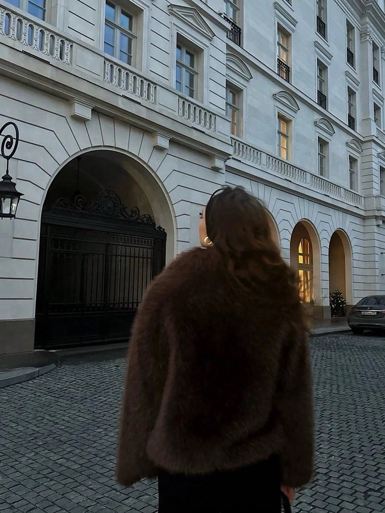 Women Solid Color Plush Elegant Short Faux Fur Jacket