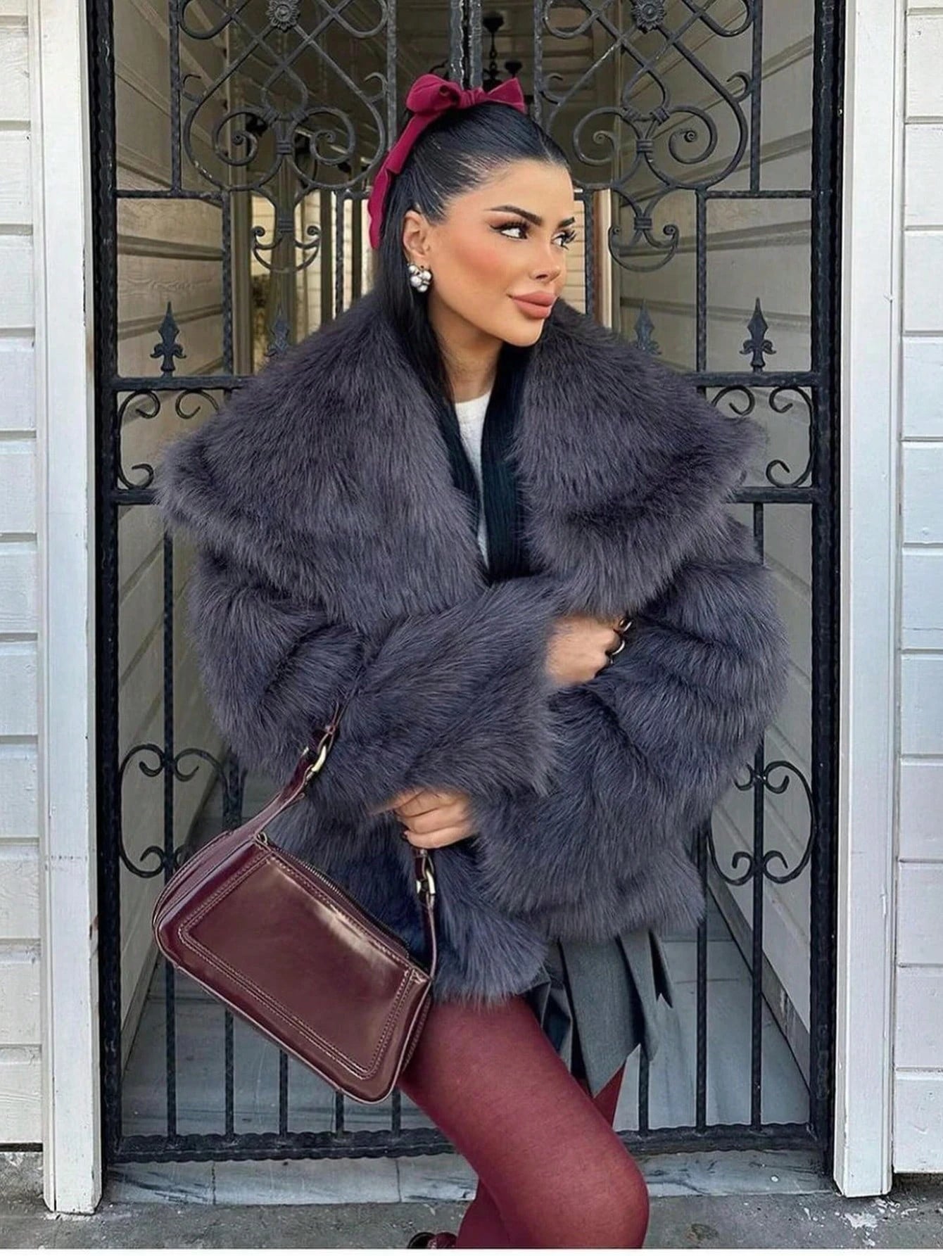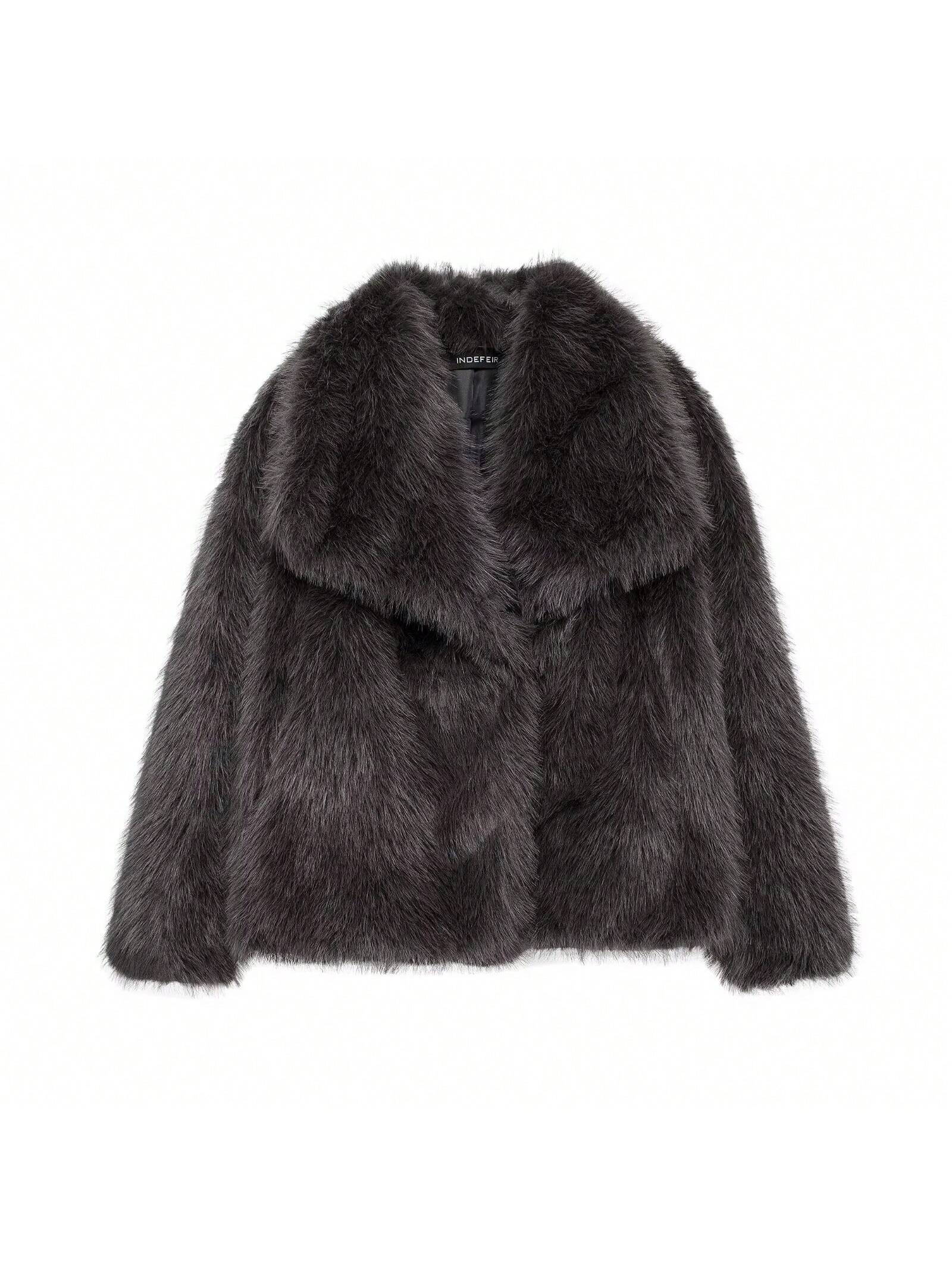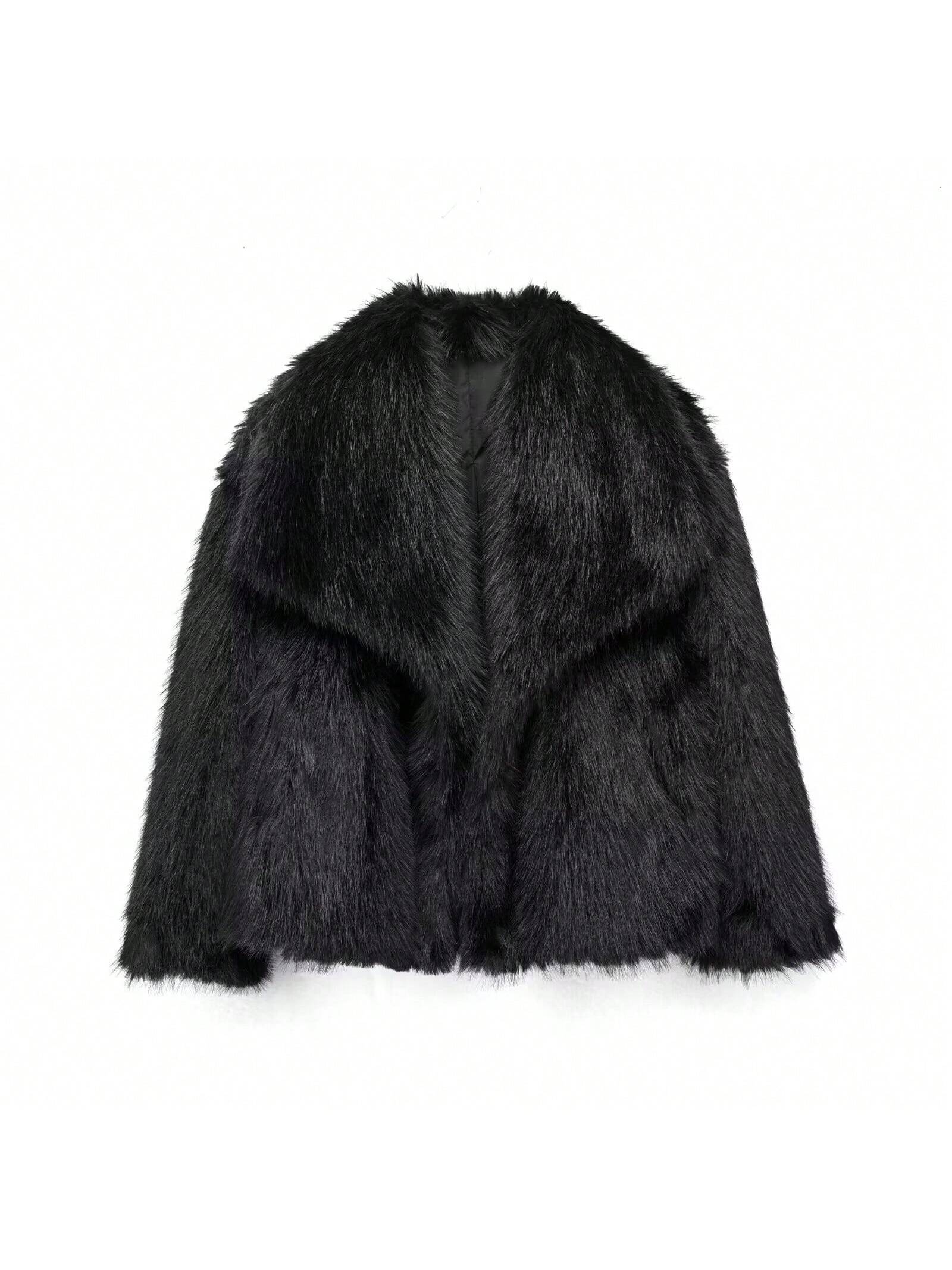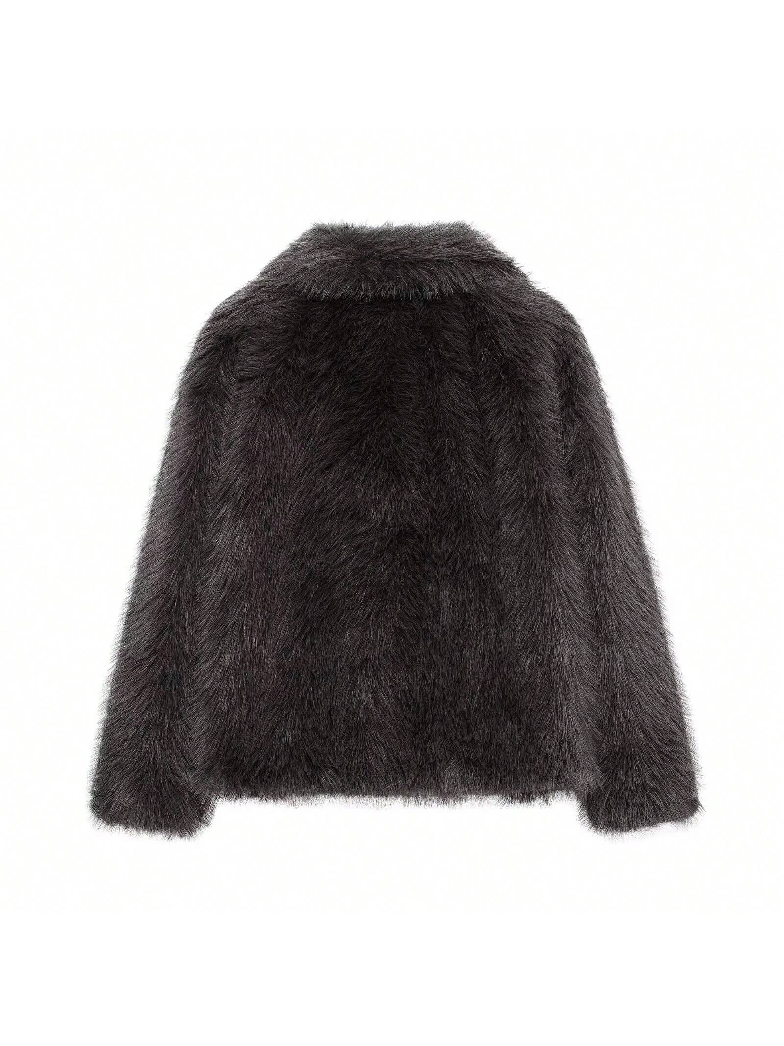 Women Solid Color Plush Elegant Short Faux Fur Jacket