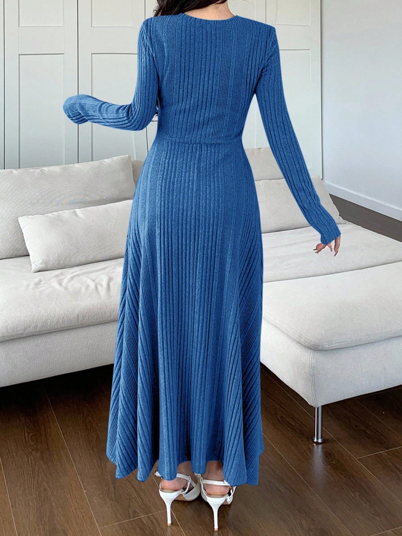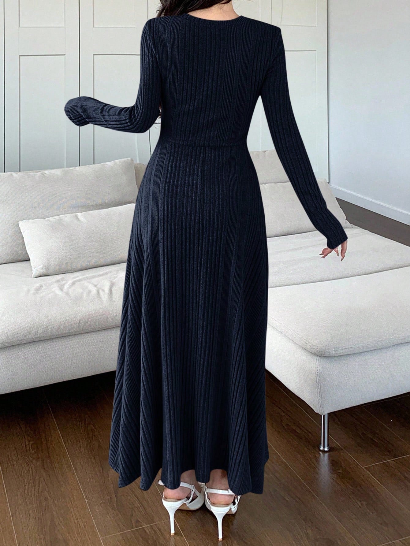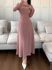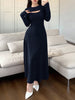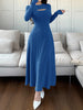 Women Solid Color Round Neck Long Sleeve Casual Mid-Length Dress