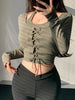 Details: Lace Up, Grommet Eyelet, Rib-Knit