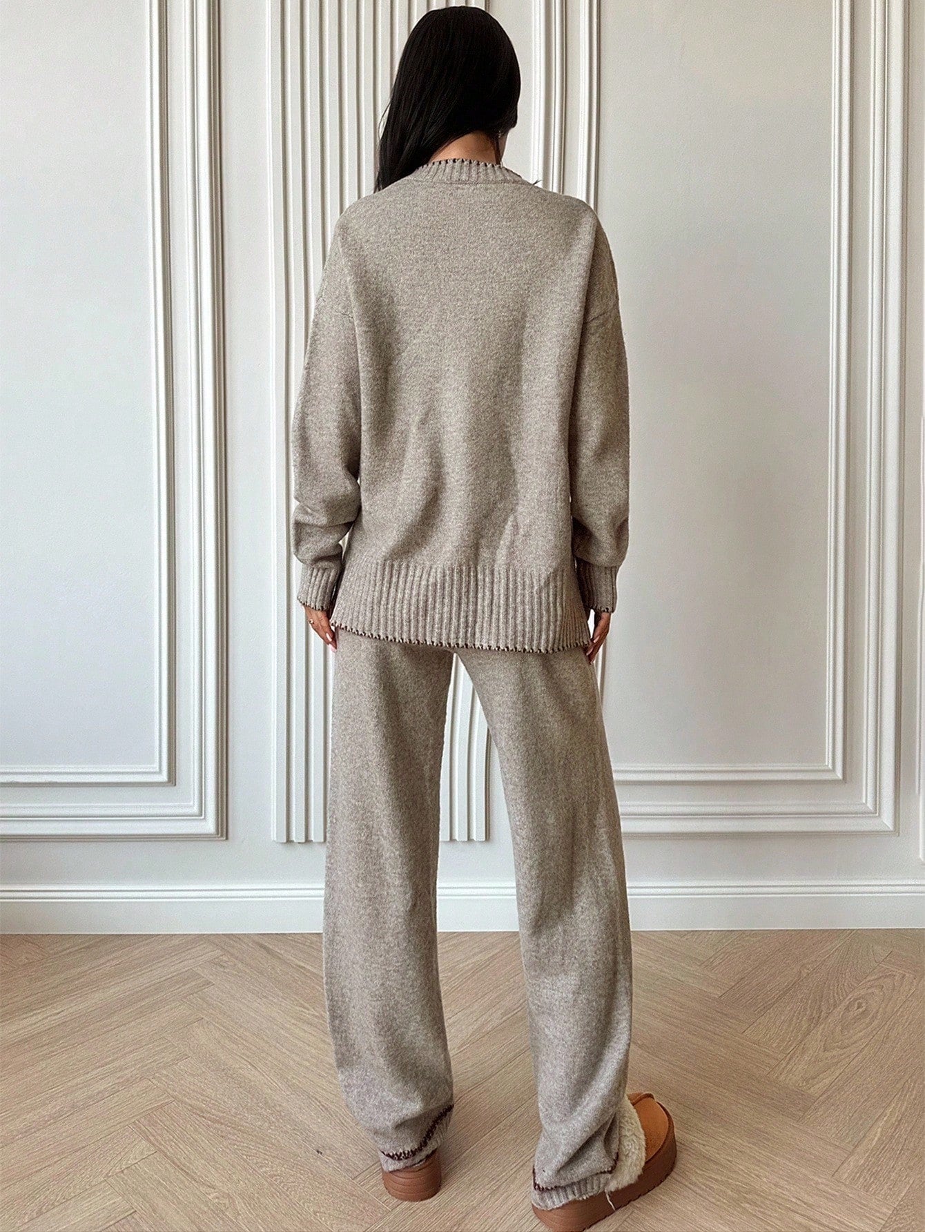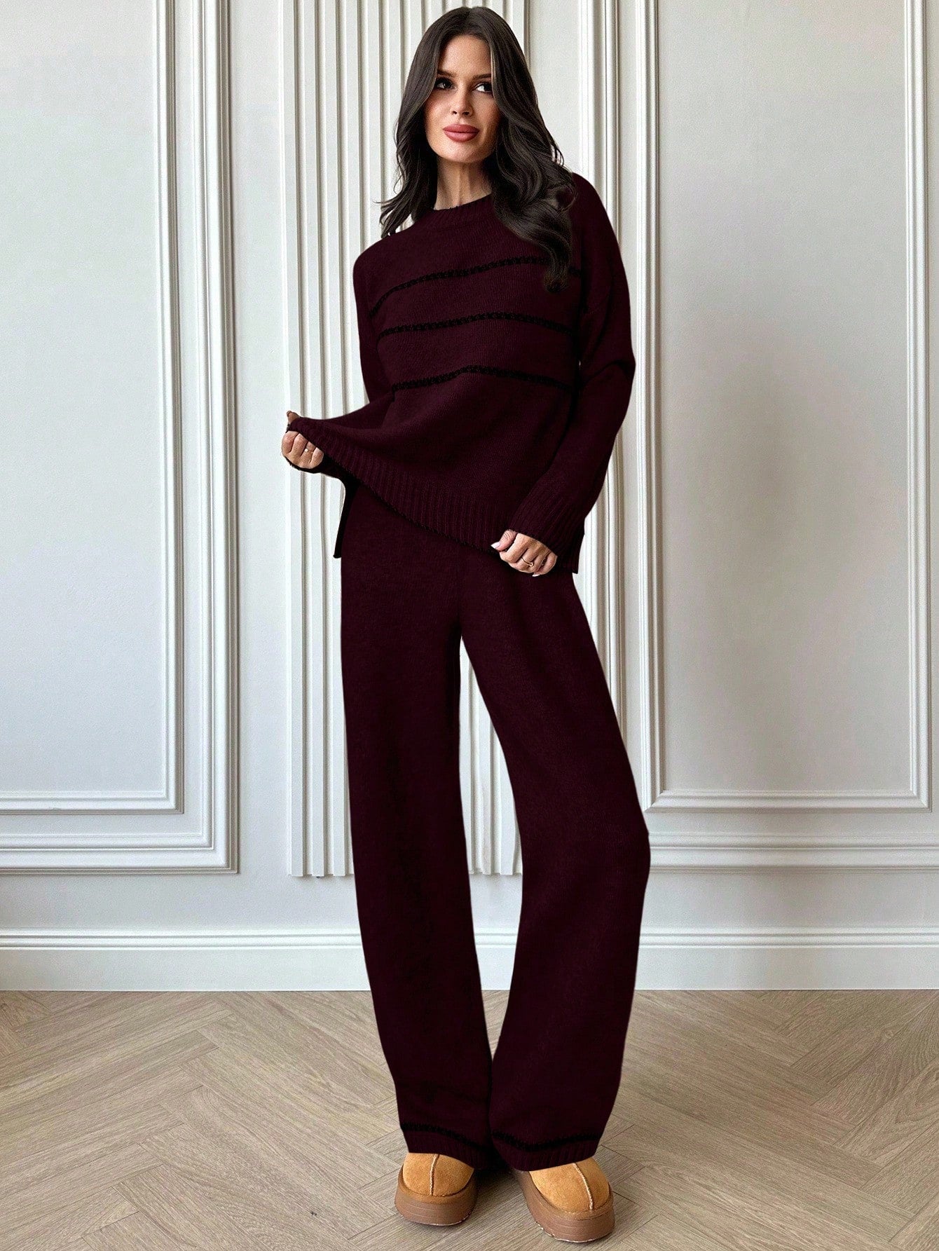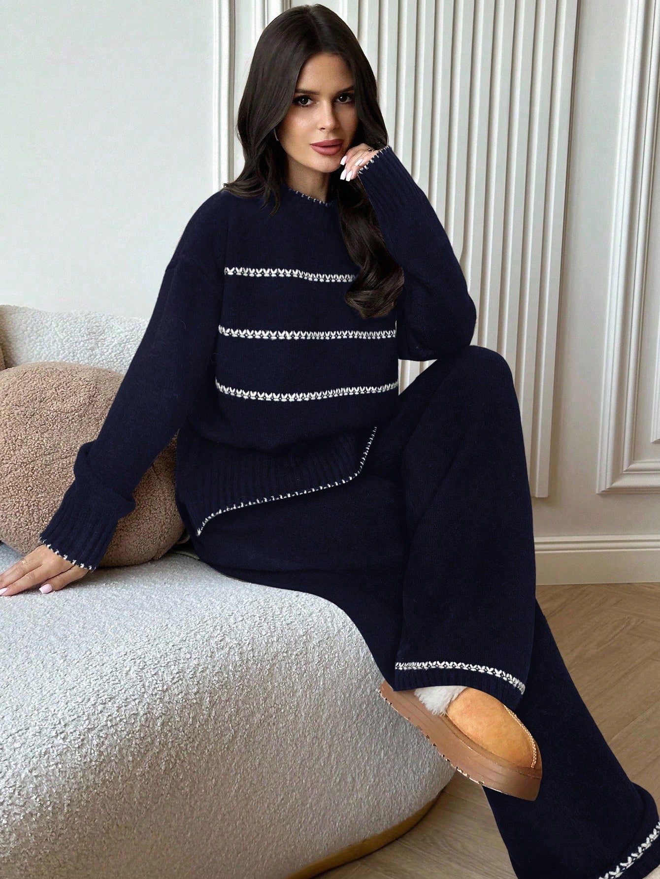 Women's Casual Loose Contrast Color Knit Sweater Set