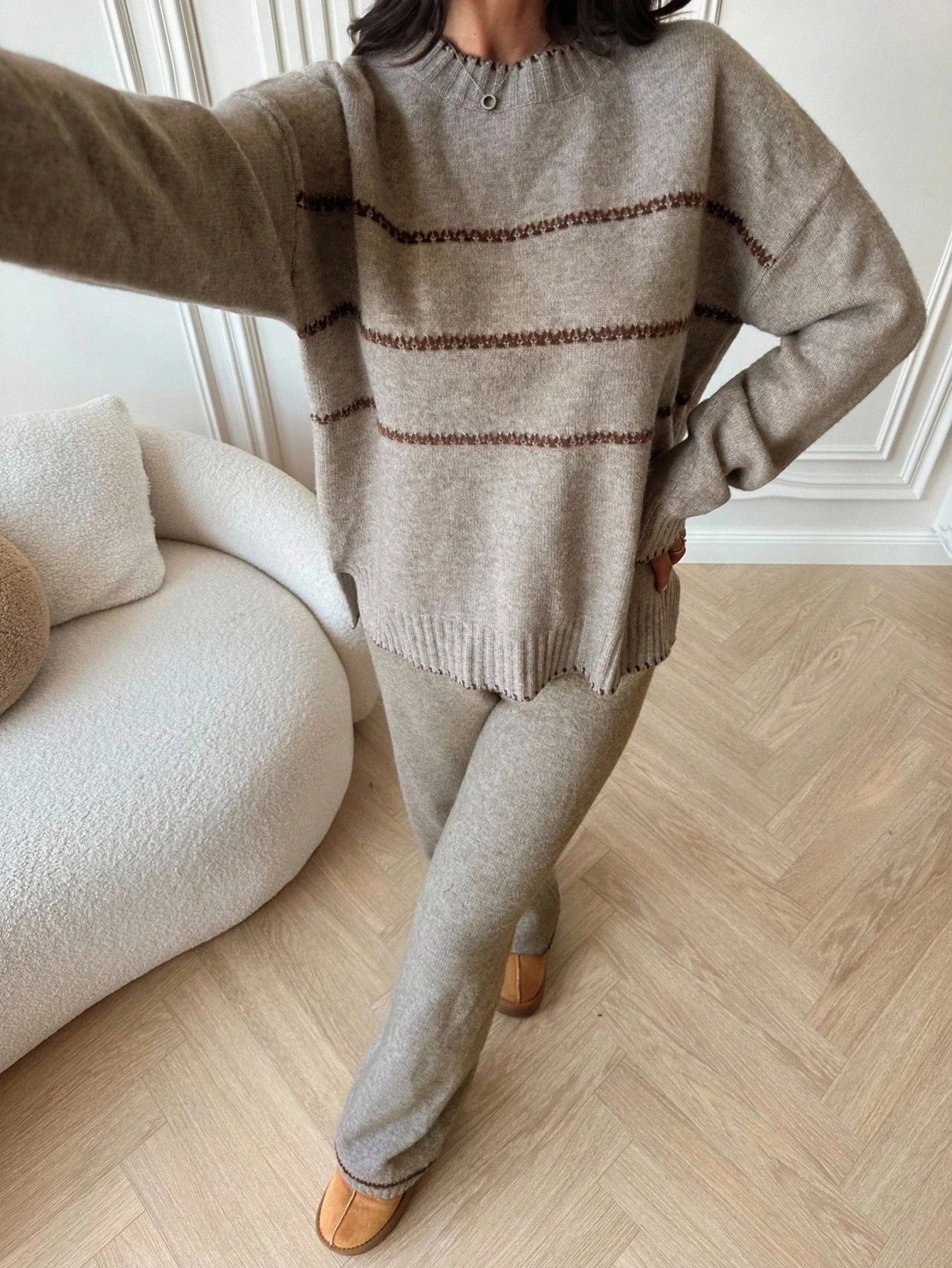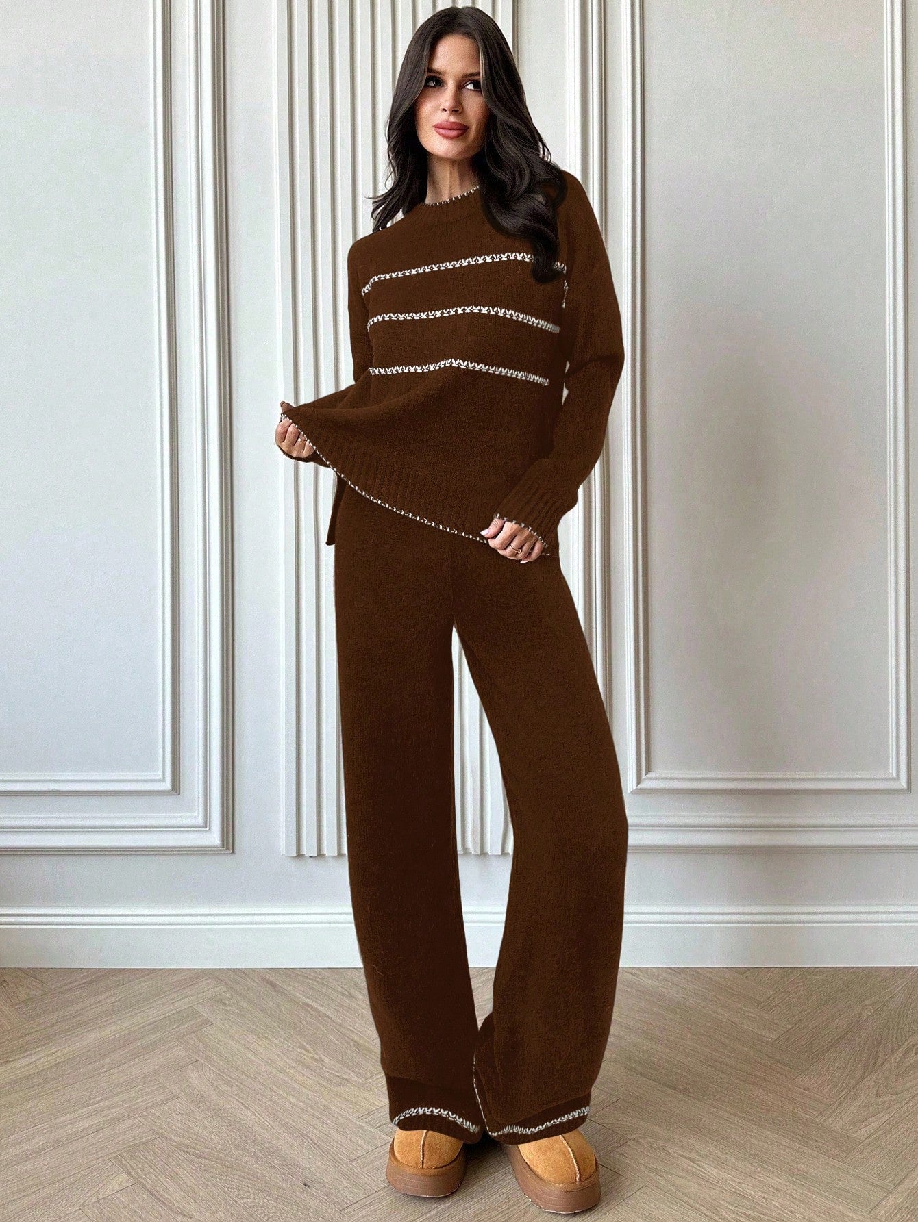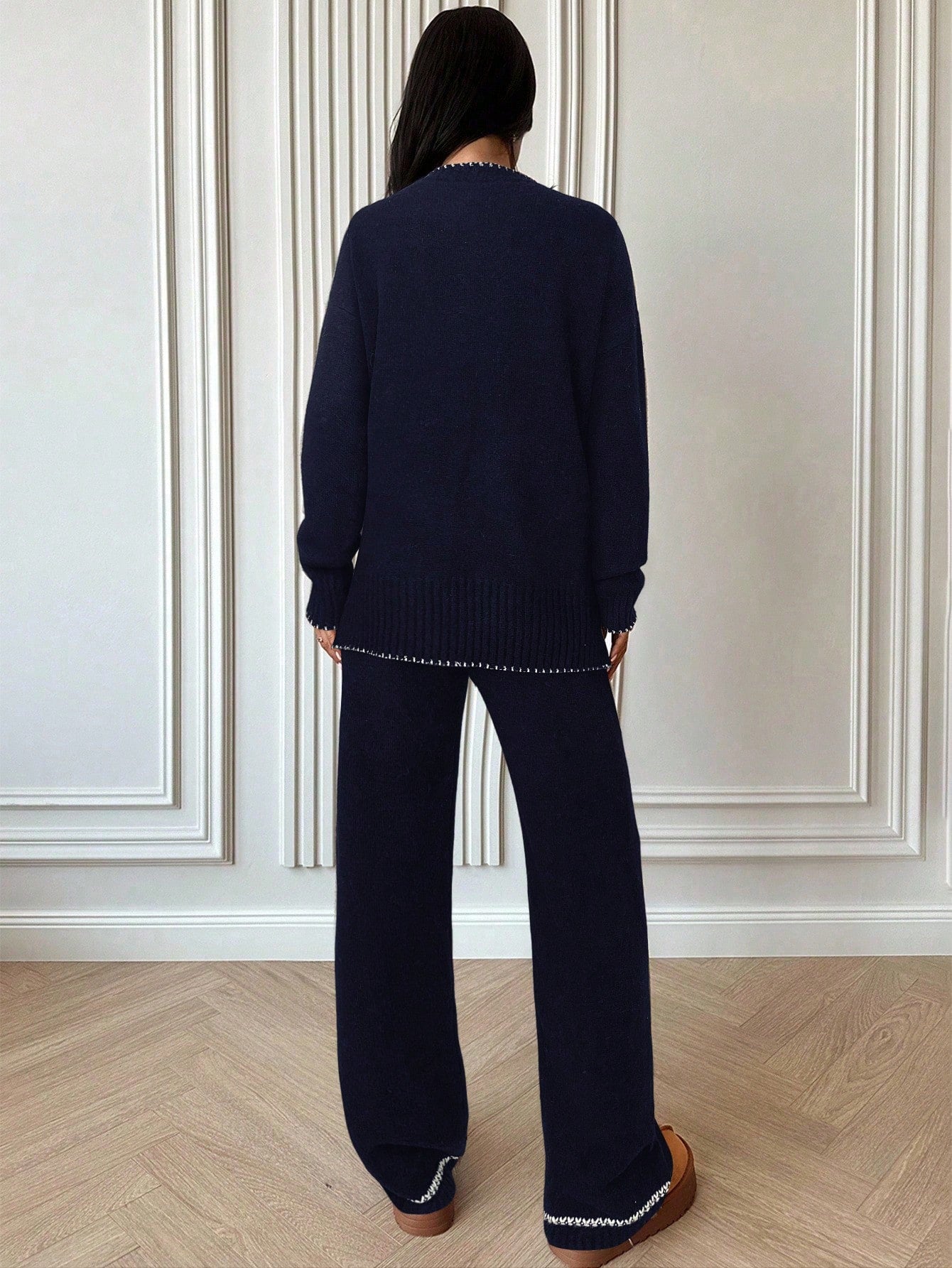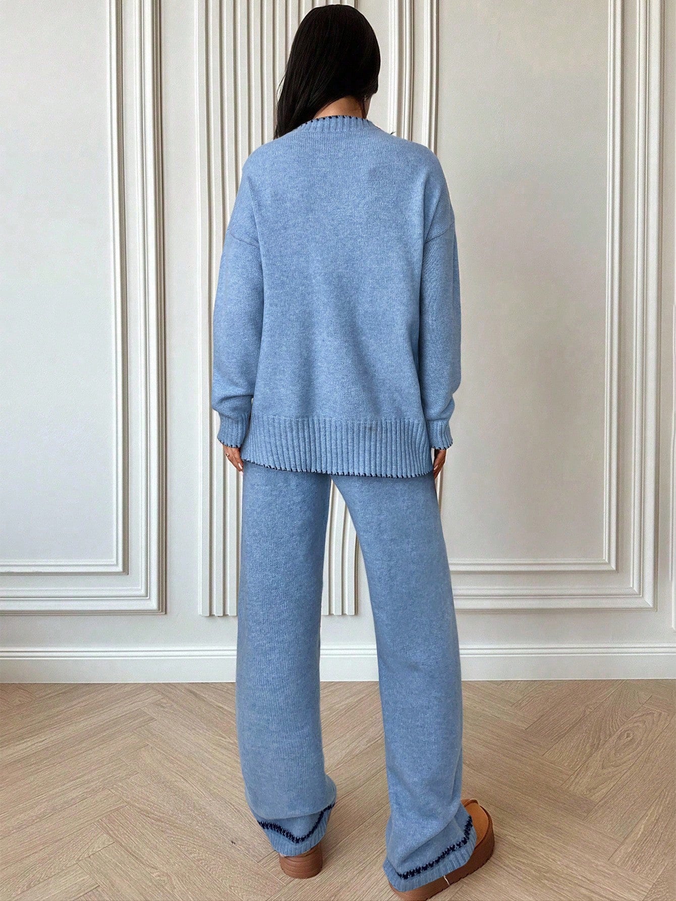 Women's Casual Loose Contrast Color Knit Sweater Set