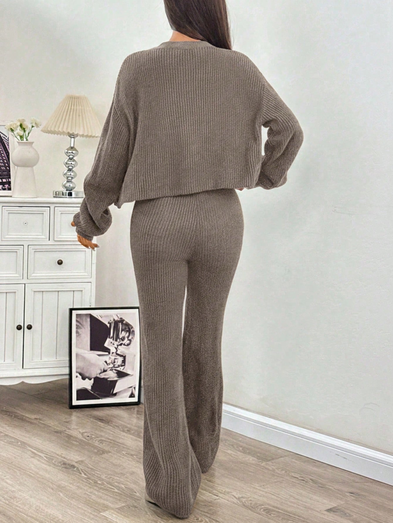 Women's Casual Solid Wide Strap Cardigan And Drawstring Waist Flare Pants