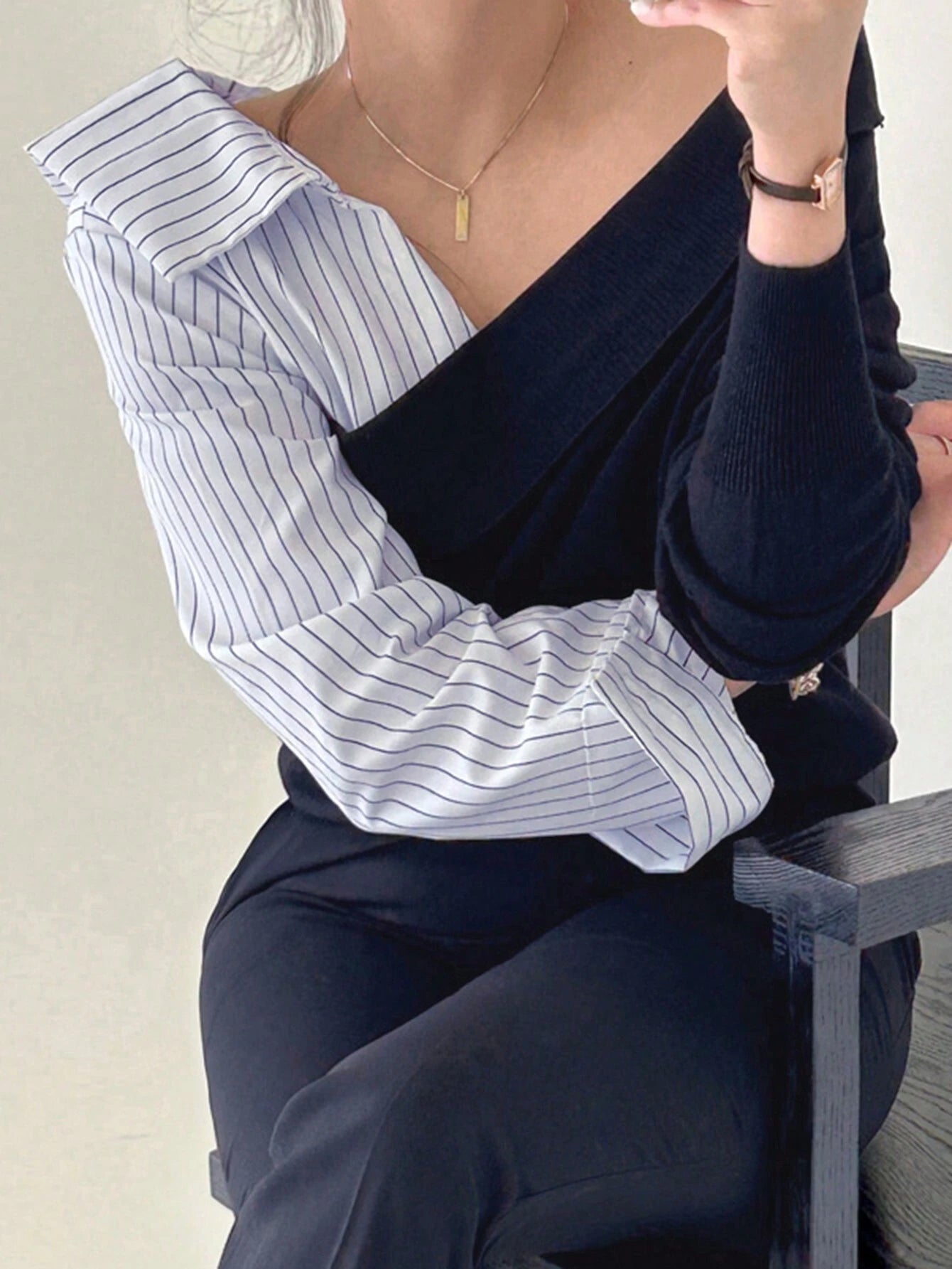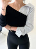 Women's Contrast Color Patchwork Asymmetrical Design Pullover Sweater