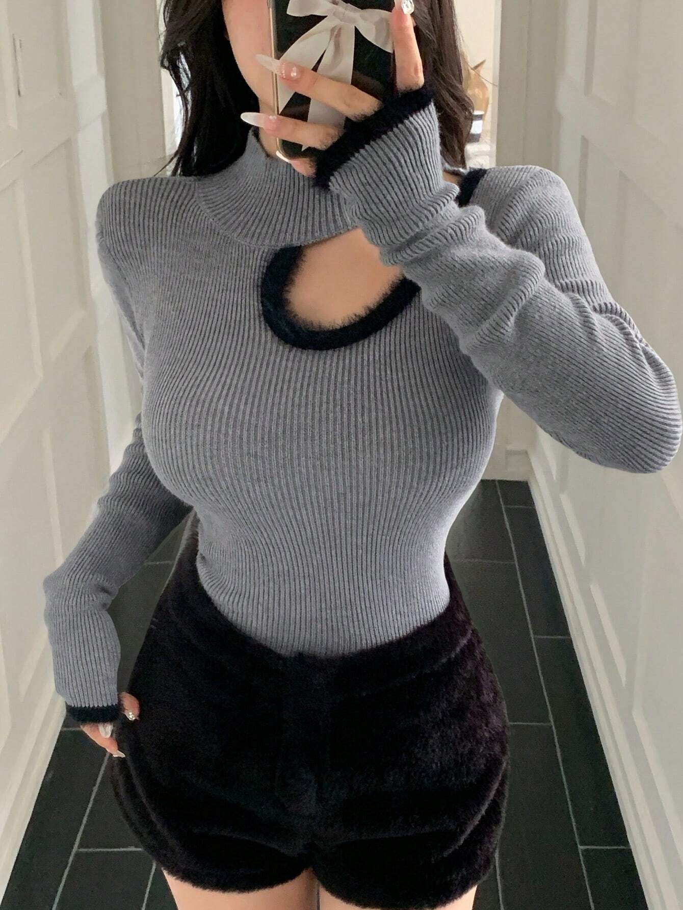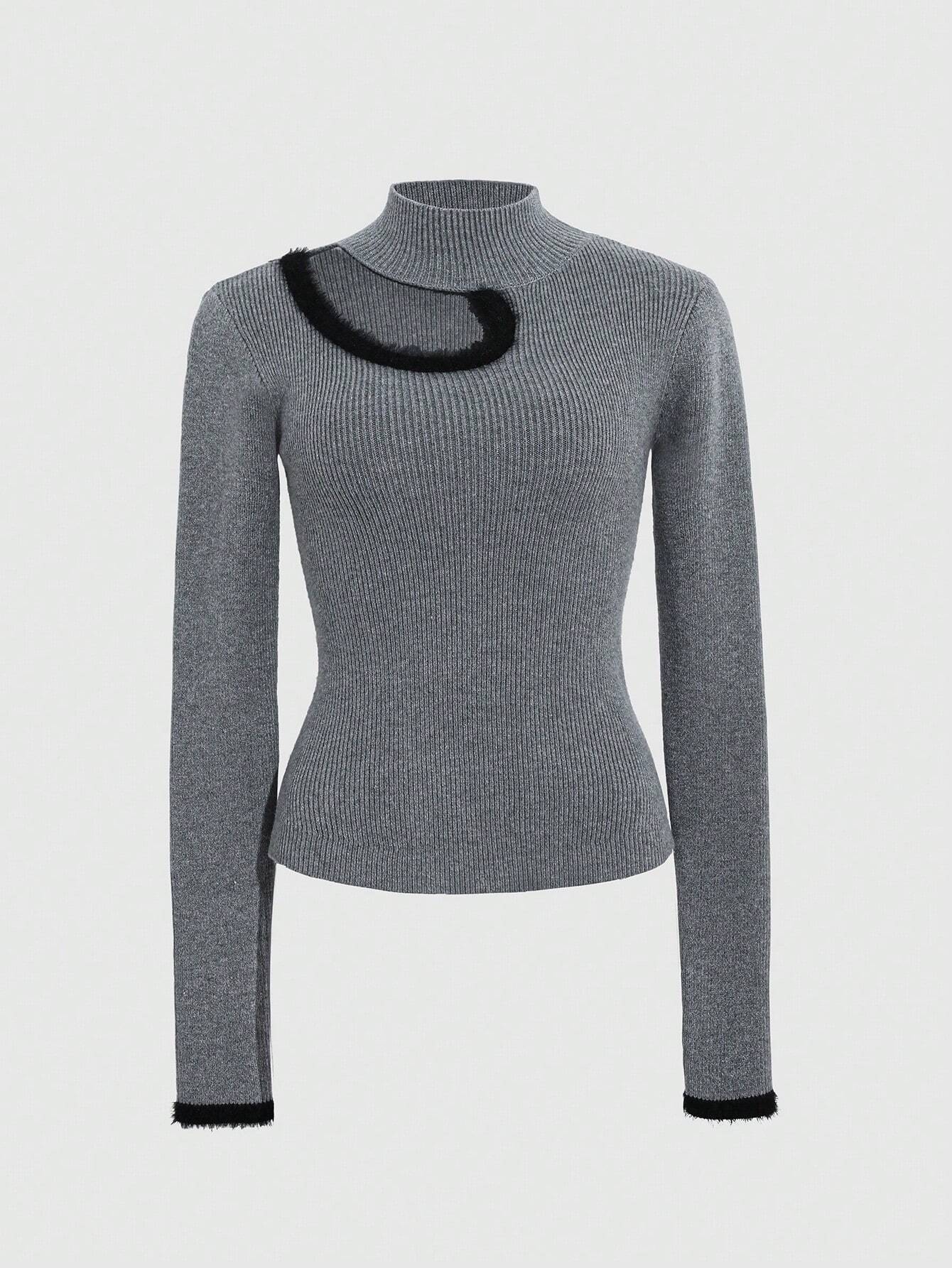 Women's Contrast Color Patchwork Hollow Out Turtleneck Sweater