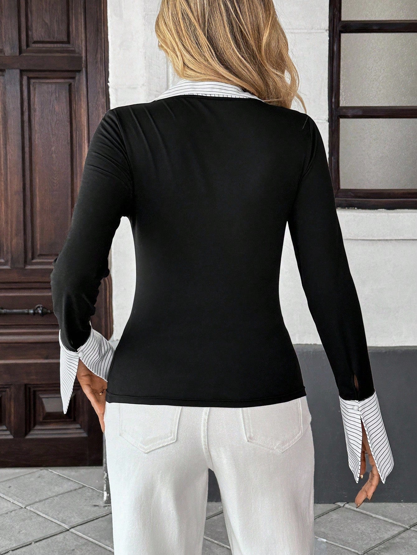 Women's Fashionable 2 In 1 Patchwork Long Sleeve T-Shirt