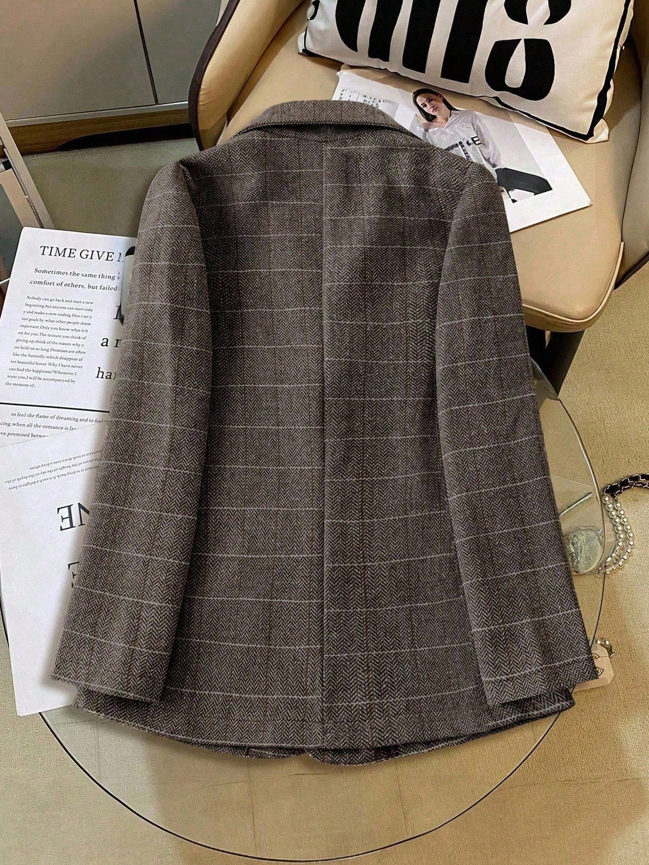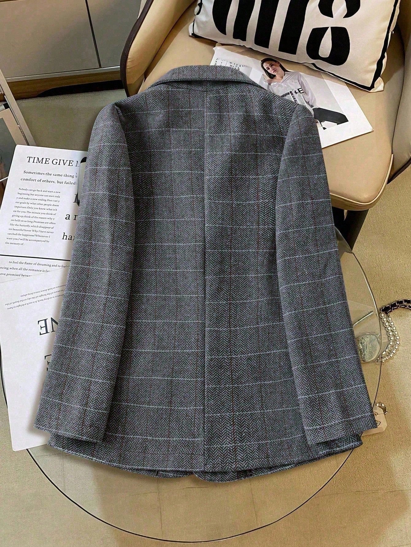 Women's Lapel Long Sleeve Plaid Blazer