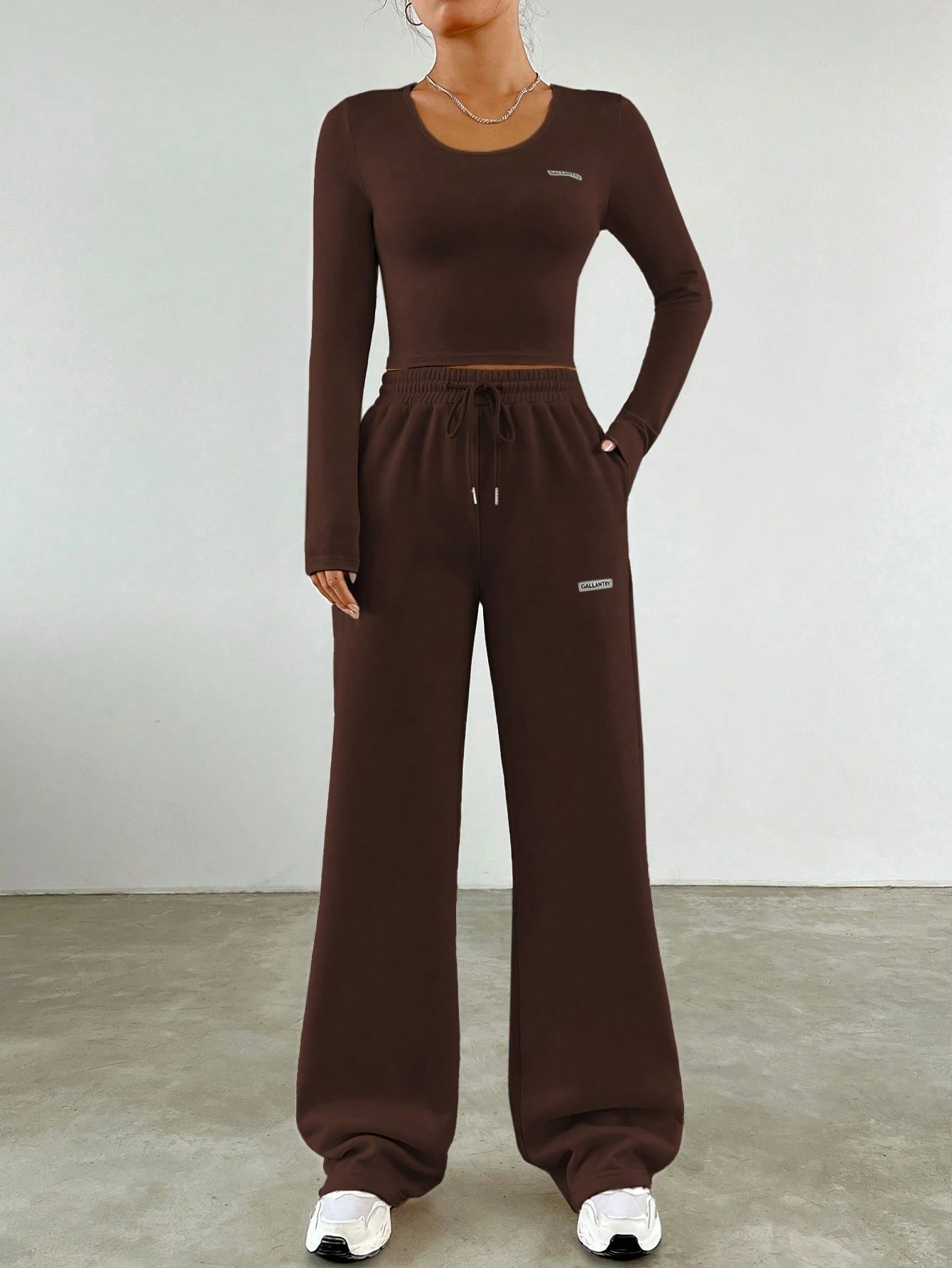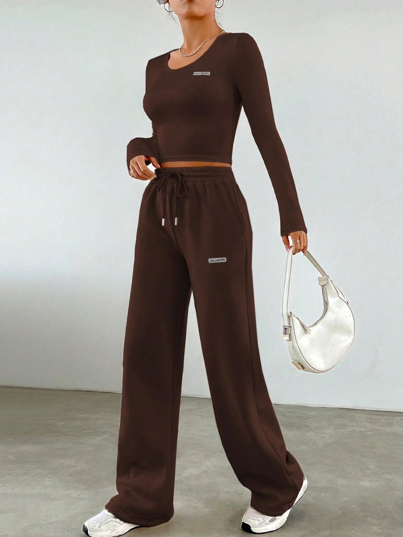 Women's Letter Print Long Sleeve T-Shirt And Sweatpants