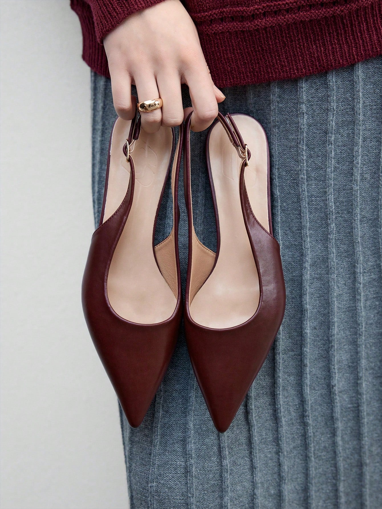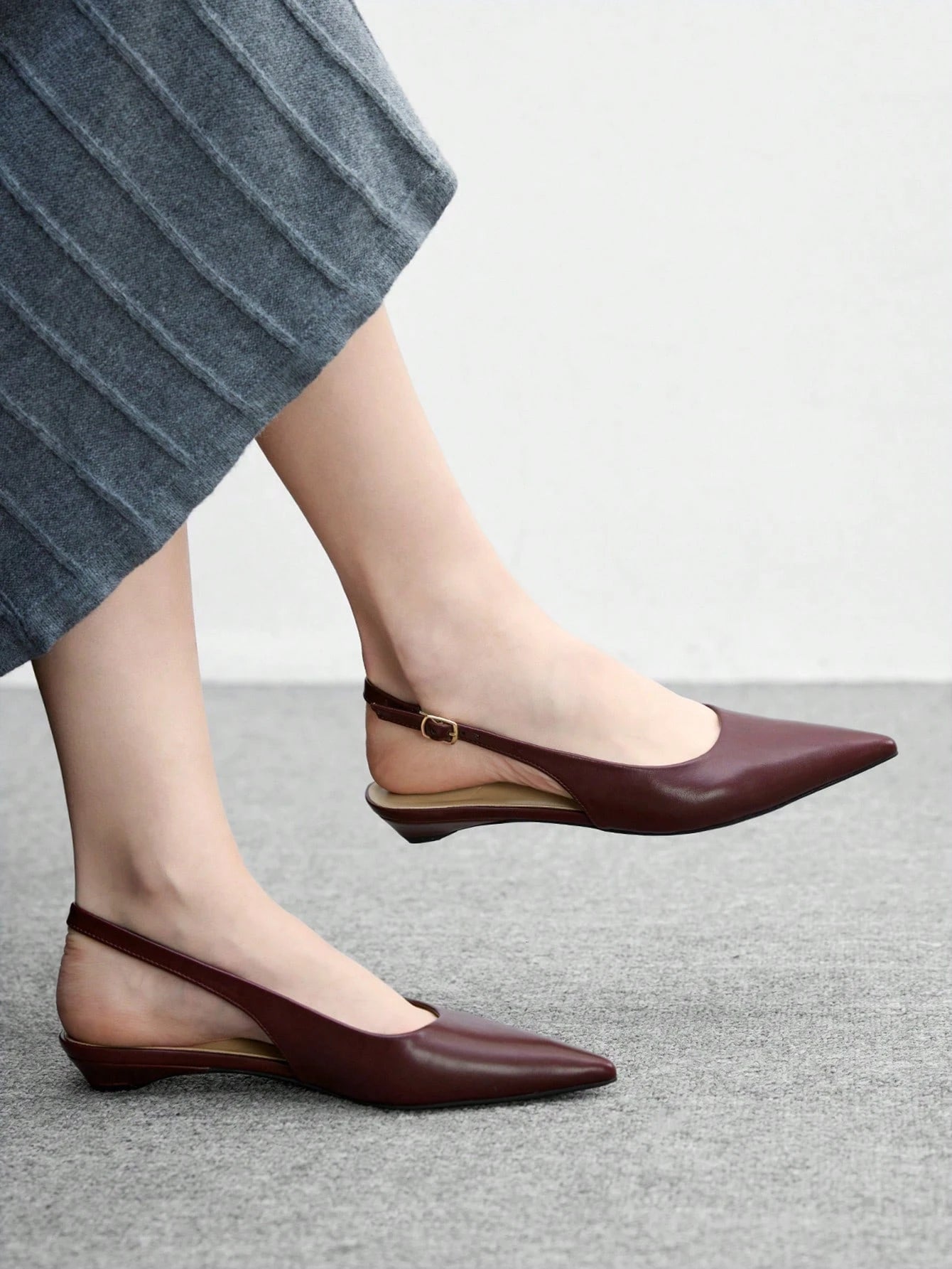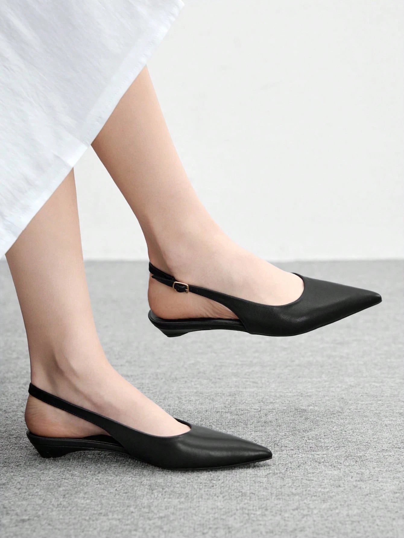Women's New Square Buckle Pointed Toe Low Heel Flat