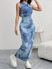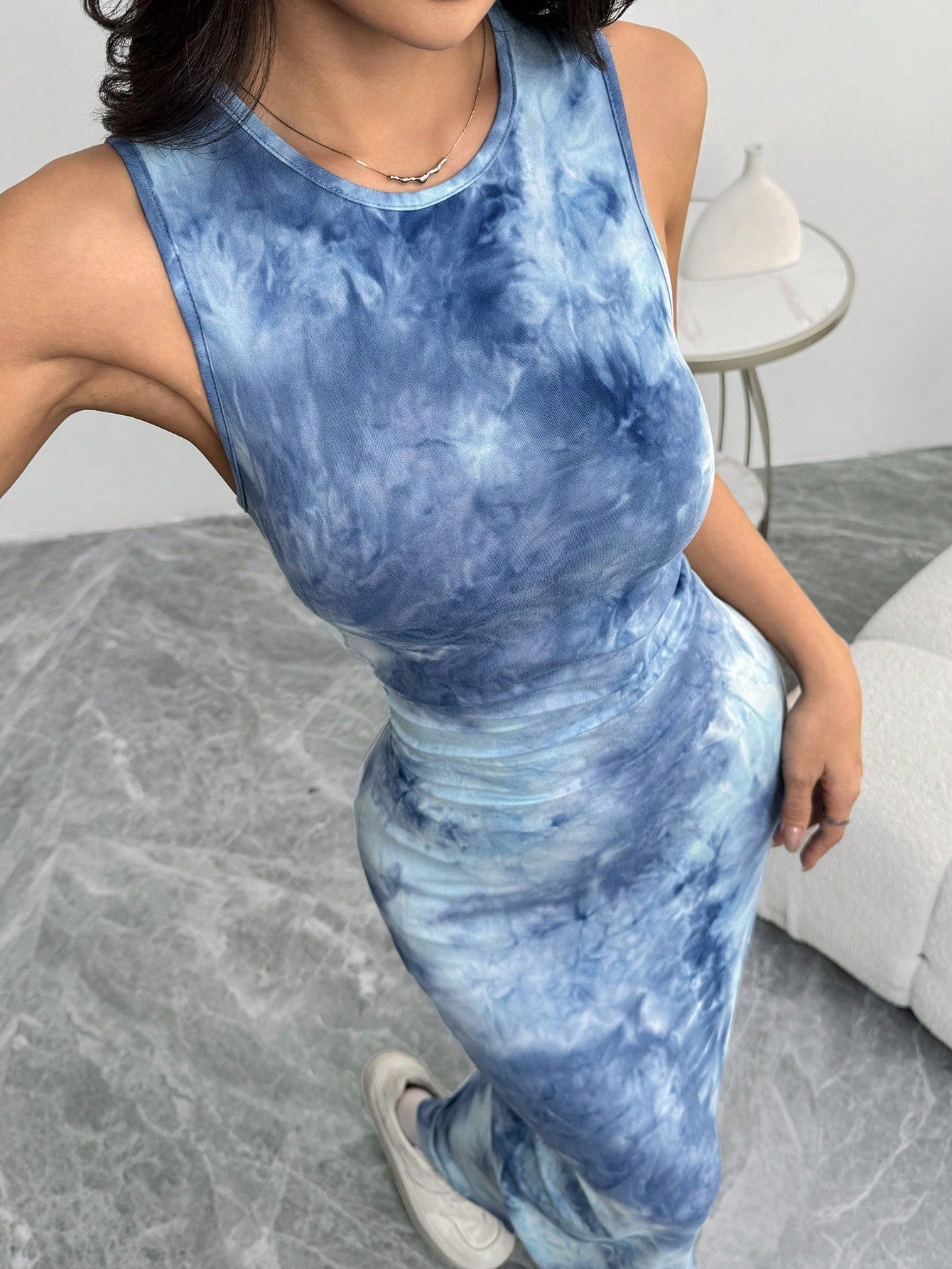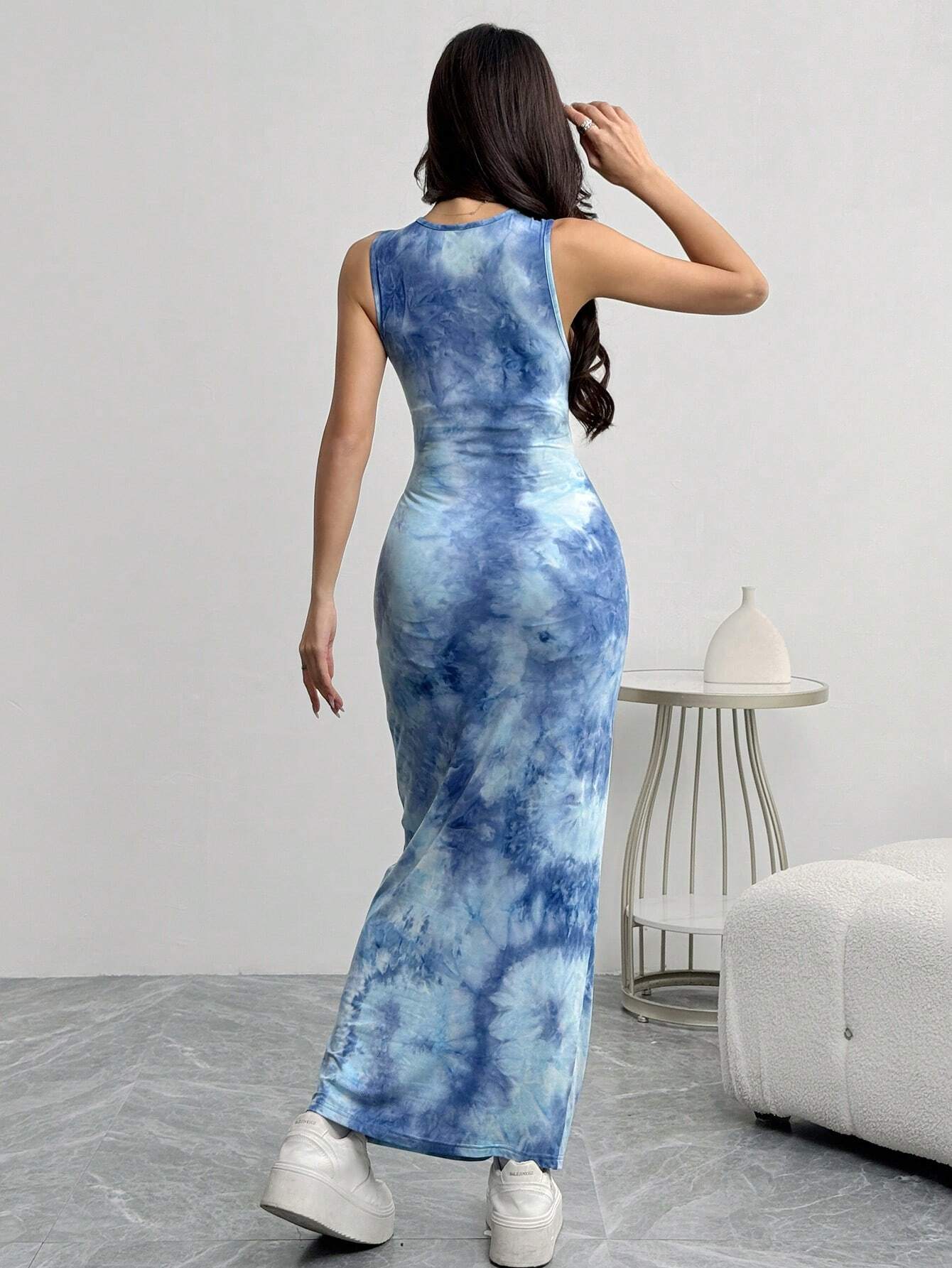 Women's Slim Summer Tie Dye Print Tank Bodycon Long Dress